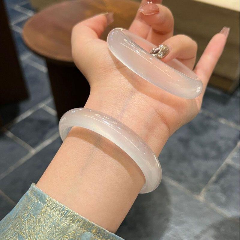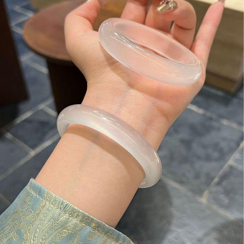 Douyin mismo estilo luz de luna blanca Bingbing mismo estilo Zhou Dasheng mismo estilo pulsera de jade imitación pulsera de cuarcita pulsera plana de hielo blanco mismo estilo Douyin súper hada luz de luna blanca pulsera de hielo alto nuevo estilo pulsera de jade de moda contador auténtico