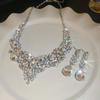 Collar y pendientes de gota de diamantes transfronterizos de Europa y Estados Unidos, traje de lujo de alta sensación, cadena de clavícula, nicho, joyería vintage al por mayor