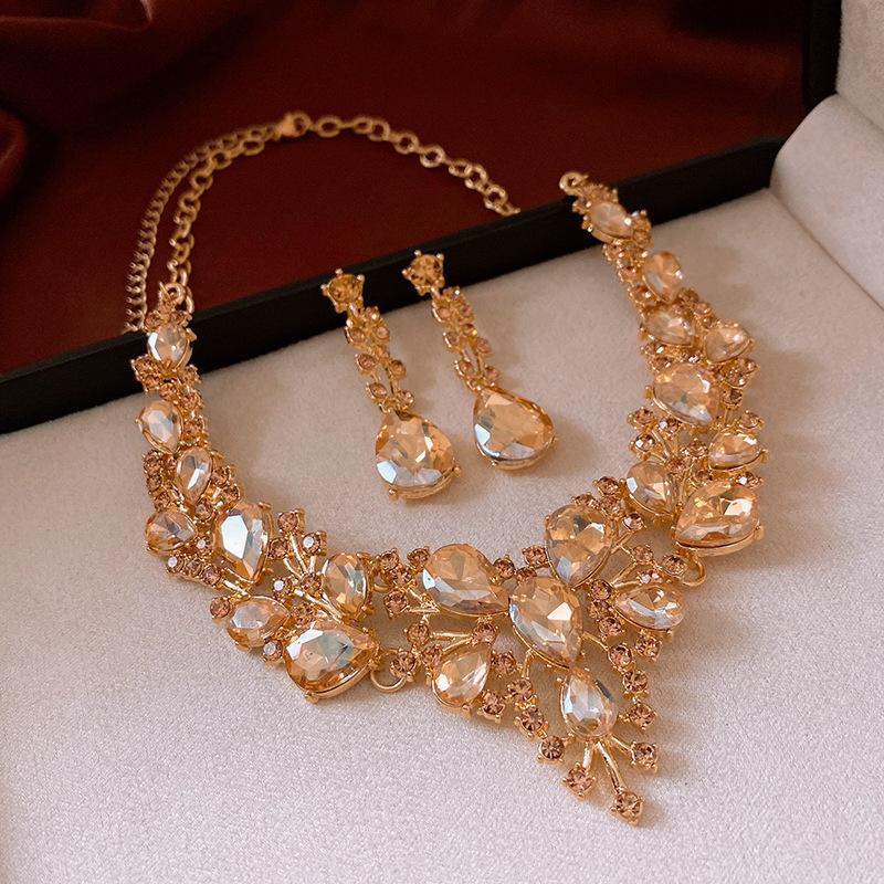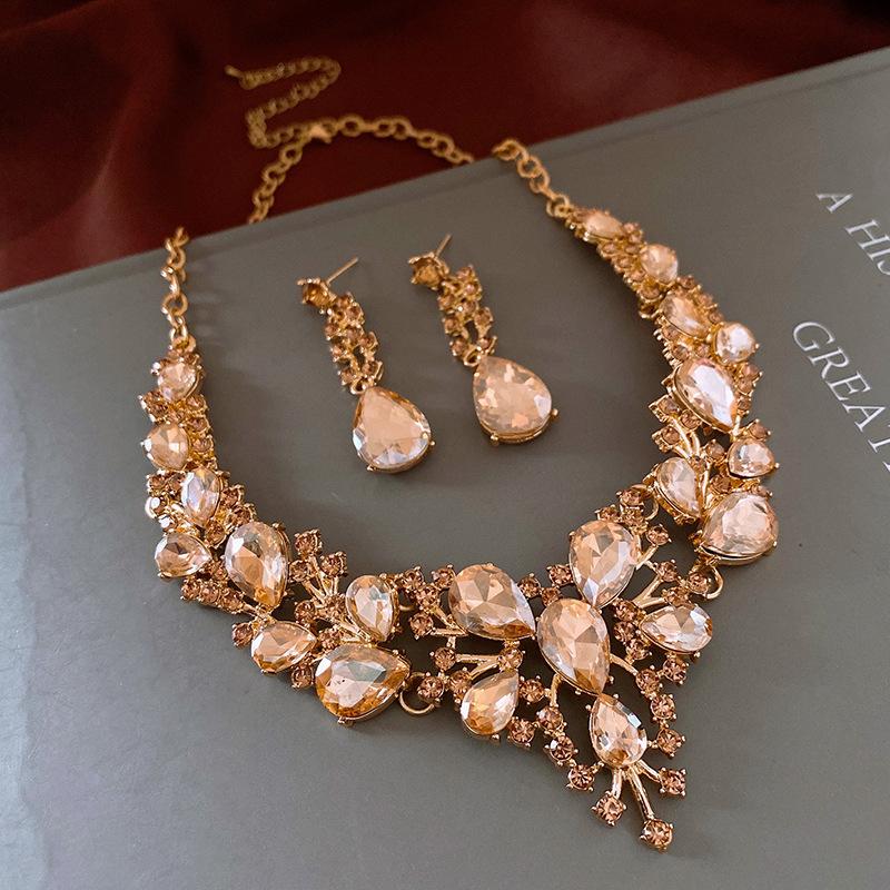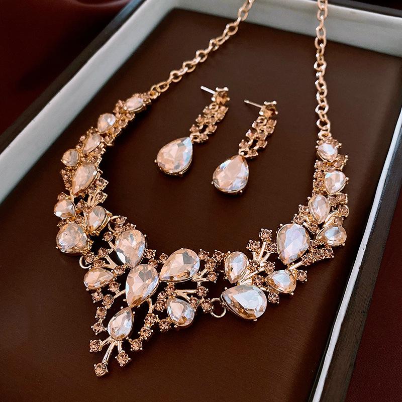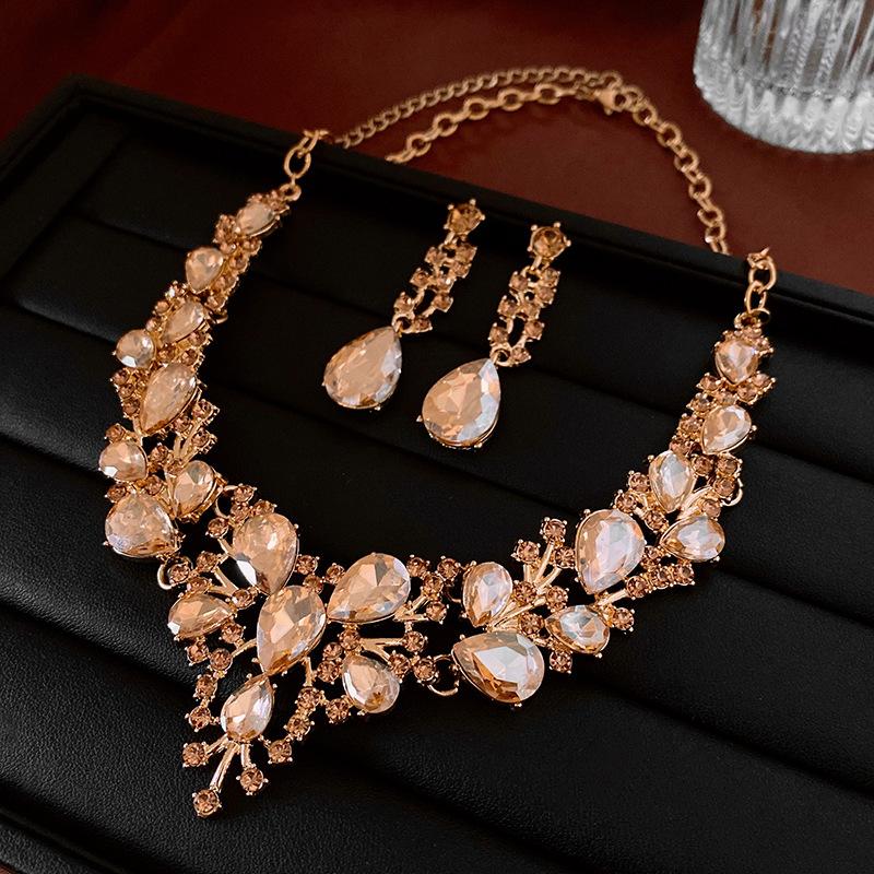 Compra Collar y pendientes de gota de diamantes transfronterizos de Europa y Estados Unidos, traje de lujo de alta sensación, cadena de clavícula, nicho, joyería vintage al por mayor al por mayor en Joom.pro