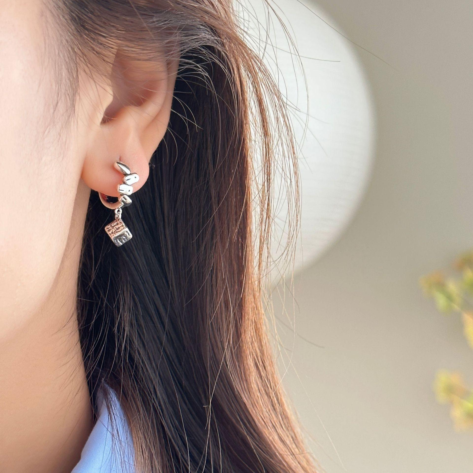 Pendientes geométricos cuadrados de plata S925 con diseño de aguja de nicho único, pendientes de lujo ligeros, nuevos pendientes de estilo chino de alta gama para mujer.