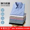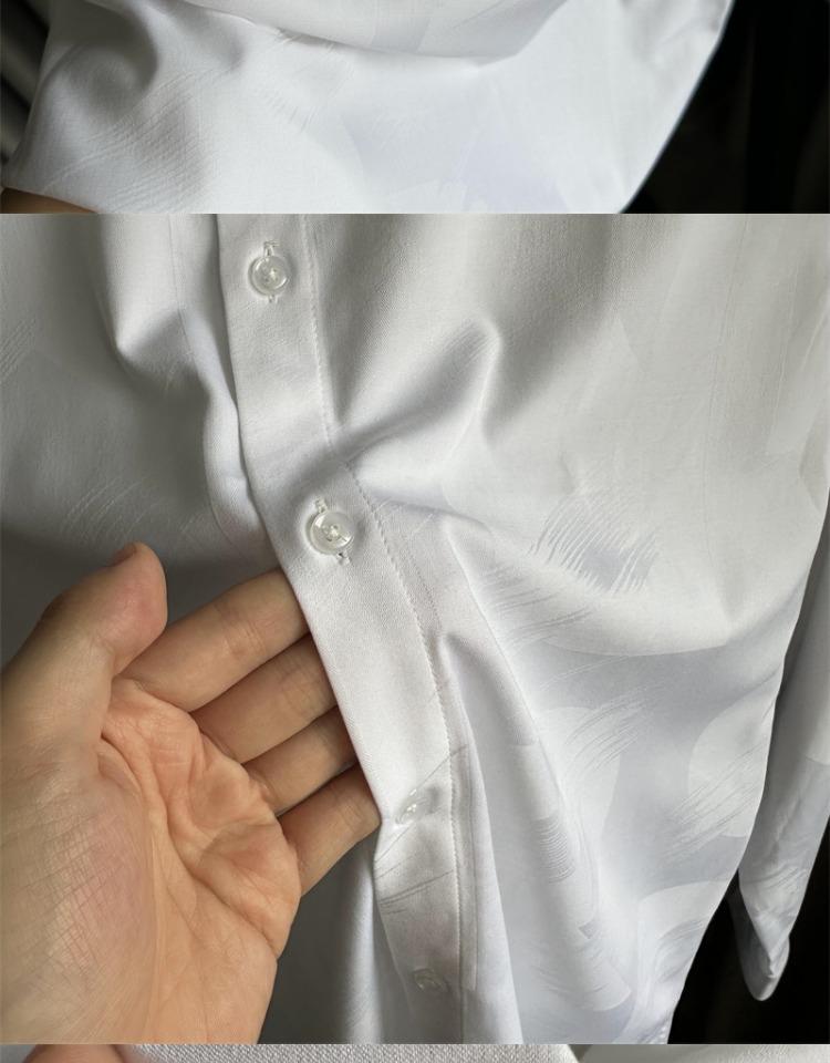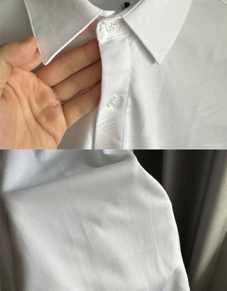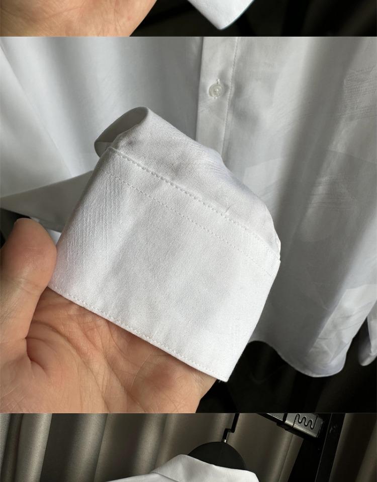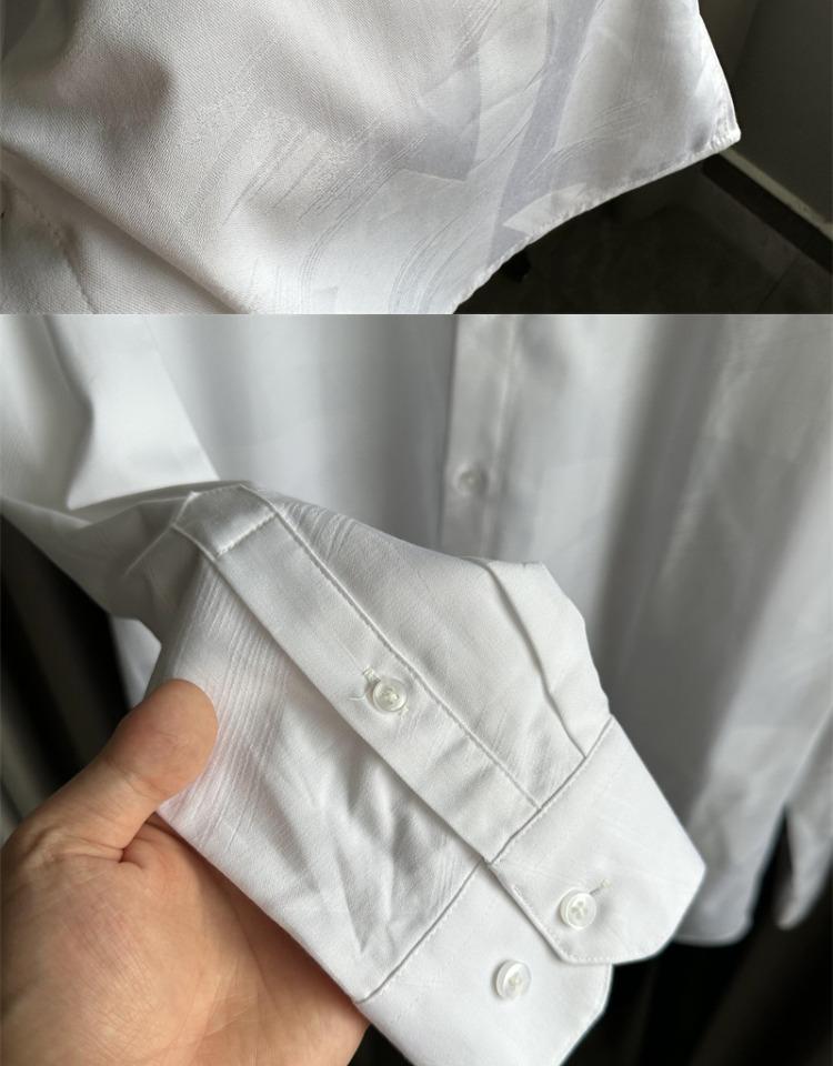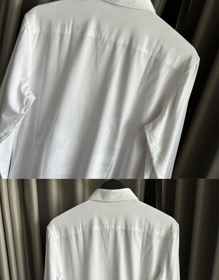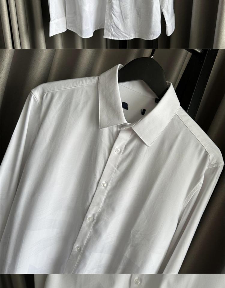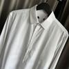 ¡Cómodo como la seda! Camisa blanca de manga larga con solapa informal de negocios, de moda de comercio exterior para hombre de otoño, a rayas, agradable para la piel