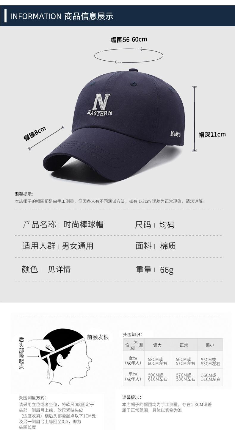 Gorra de béisbol bordada con la letra N, estilo coreano, combina con todo, suave, para hombre, para deportes al aire libre, pequeña, para el sol