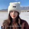 Sombrero de Invierno Esponjoso para Mujer Lindo Estrella Cálido Tejido Sombrero para Montar Cabeza Grande Cara Pequeña Sombrero a Prueba de Frío con Protección para las Orejas