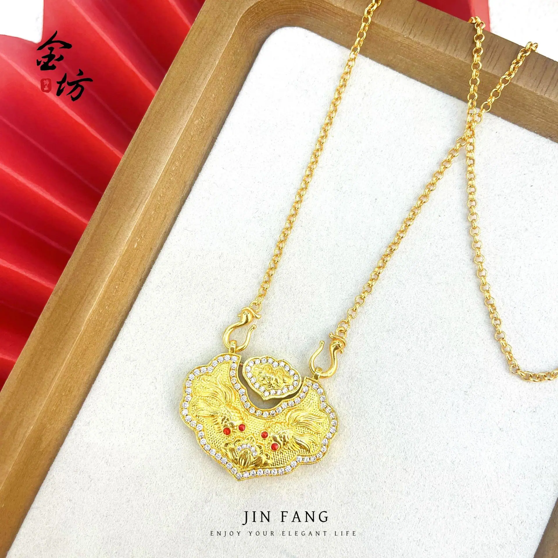 25dz0202 real gold-plated diamond-encrusted koi fish lock pendant + swan hook chain