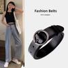 Cinturón clásico versátil de cuero retro con hebilla de cobre y capa superior de piel de vaca para mujer, moderno e informal, con cinturón para jeans.