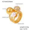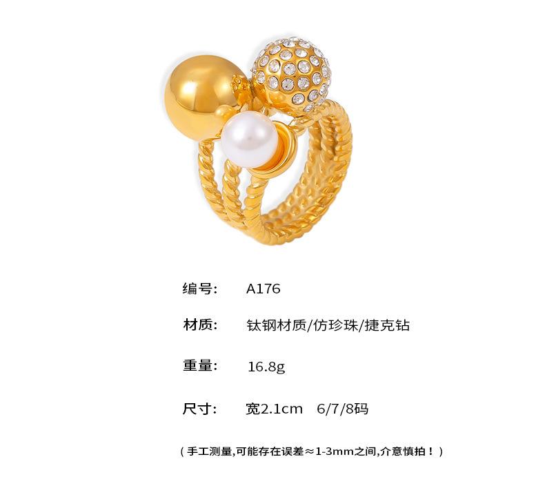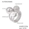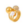 Anillo de diamantes de imitación con perla de imitación y conjunto de bolas europeas y americanas, con diseño exagerado de moda y chapado en oro de 18 quilates, joyería al por mayor