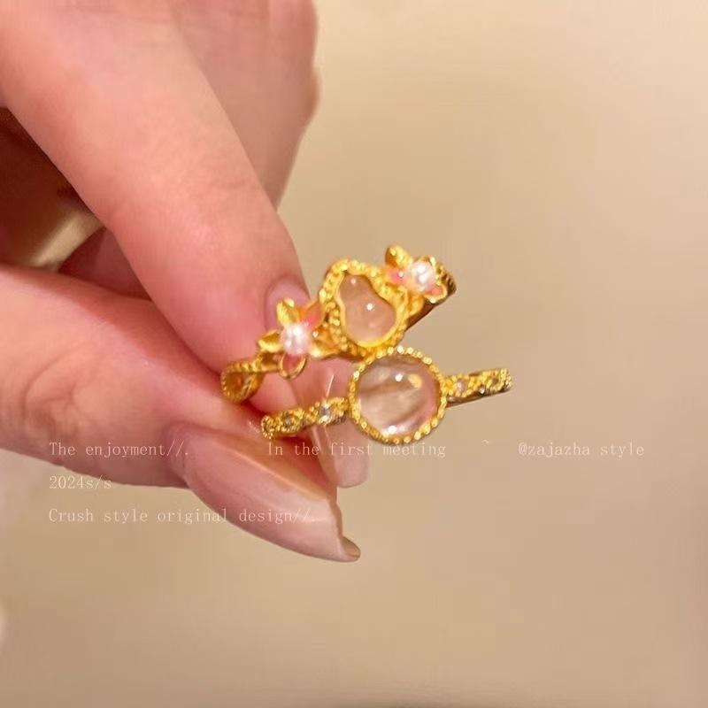 Anillo de lujo elegante con forma de calabaza dorada y flor de estilo chino, ligero y apilado, de alta gama, combinable con todo, nuevo estilo 2024
