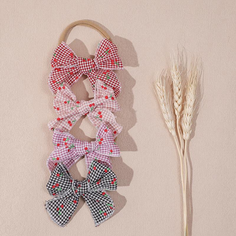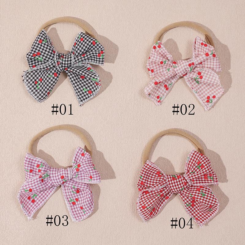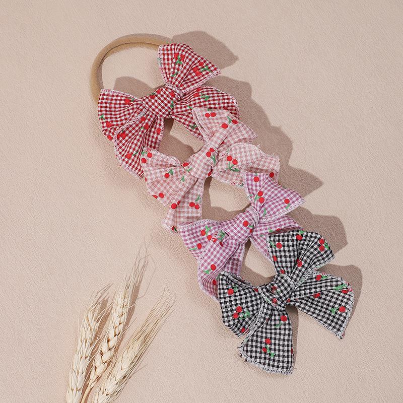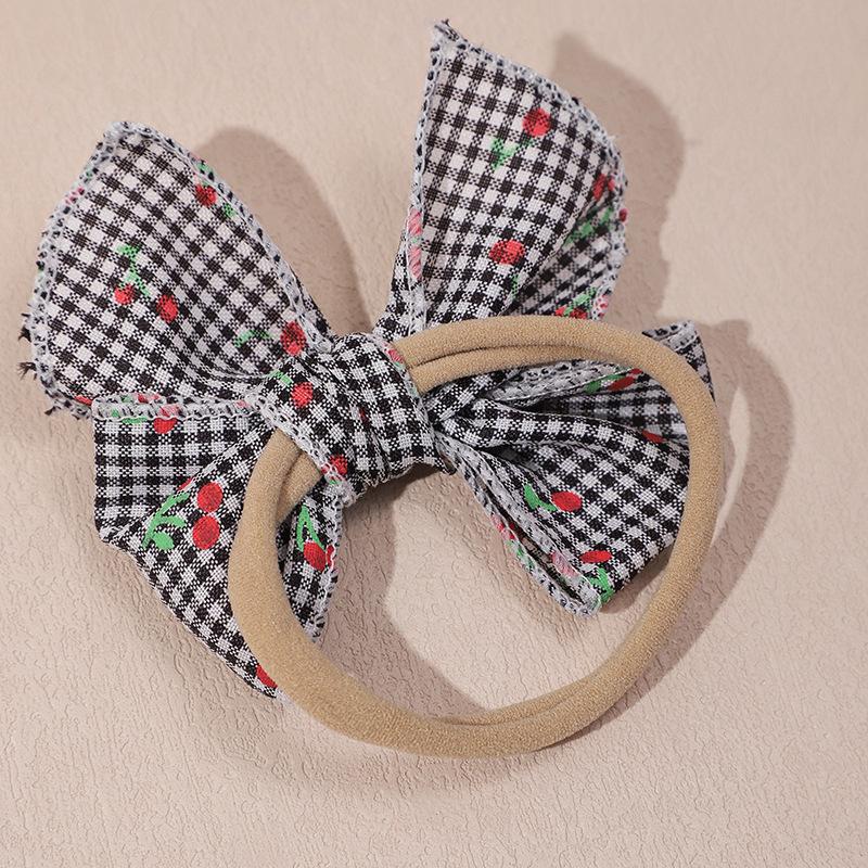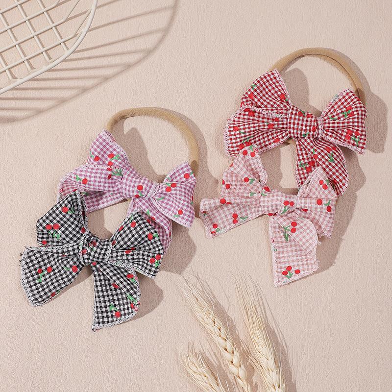 Accesorios para el cabello para niños, de comercio exterior, con lazo estampado de cerezas, banda para el cabello, diadema elástica de nailon para bebé, venta al por mayor