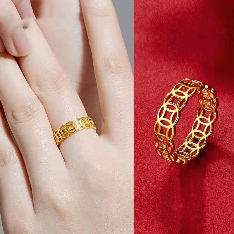 Anillo retro para mujer de oro de Vietnam, chapado en oro al vacío, anillo de cobre dorado, anillo para pareja, para hombre y mujer, regalo, venta en vivo