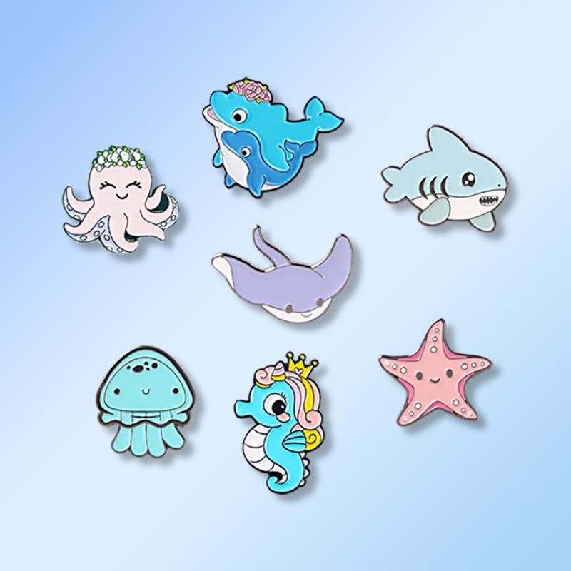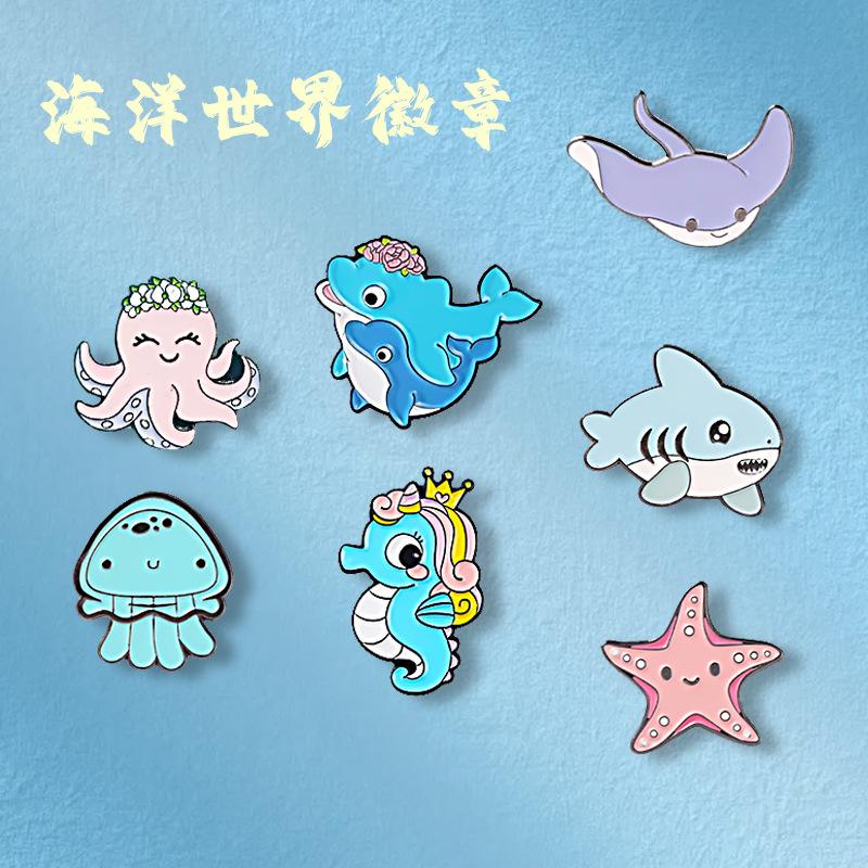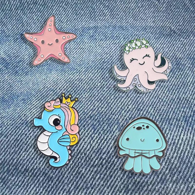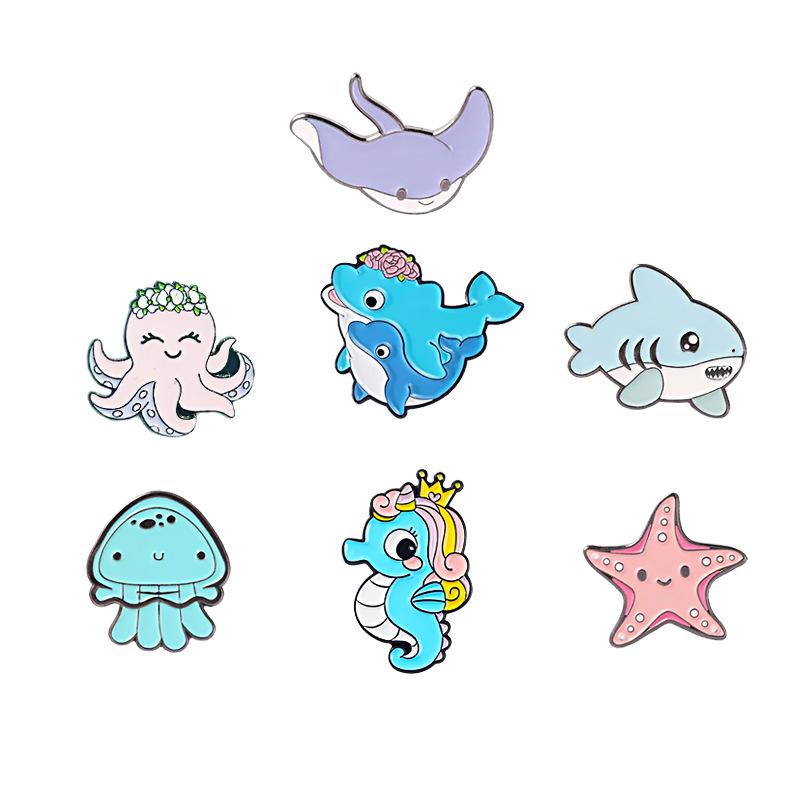 Insignia de Animal Marino de Dibujos Animados Delfín Caballito de Mar Tiburón Accesorios para Ropa Broche Estrella de Mar Medusa Decoración para Mochila Escolar Regalo