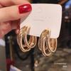 Aretes de Metal con Tres Círculos, Estilo Vintage, Aretes de Aro de Moda en Forma de C, Tachuelas de Aguja de Plata, Accesorios de Perlas