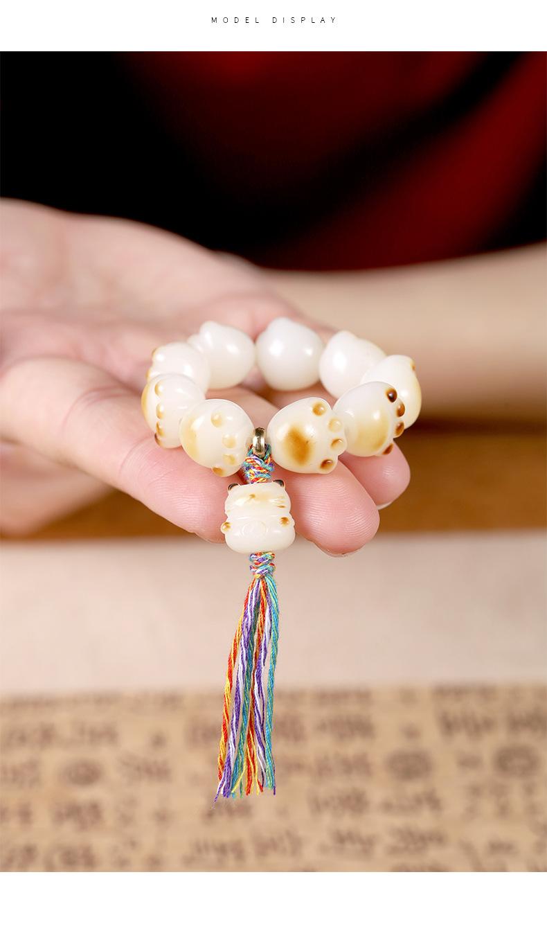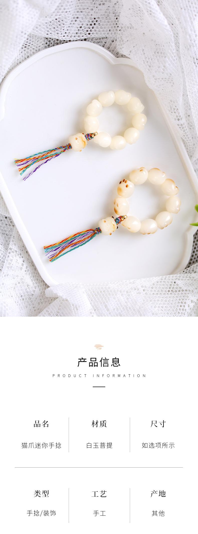 Nuevo jade blanco carbón raíz de bodhi borla garra de gato pequeño giro de mano antiguo suave femenino texto juego de mano al por mayor