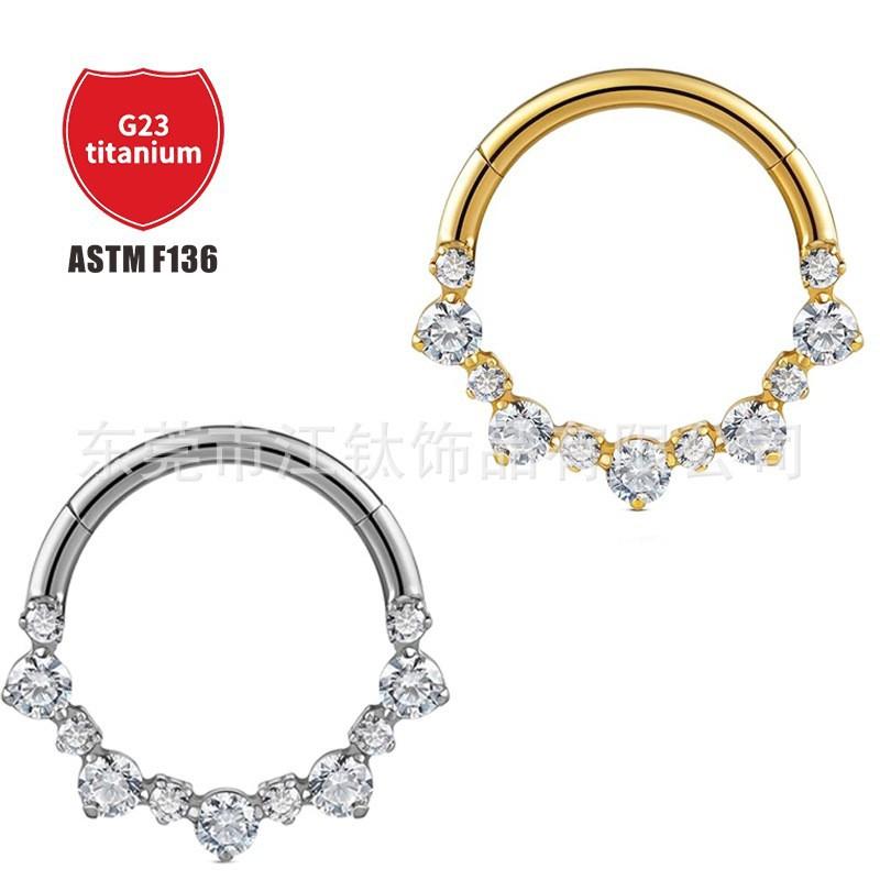 Pendientes de titanio Jiang Ti F136, gran oferta transfronteriza, anillo nasal con incrustaciones de circonita, joyería para piercing corporal de aleación de titanio G23, anillo nasal