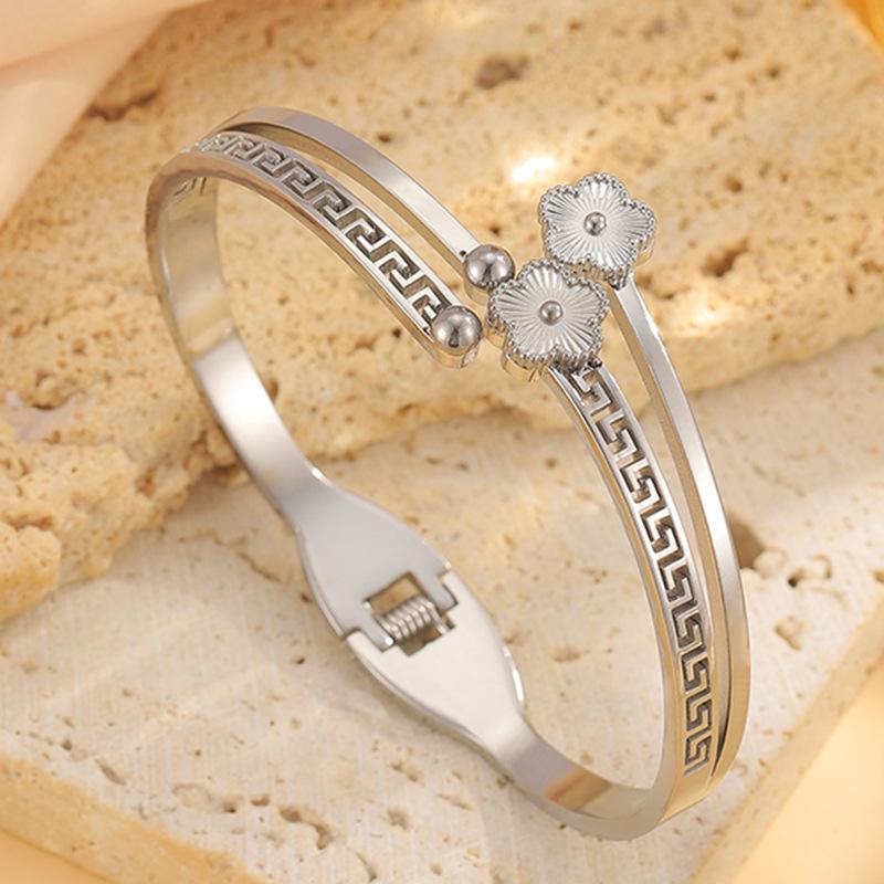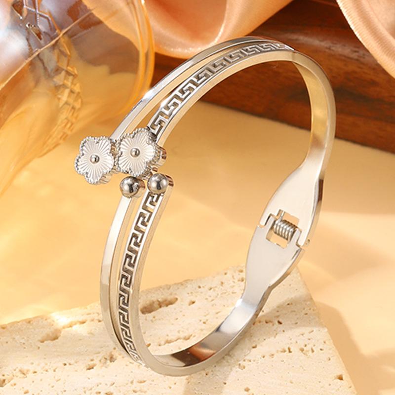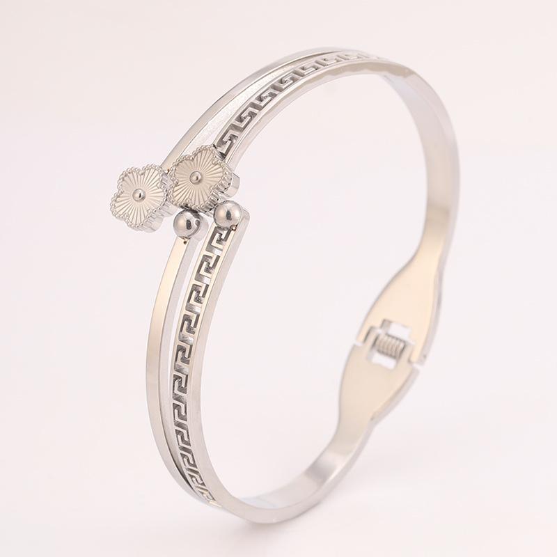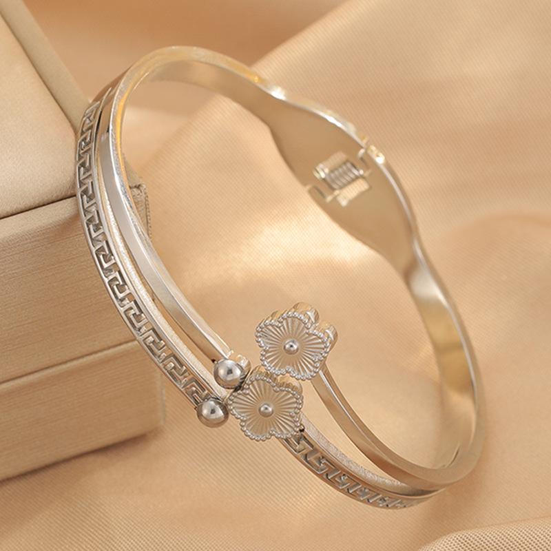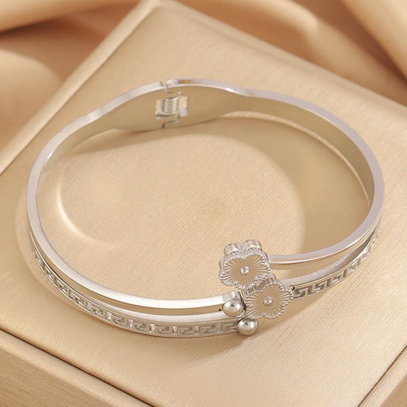 Silver four-leaf flower bracelet