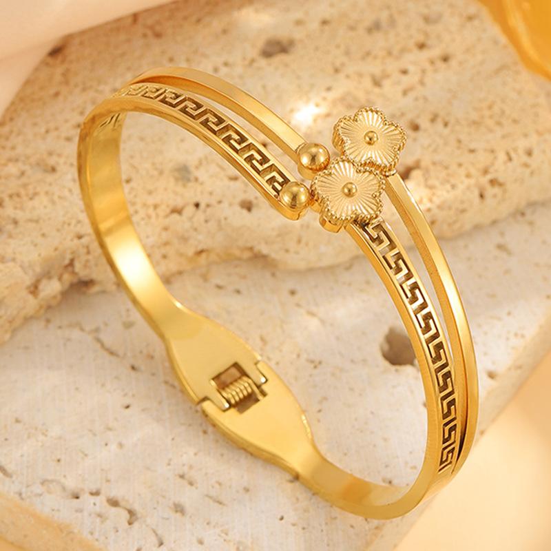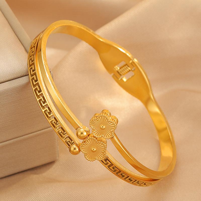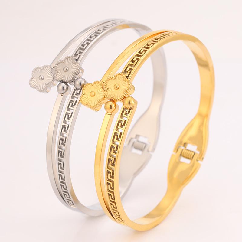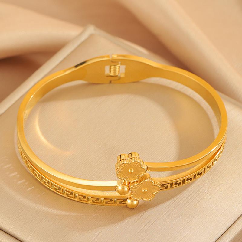 Gold four-leaf flower bracelet