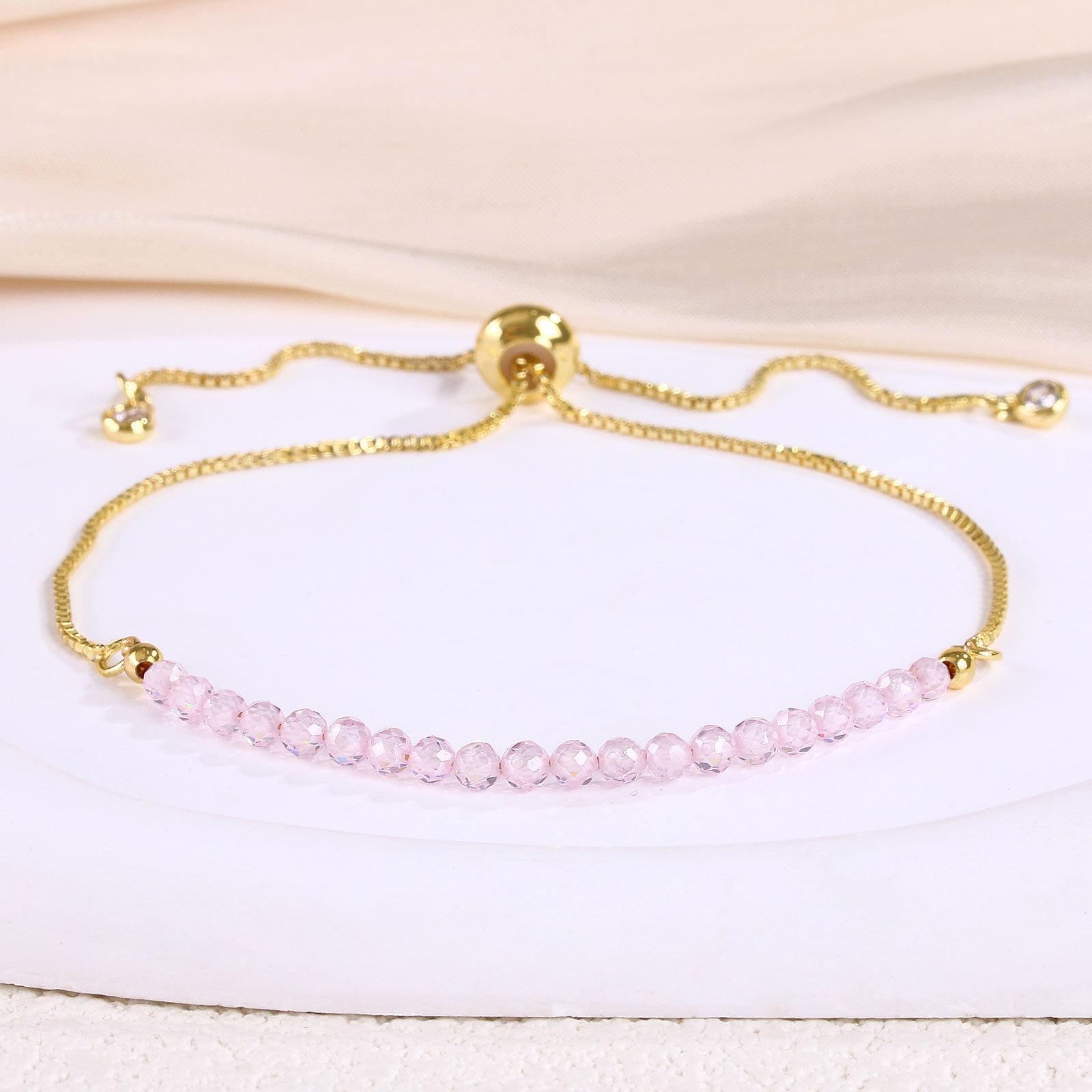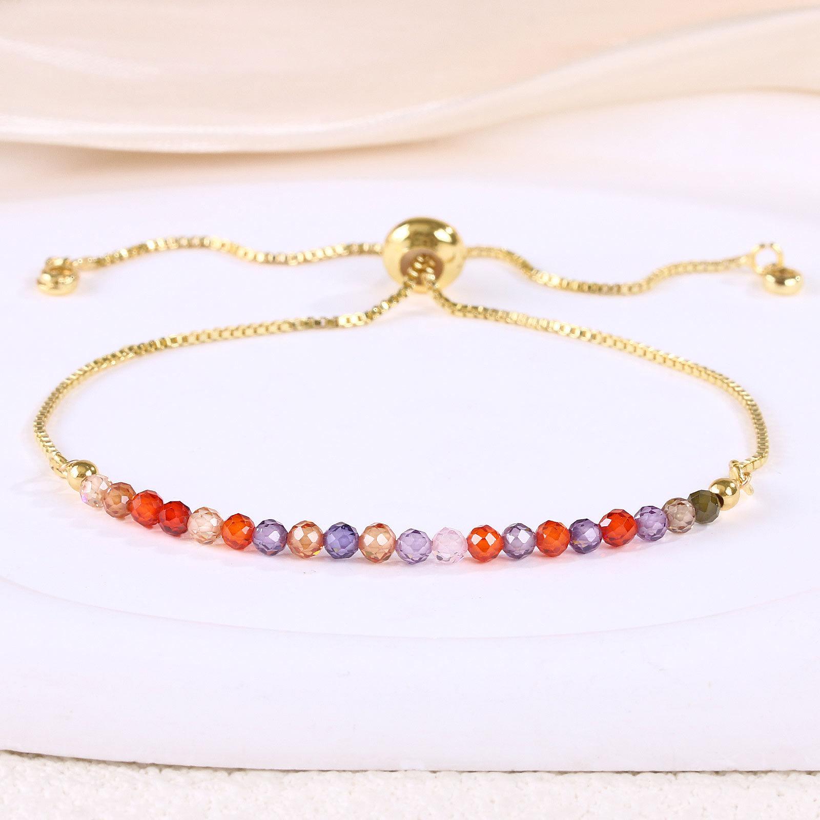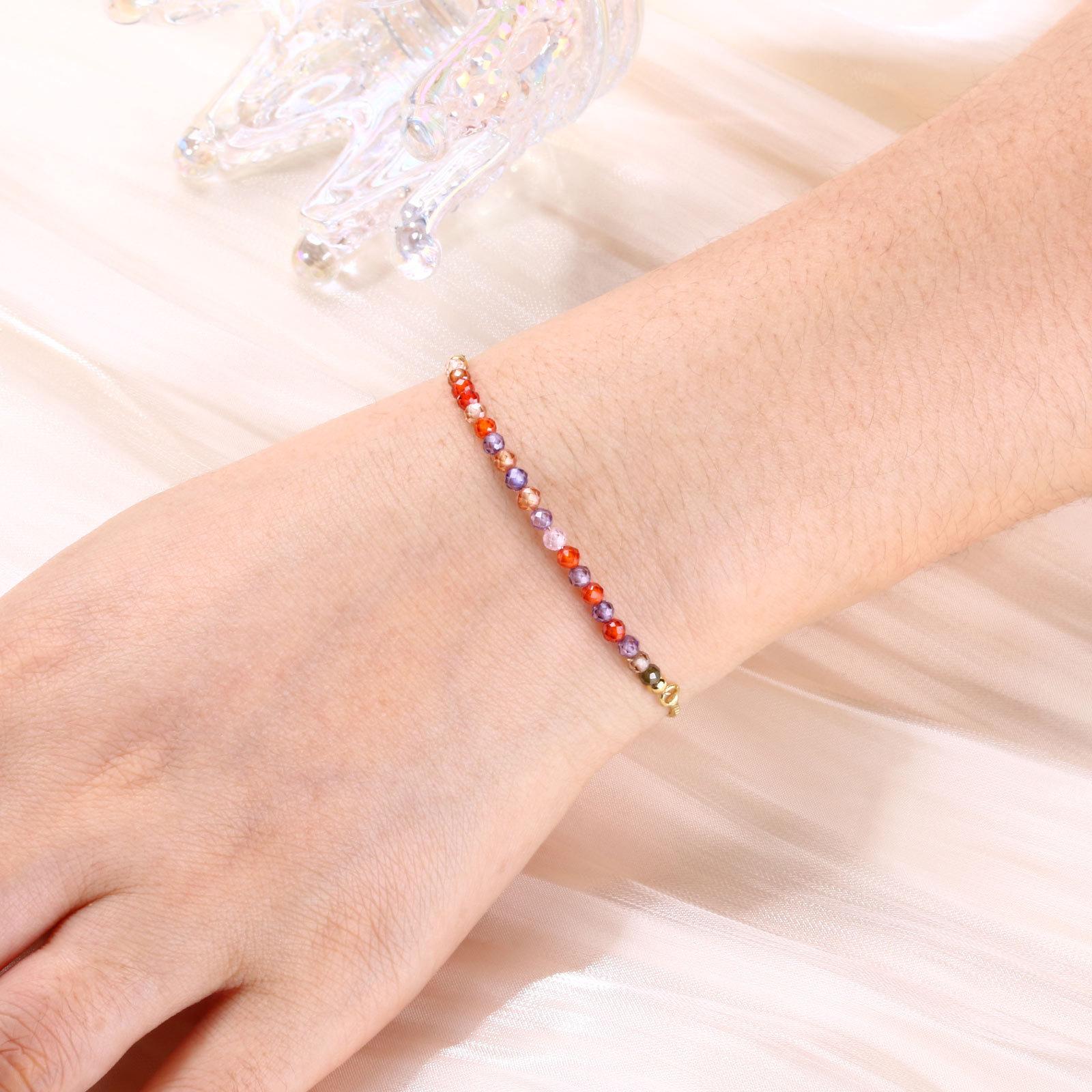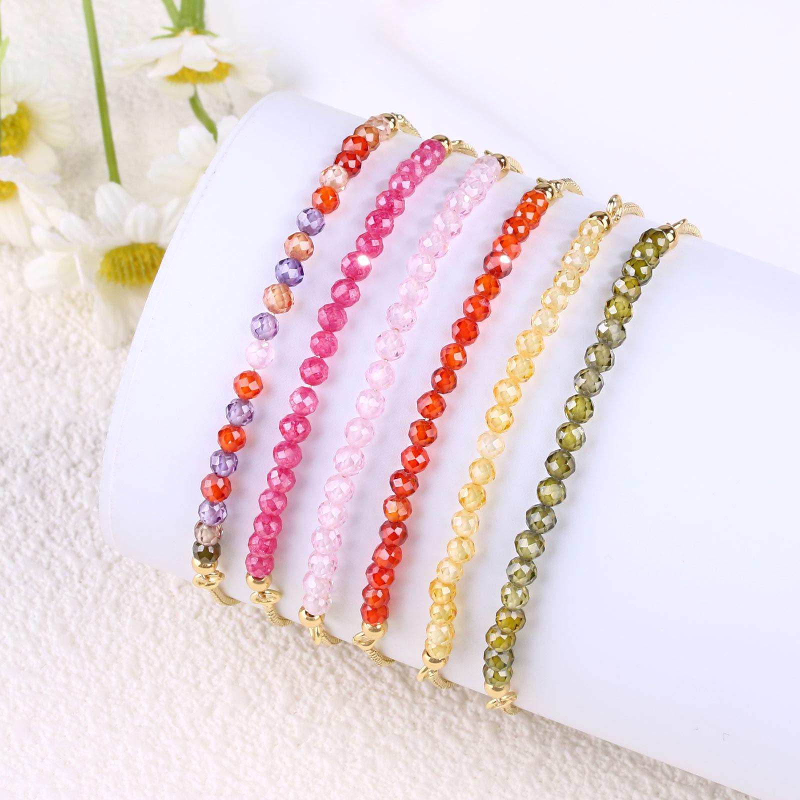 Pulsera Versátil de Piedra Natural de 3 mm de Venta Caliente Transfronteriza con Cuentas de Cristal Coloridas, Redondas de Zircón, Chapada en Cobre con Oro Real, Joyería