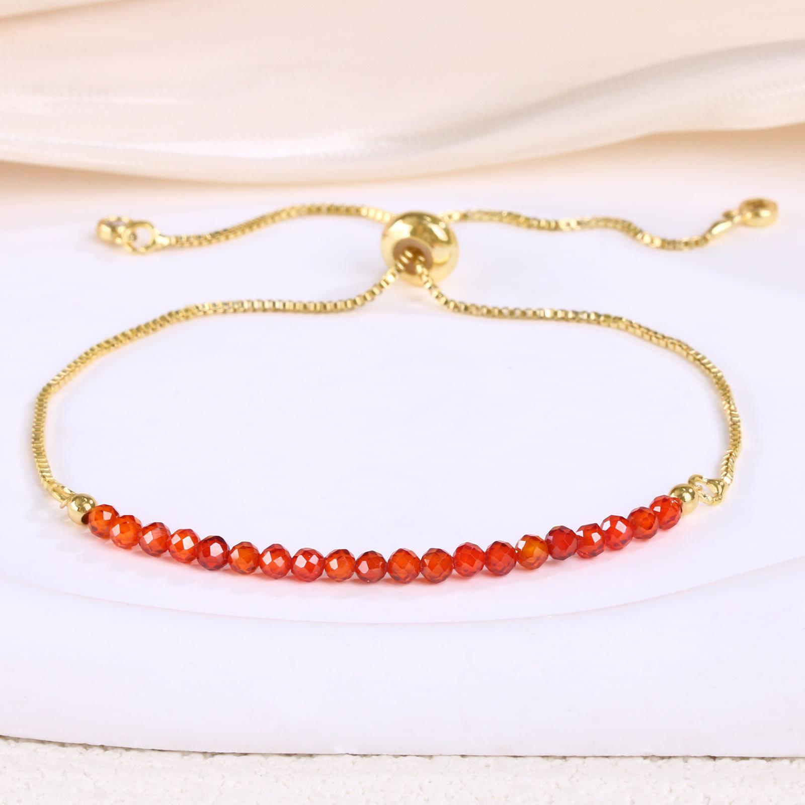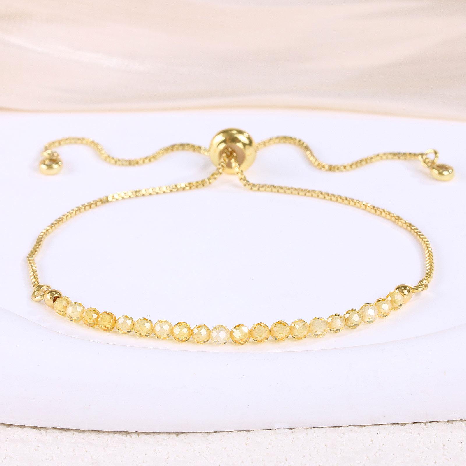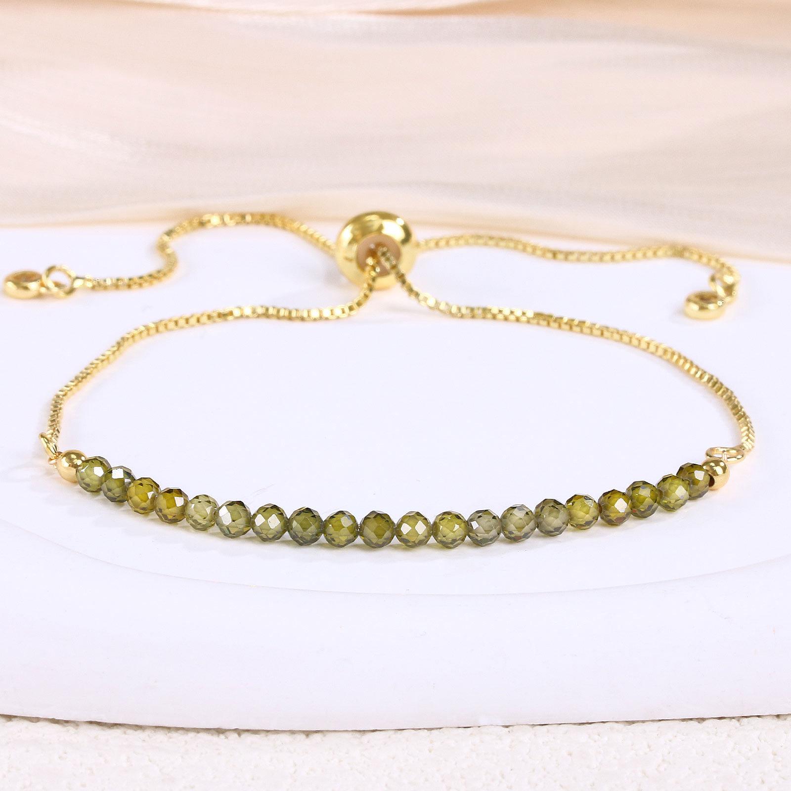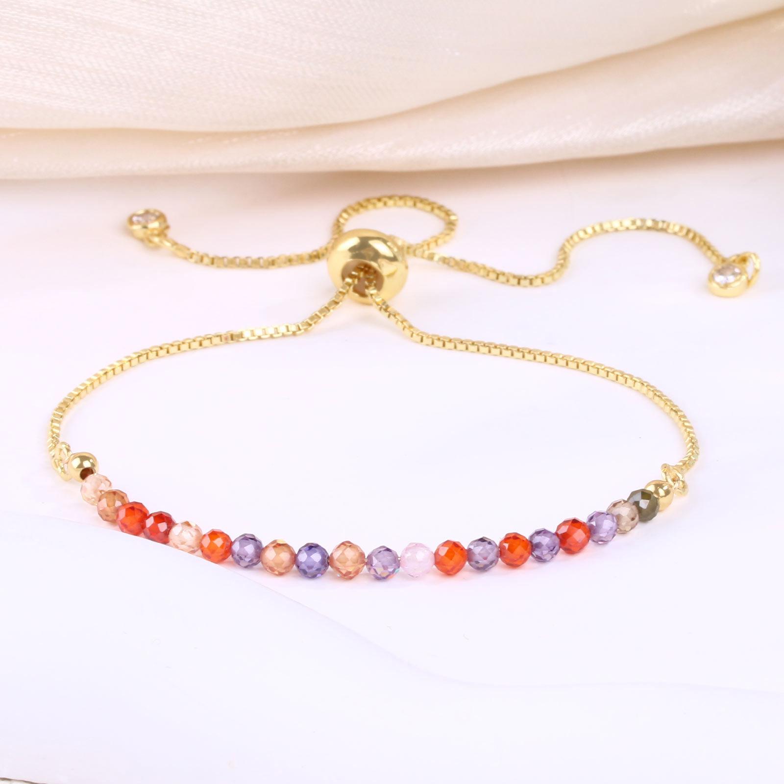 Pulsera Versátil de Piedra Natural de 3 mm de Venta Caliente Transfronteriza con Cuentas de Cristal Coloridas, Redondas de Zircón, Chapada en Cobre con Oro Real, Joyería