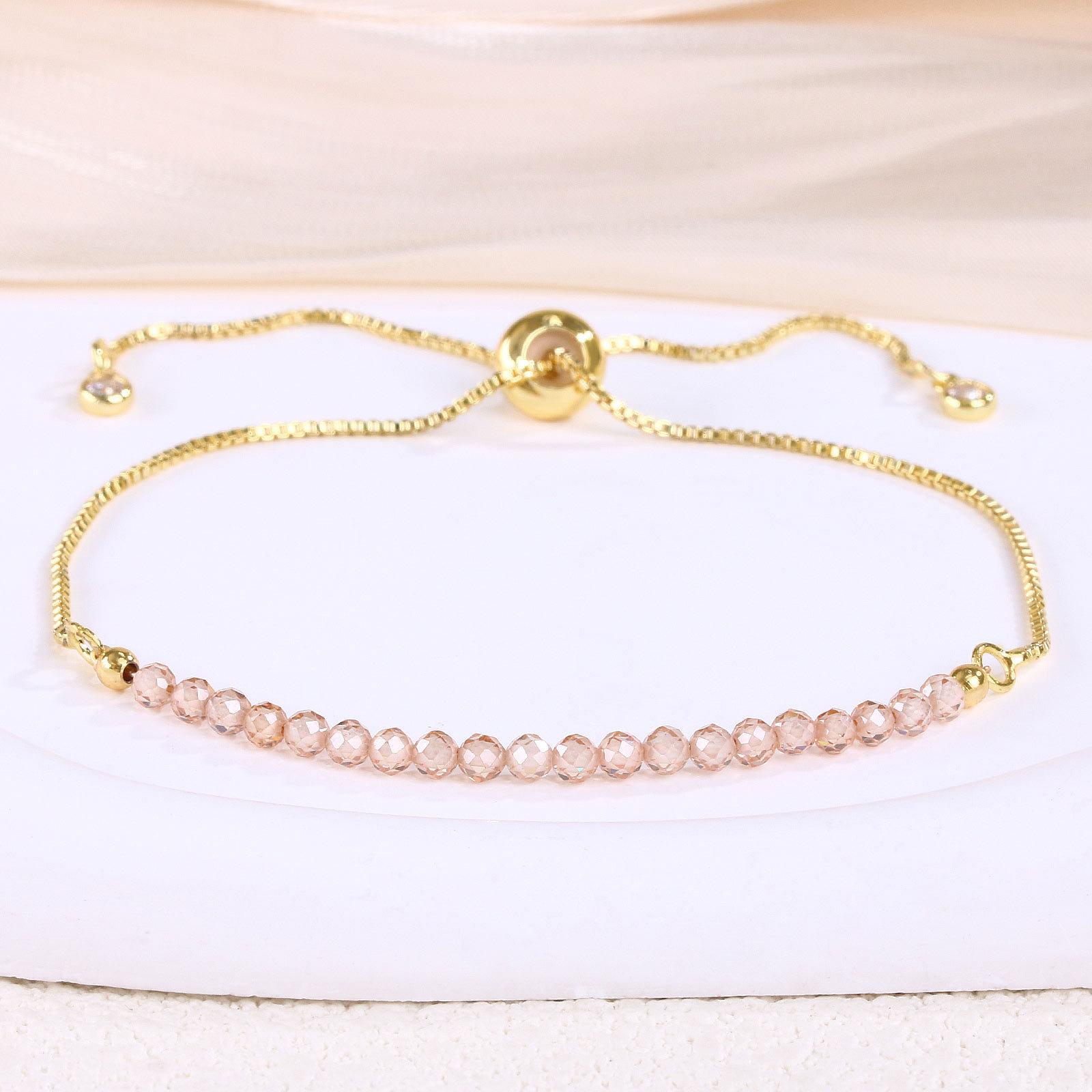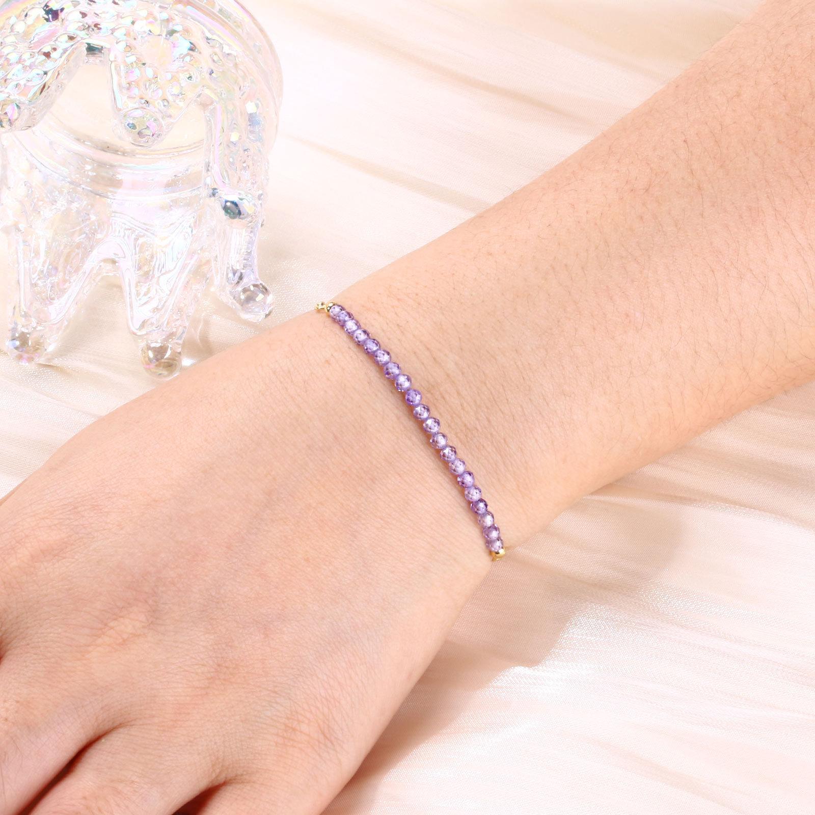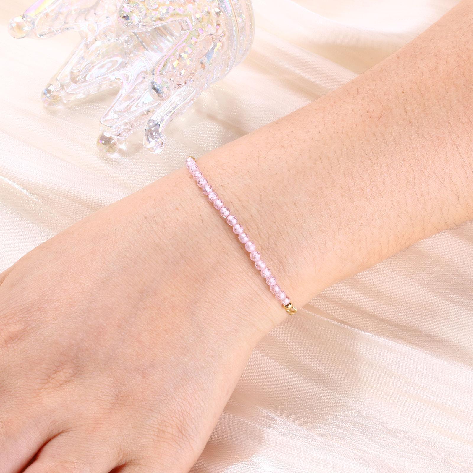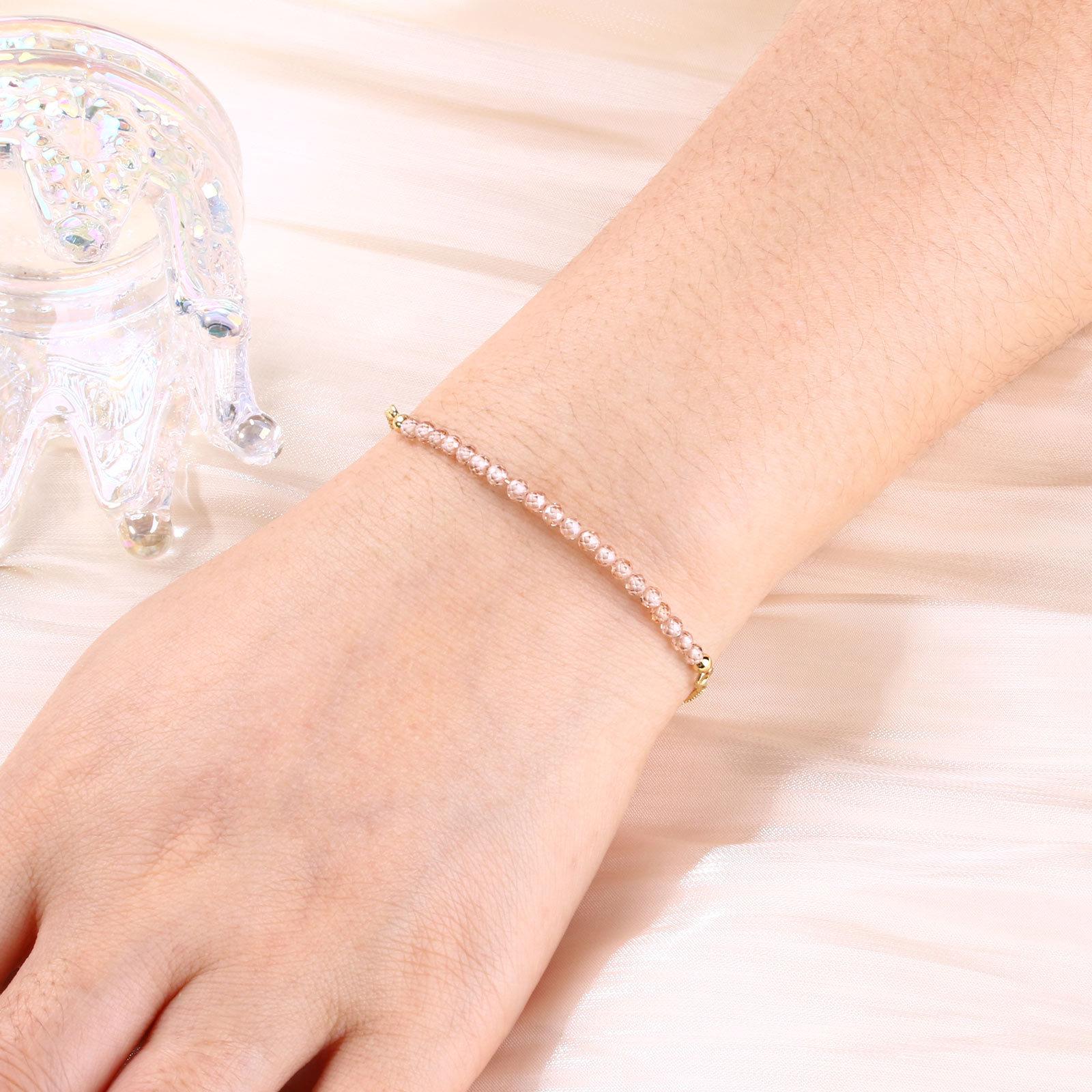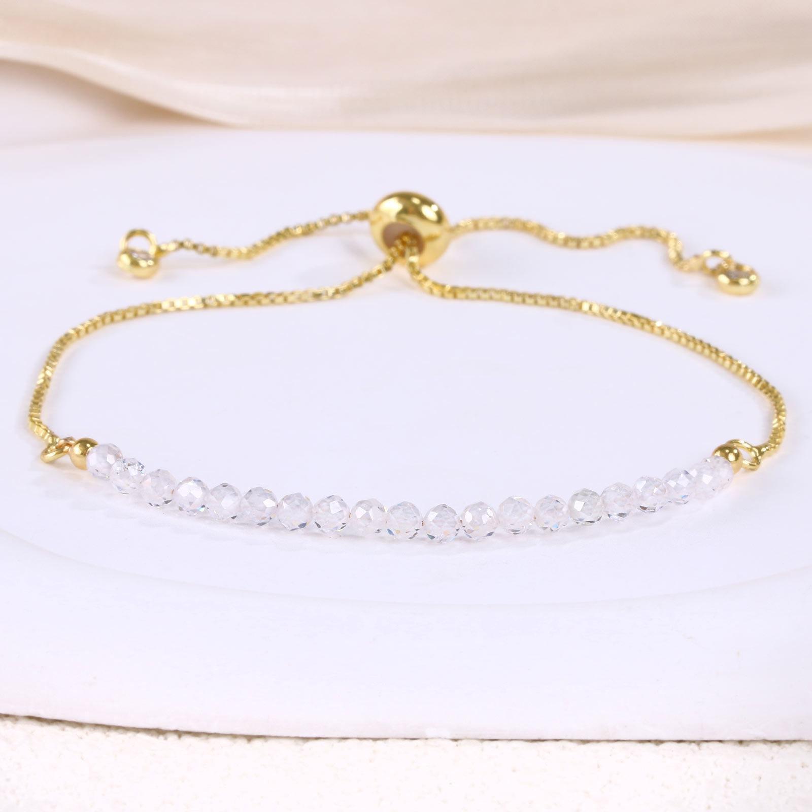 Pulsera Versátil de Piedra Natural de 3 mm de Venta Caliente Transfronteriza con Cuentas de Cristal Coloridas, Redondas de Zircón, Chapada en Cobre con Oro Real, Joyería