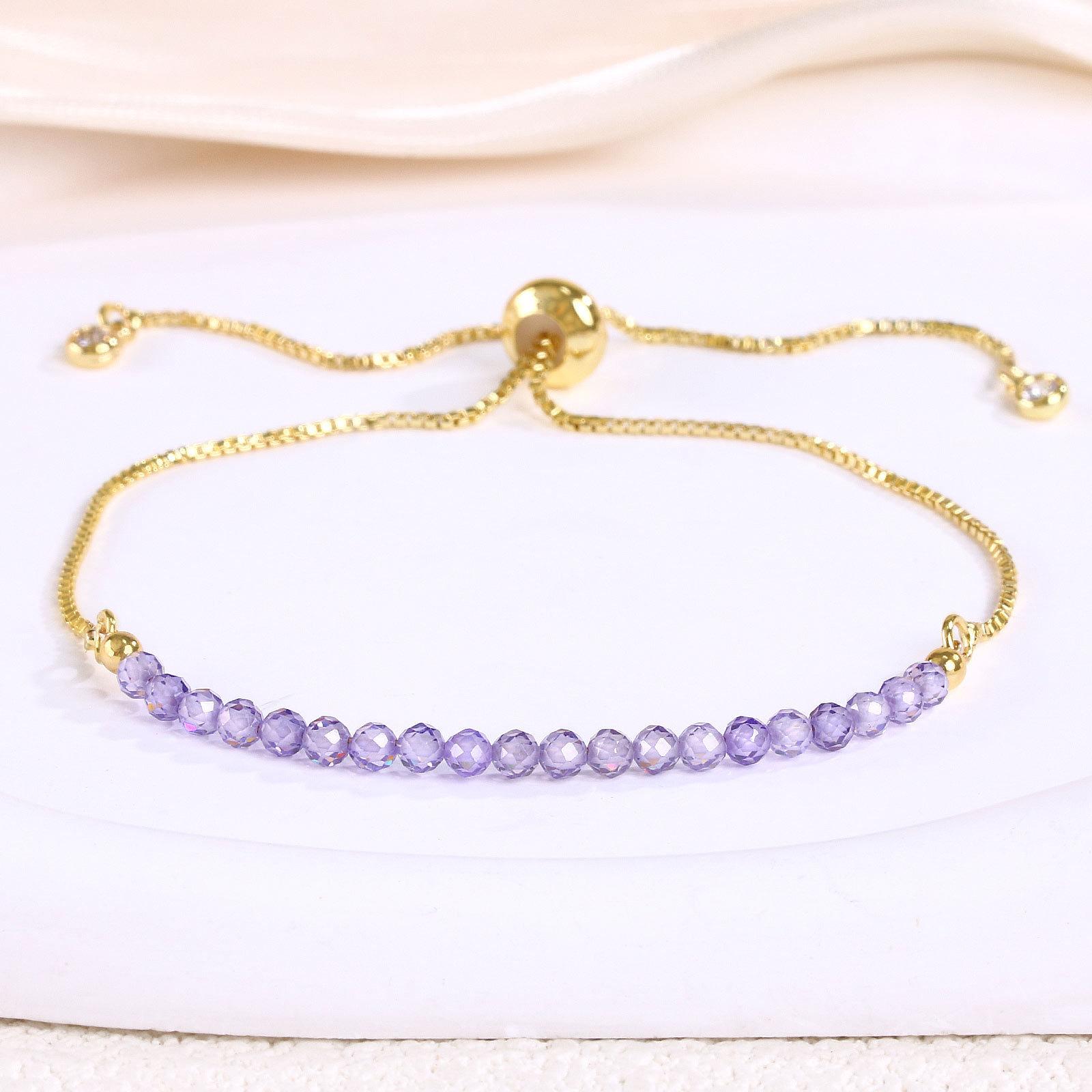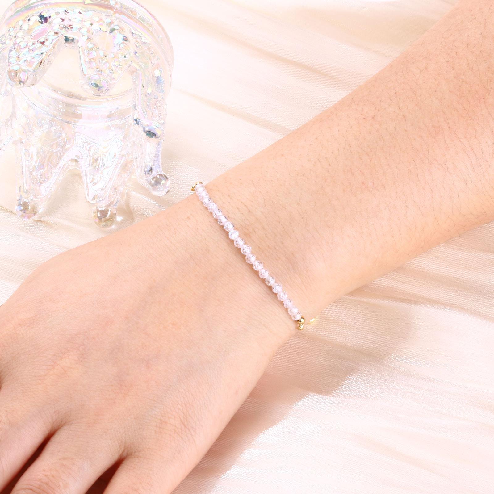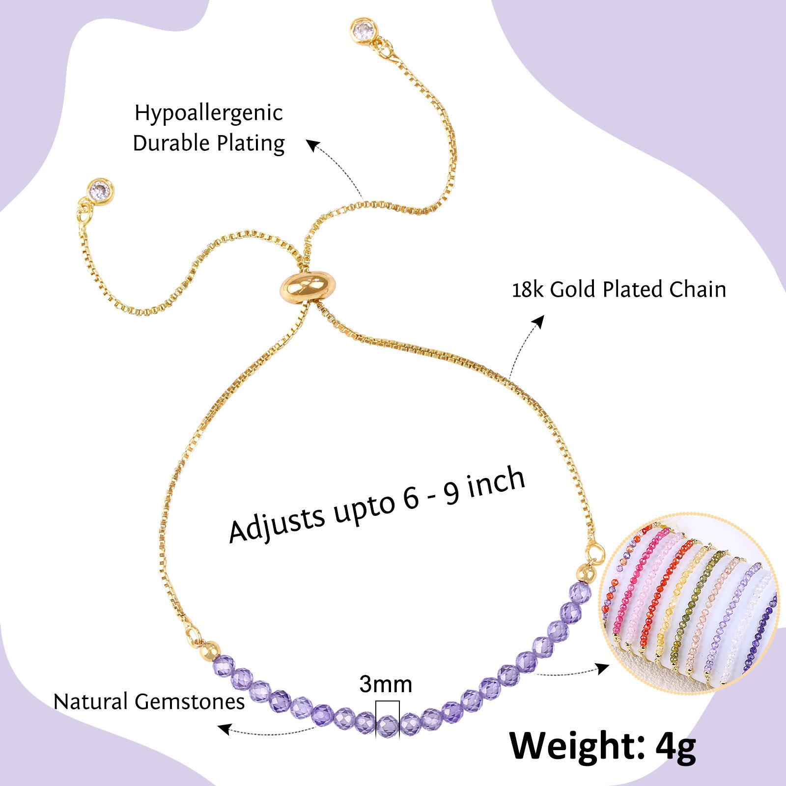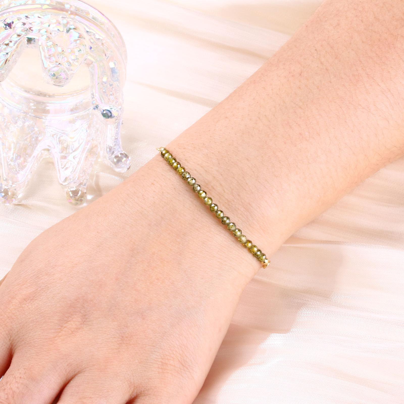 Pulsera Versátil de Piedra Natural de 3 mm de Venta Caliente Transfronteriza con Cuentas de Cristal Coloridas, Redondas de Zircón, Chapada en Cobre con Oro Real, Joyería