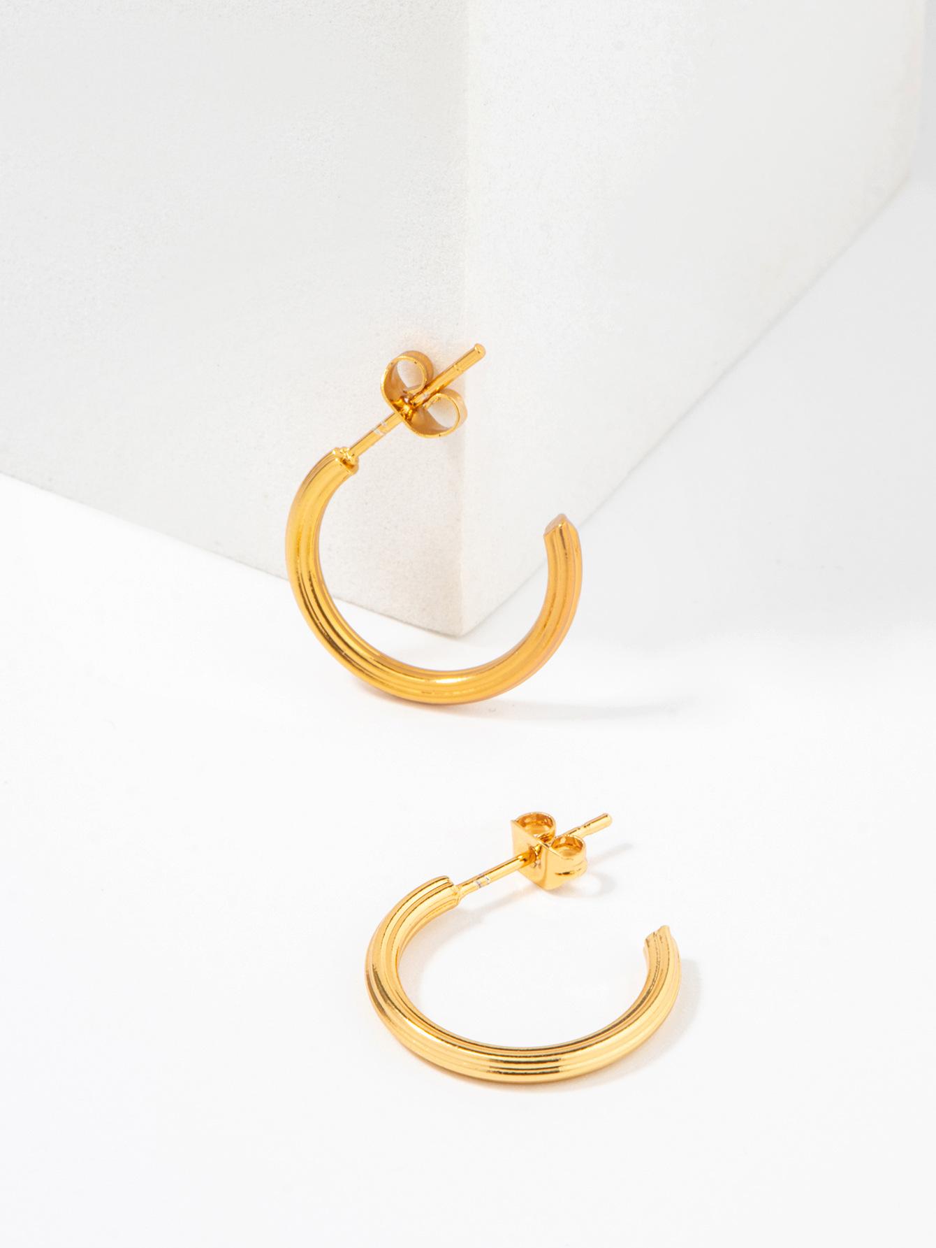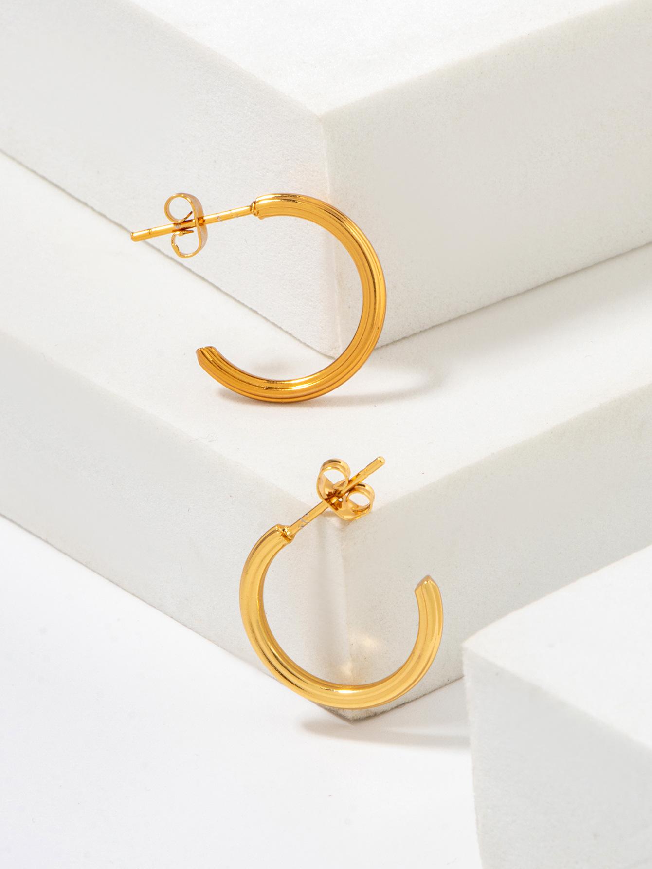 Aretes Europeos y Americanos de Amazon Simples Redondos en Forma de C Torcidos Clips para la Oreja Aretes de Tuerca para Hombre Joyería de Acero Inoxidable