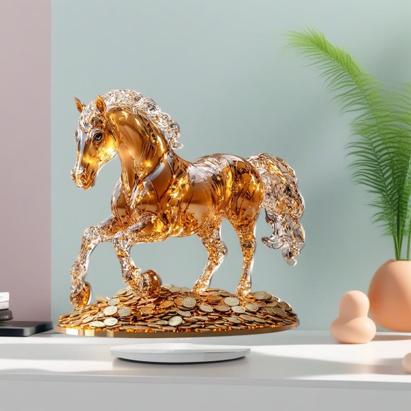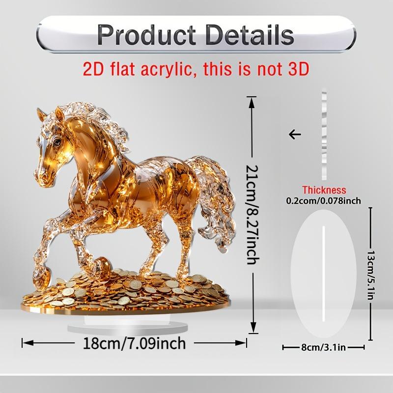Estatua de Caballo Acrílico 2D Estilo Bohemio Transfronterizo Decoración Moneda Dorada Adornos para Hogar Oficina o Cafetería