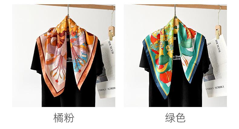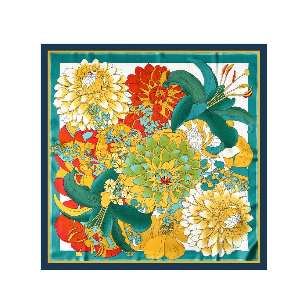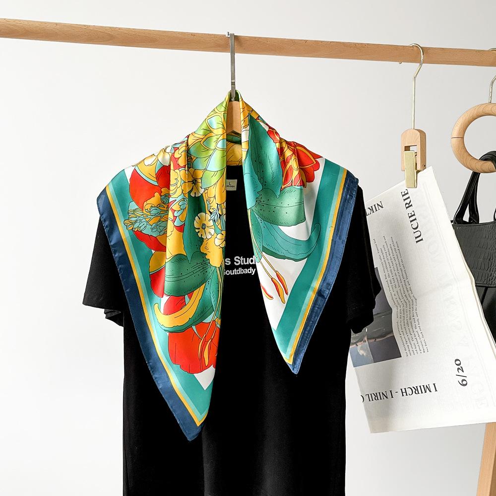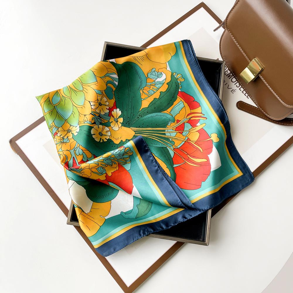 Pañuelo de seda de alta calidad para mujer con estampado de lirios verdes, pañuelo cuadrado pequeño con pañuelo para la cabeza al por mayor