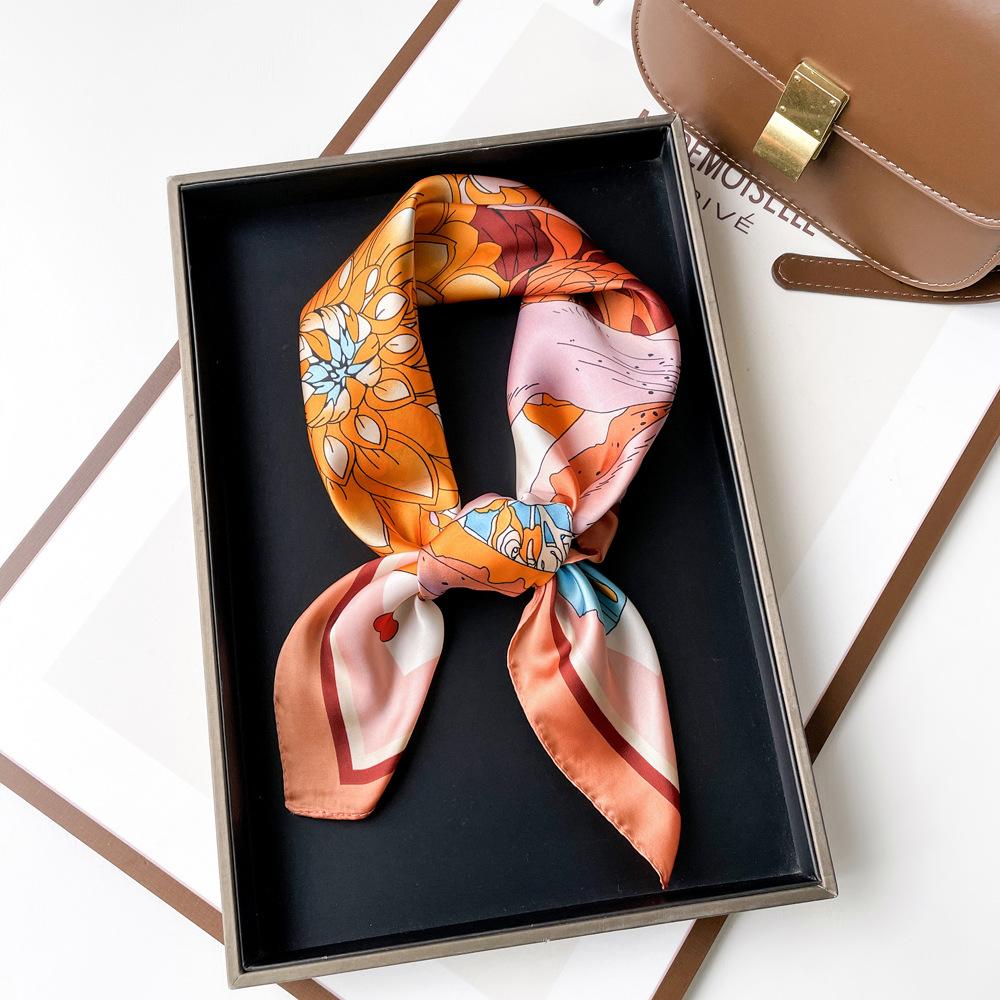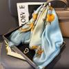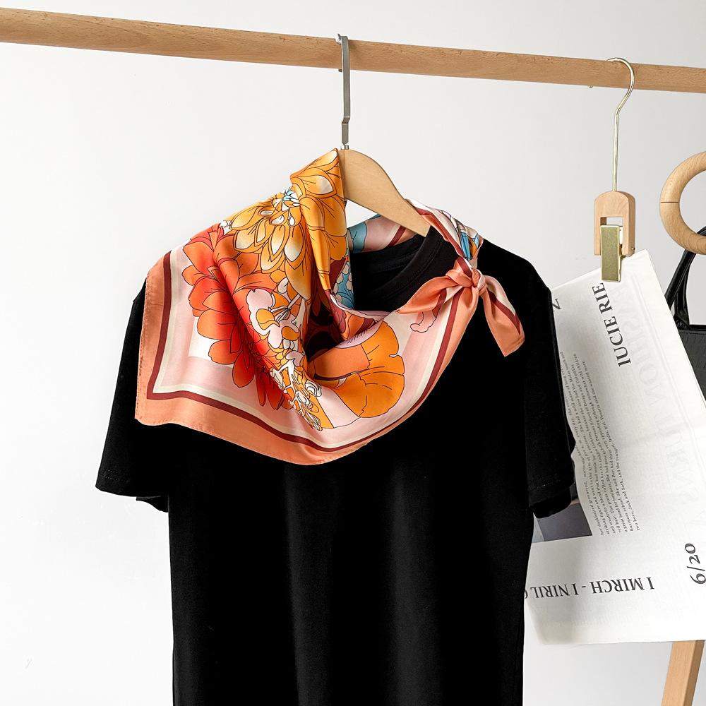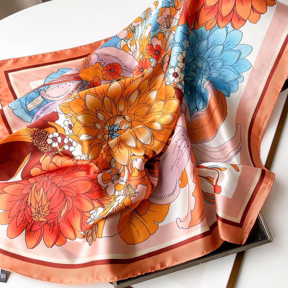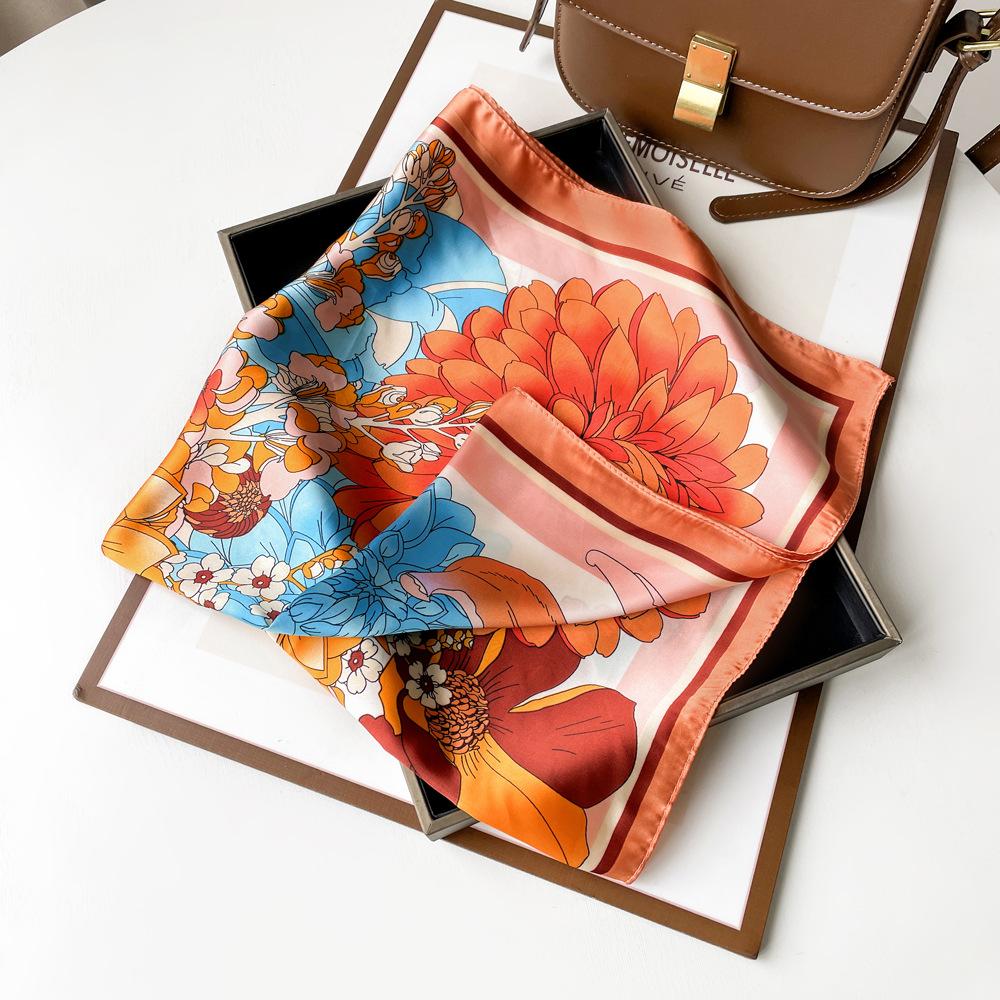 Pañuelo de seda de alta calidad para mujer con estampado de lirios verdes, pañuelo cuadrado pequeño con pañuelo para la cabeza al por mayor