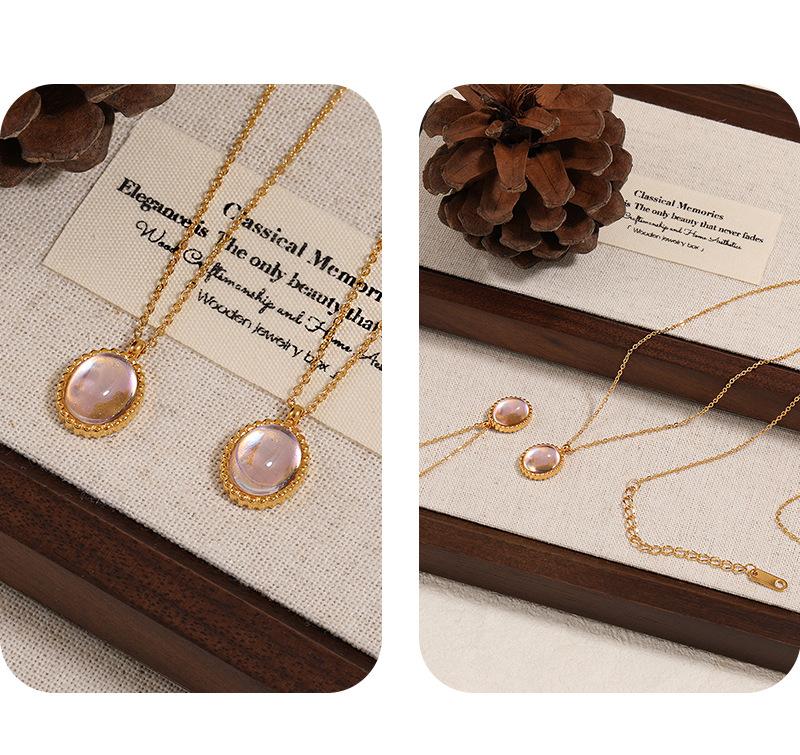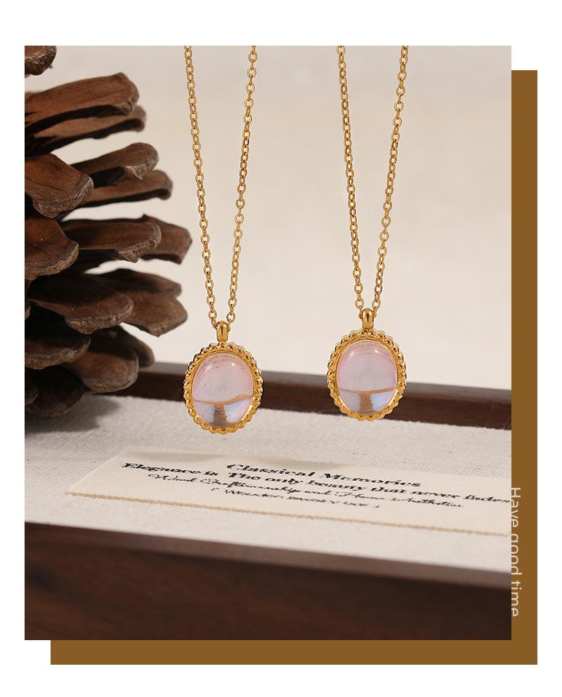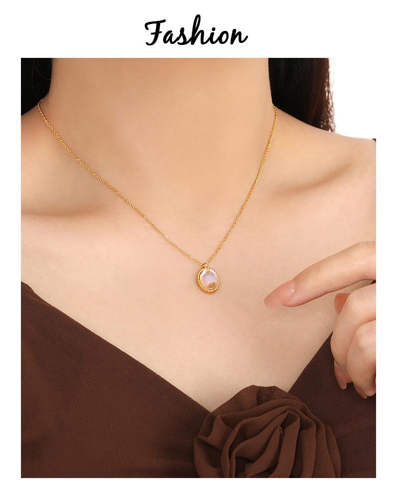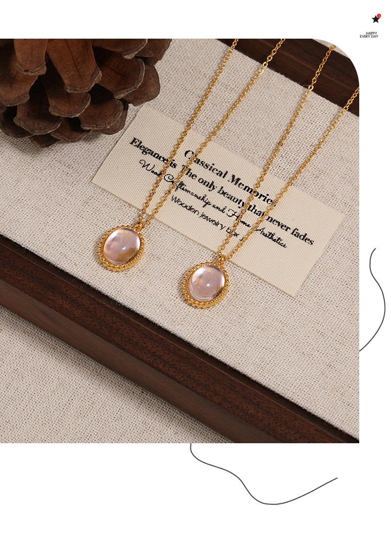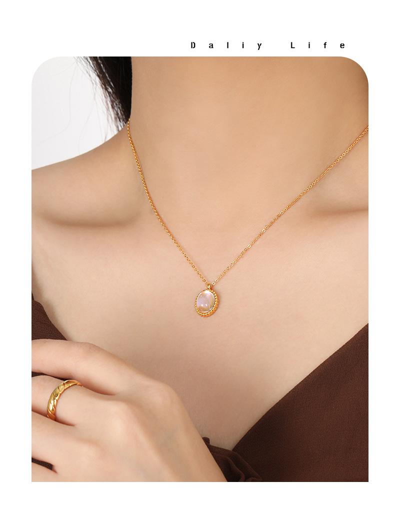 Collar de piedra lunar con forma de denier simple, estilo coreano, nuevo estilo, cadena de clavícula de acero de titanio de alta calidad personalizada y de moda.