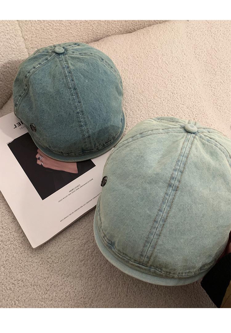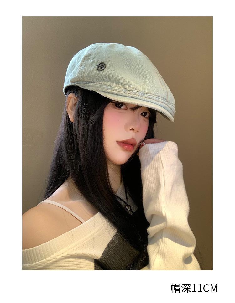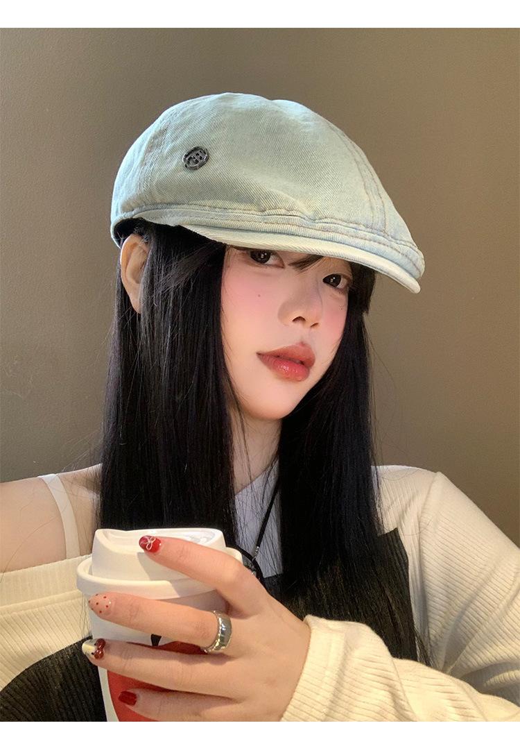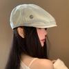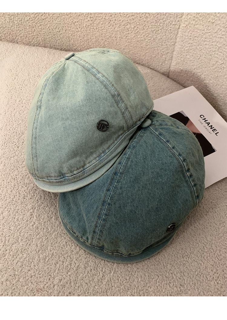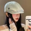 Gorra Forward de mezclilla lavada para mujer Primavera y Otoño Estilo japonés Retro Exhibición de rostro Boina pequeña inversa Cabeza grande Sombrero combinable
