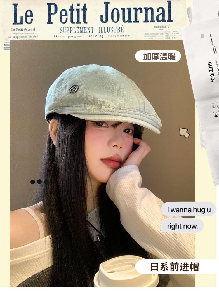 Compra Gorra Forward de mezclilla lavada para mujer Primavera y Otoño Estilo japonés Retro Exhibición de rostro Boina pequeña inversa Cabeza grande Sombrero combinable al por mayor en Joom.pro
