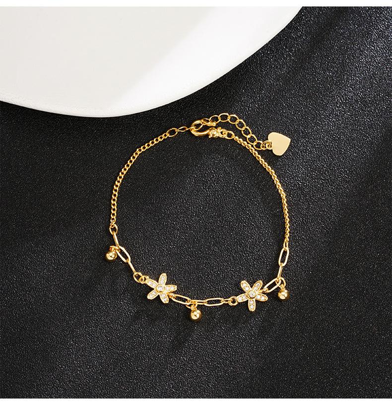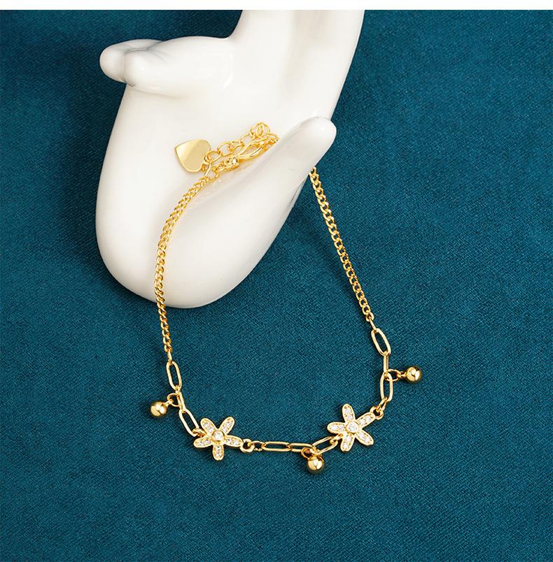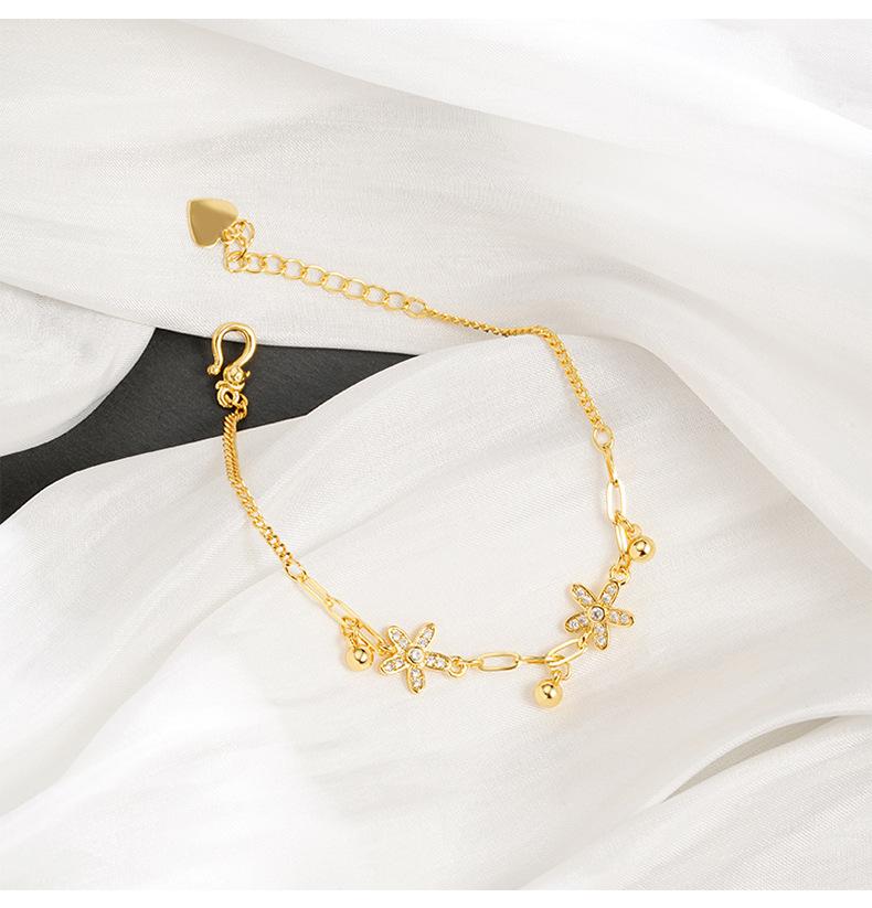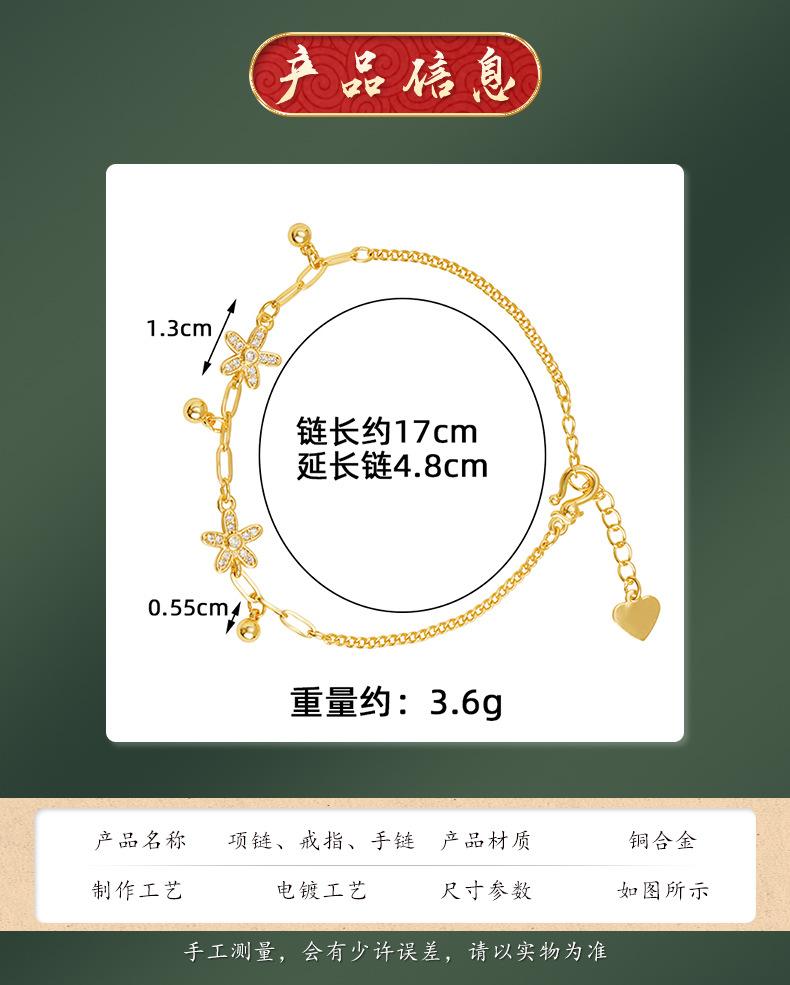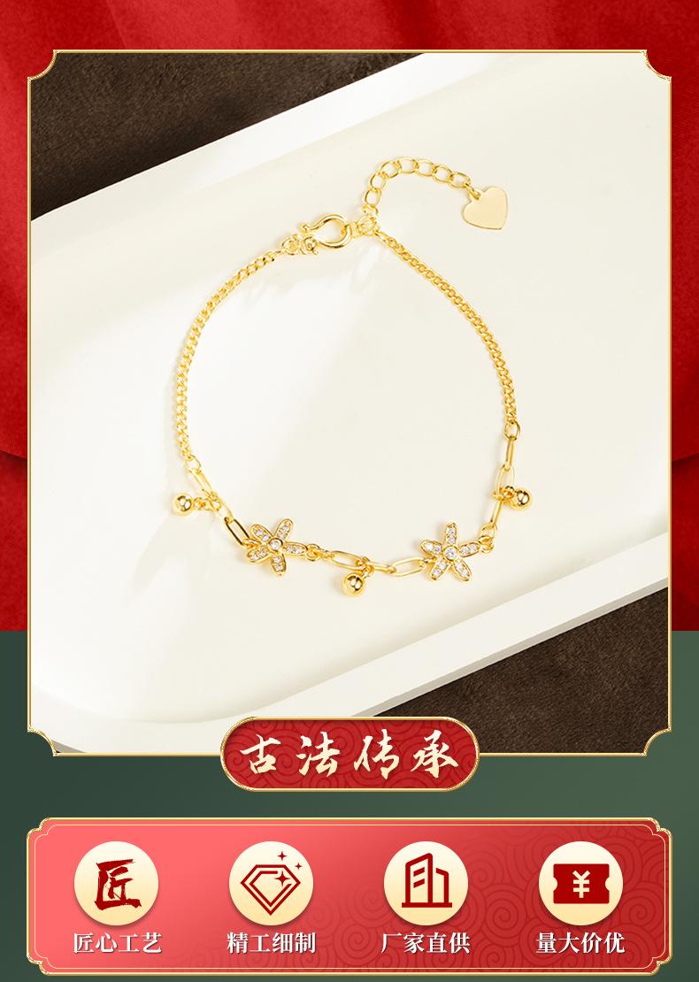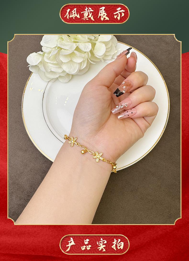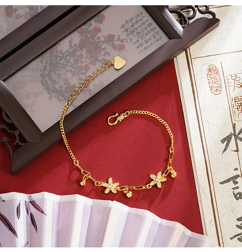 Pulsera de oro vietnamita con arena, ligera, de lujo, con microincrustaciones de circonita, flor de cinco hojas, borlas, cuentas redondas, joyería sencilla y duradera para mujer.