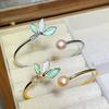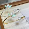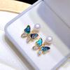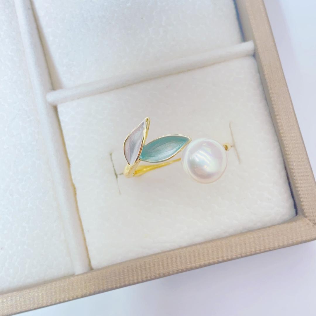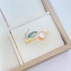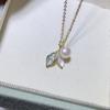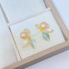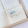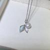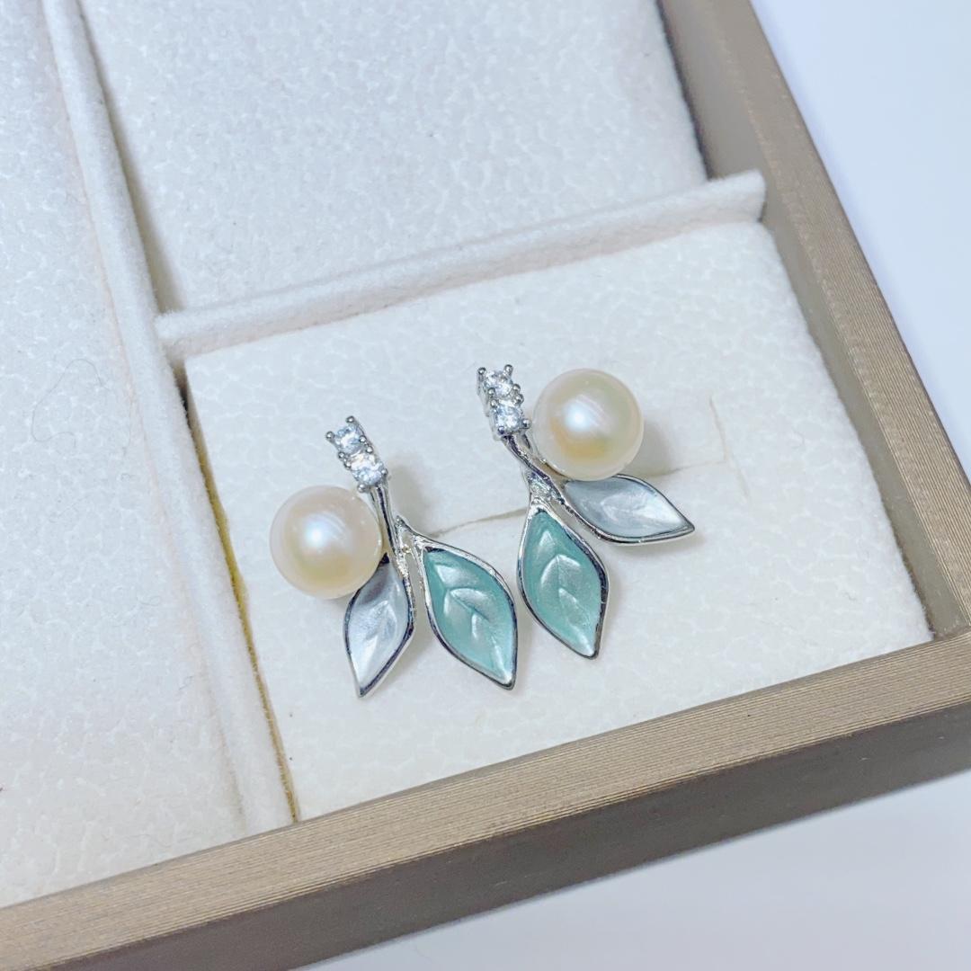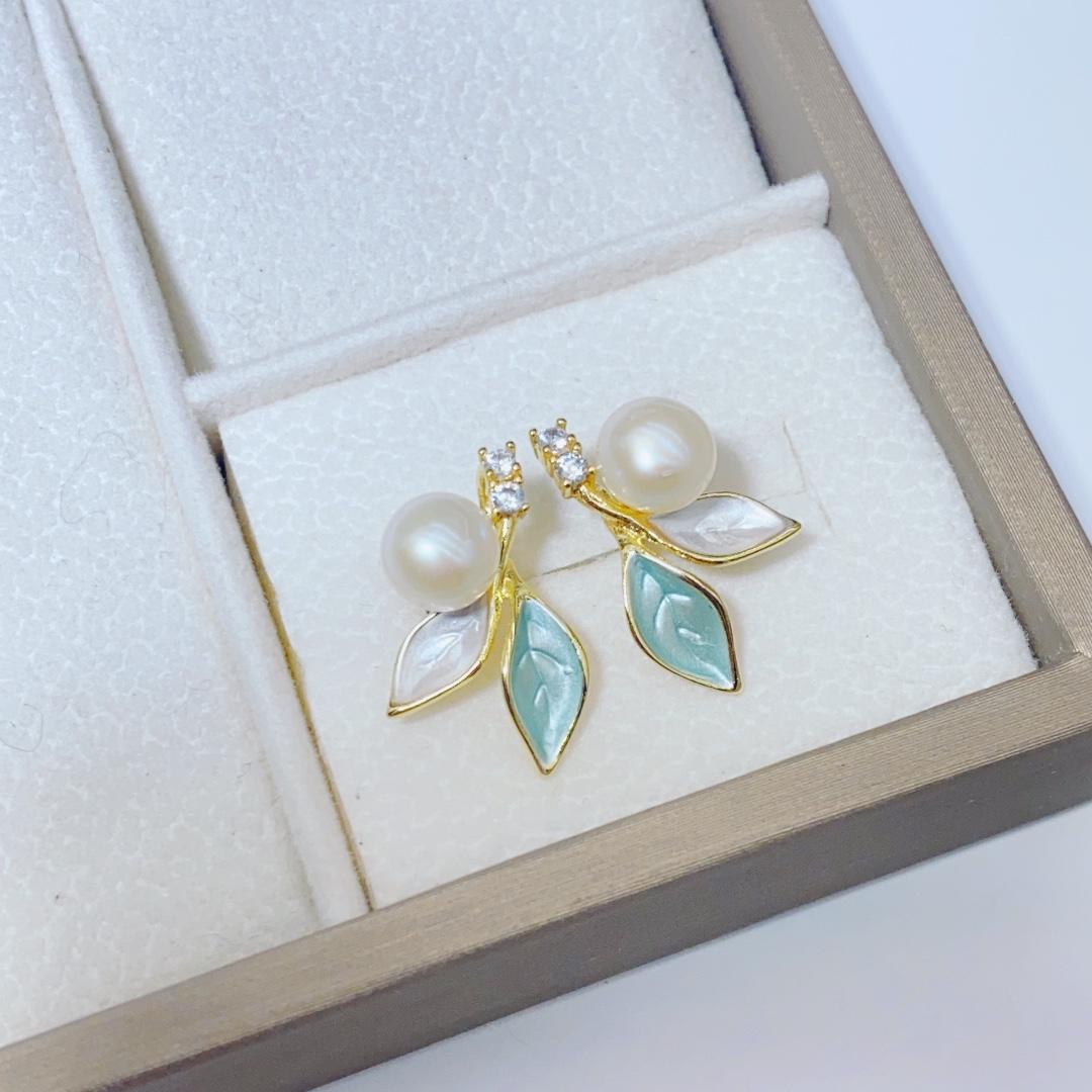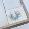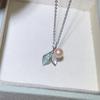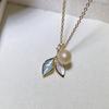 Juego de tres piezas de aguja de plata S925 con perla natural de agua dulce, pendientes de hoja Morandi con gota de aceite, collar, anillo
