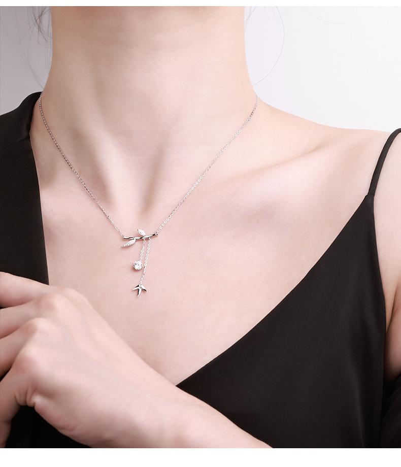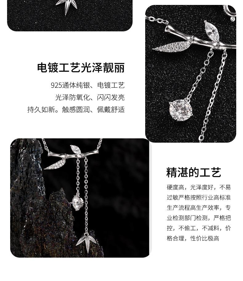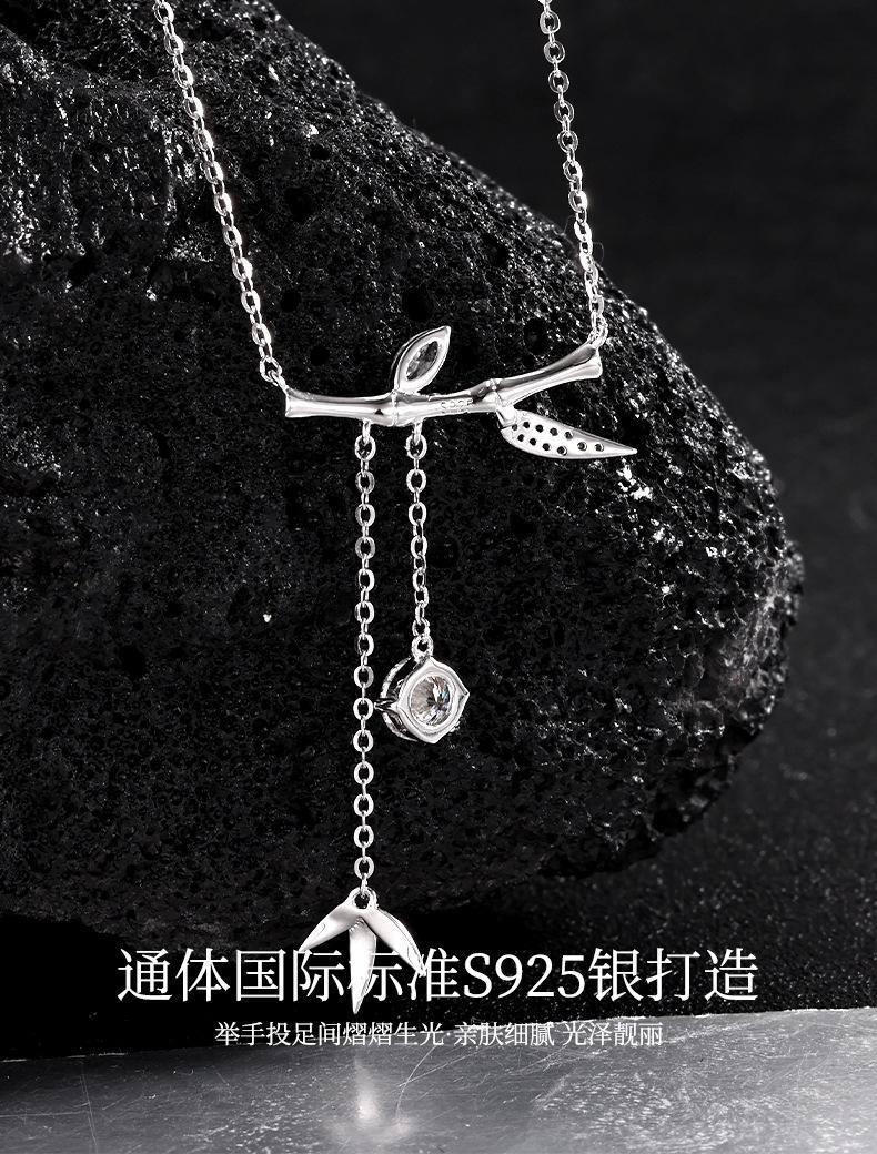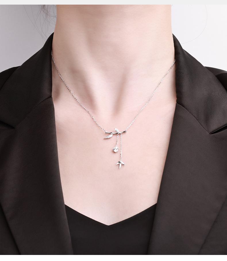 Compra Collar de moissanita de bambú brillante de plata esterlina S925, de alta calidad, combinable con todo, ligero, de lujo, moderno, estilo chino, cadena de clavícula simple. al por mayor en Joom.pro