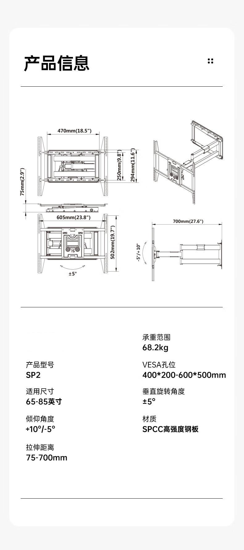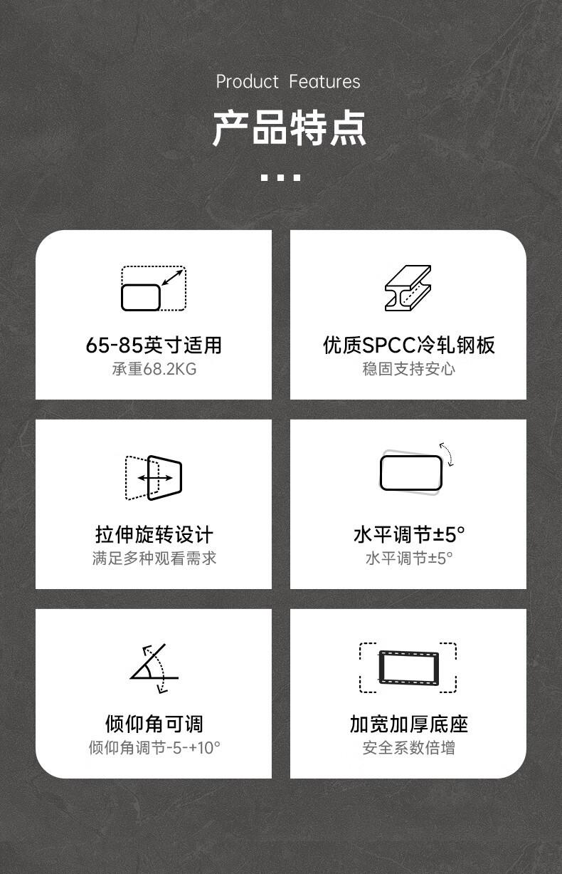 Compra Nb (65-85 pulgadas) Soporte para TV LCD Soporte para TV Giratorio Telescópico Montaje de Pared Sp2 Acero Laminado en Frío al por mayor en Joom.pro