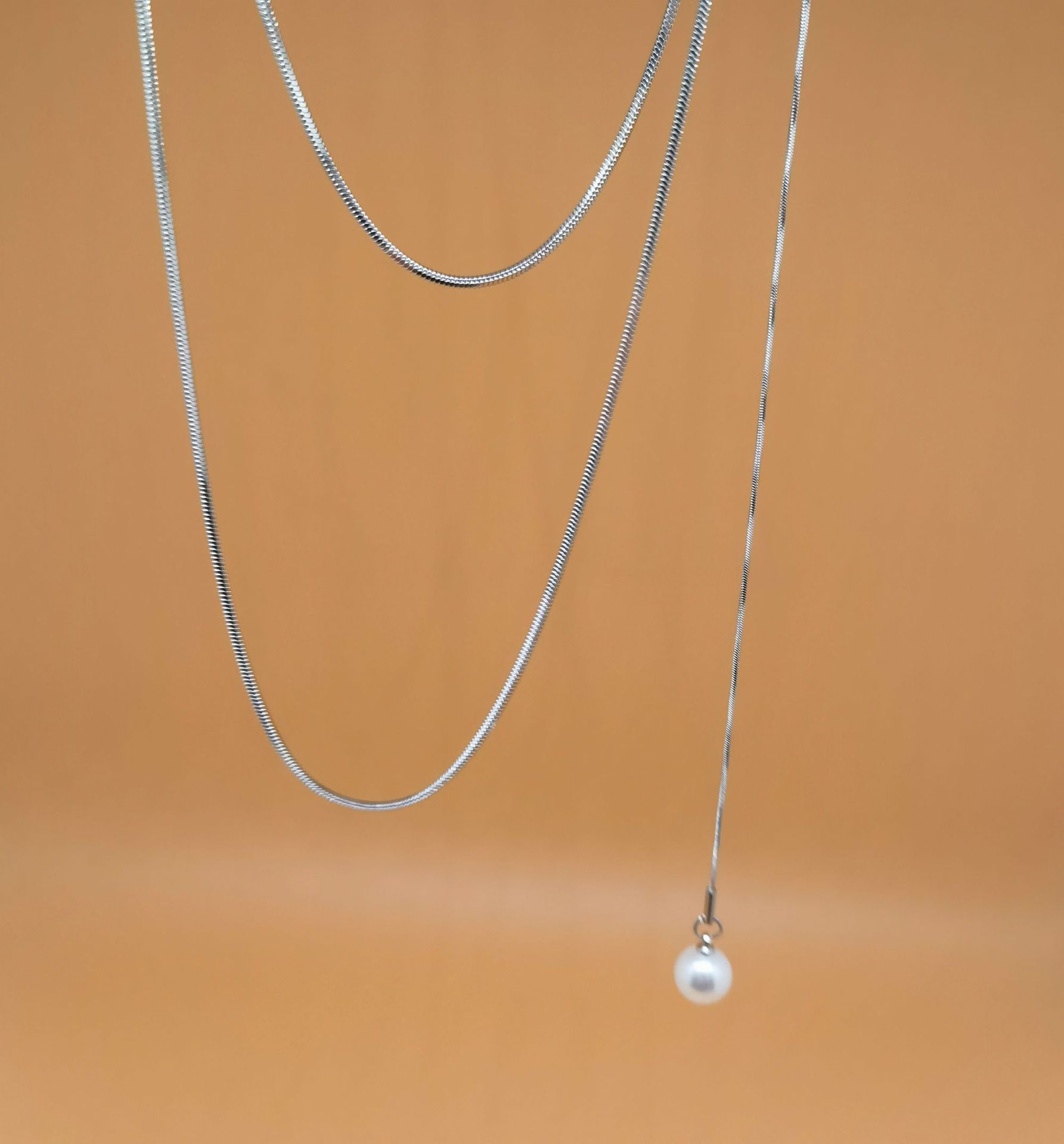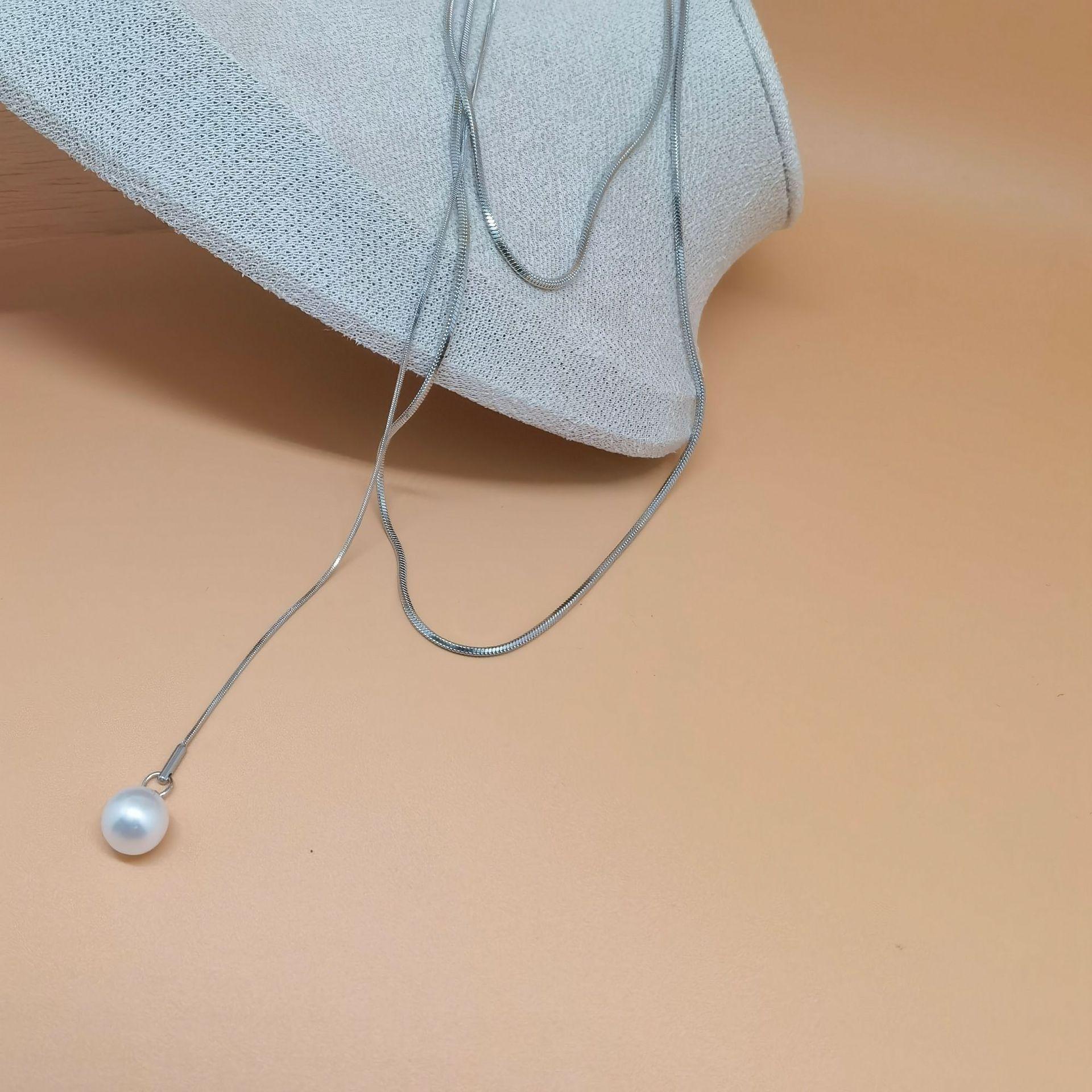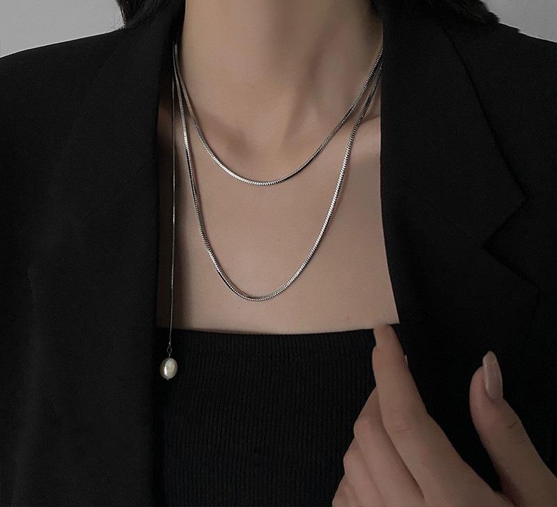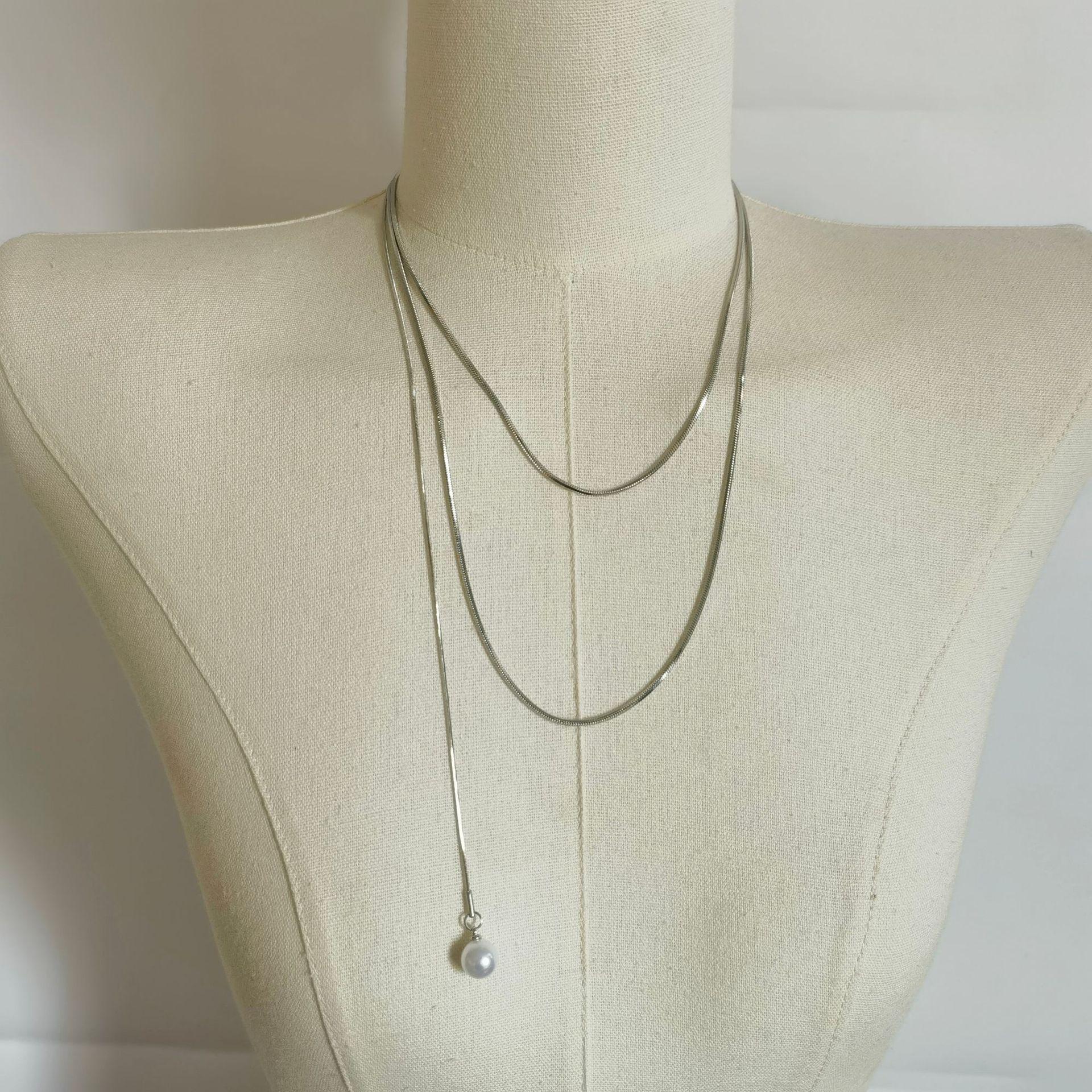 Accesorios para collares de mujer, cadena de lana ligera de lujo de nicho, cadena de clavícula de perla francesa ajustable sin color, para otoño e invierno.