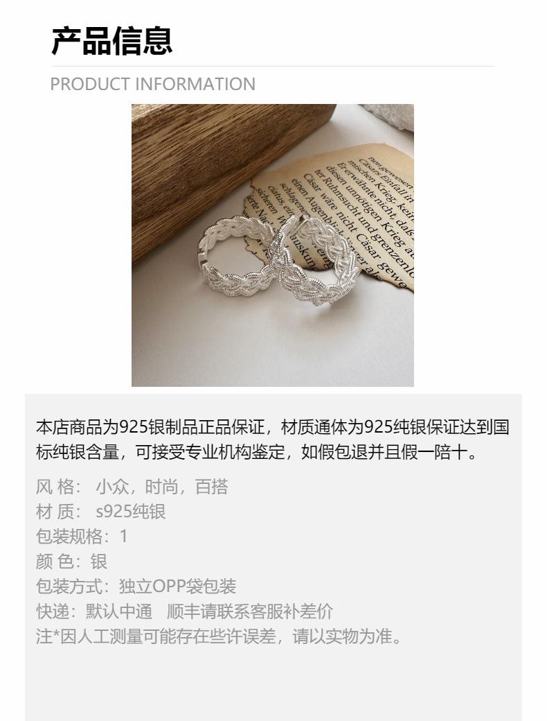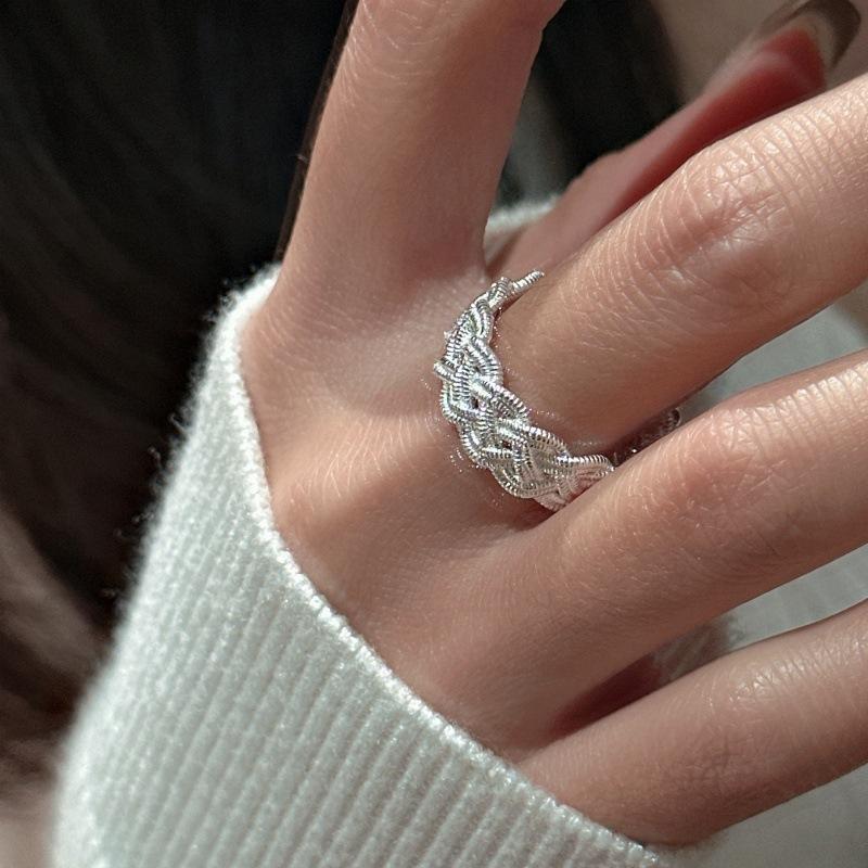 Anillo de plata de ley S925 con textura tejida, estilo nicho, personalidad de moda, anillo de dedo cepillado retro francés simple, venta al por mayor