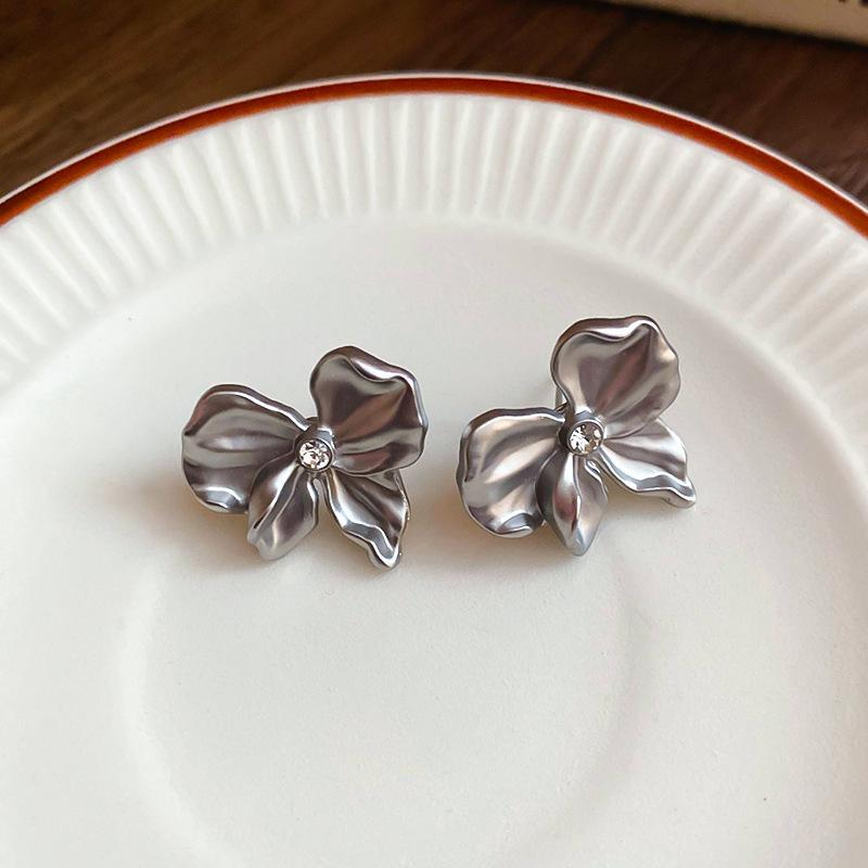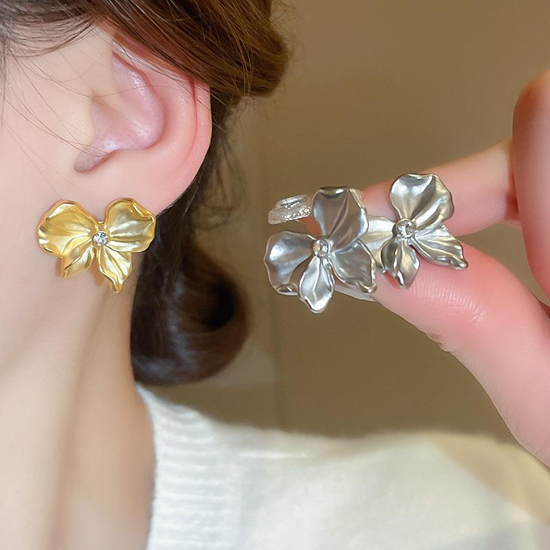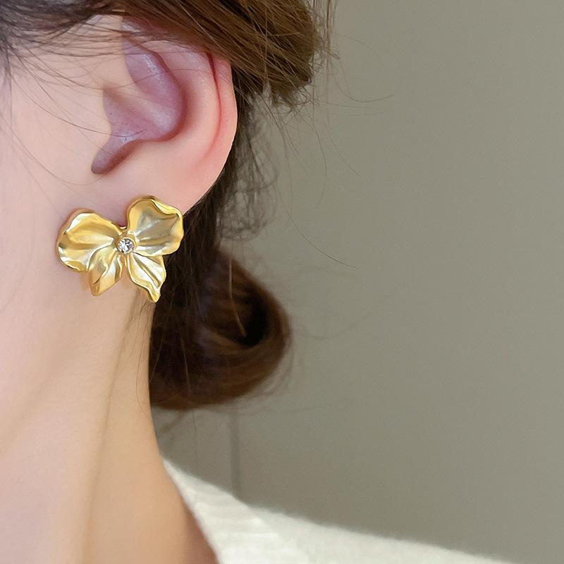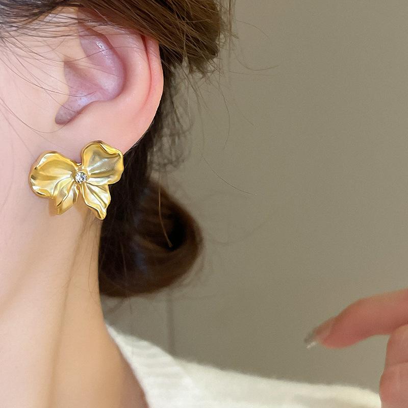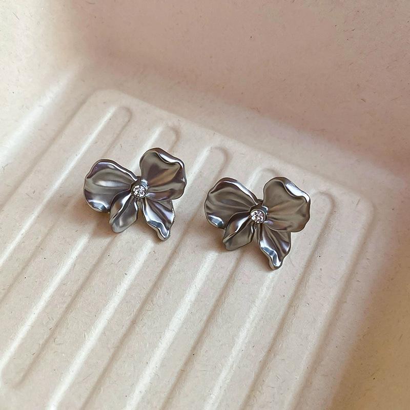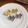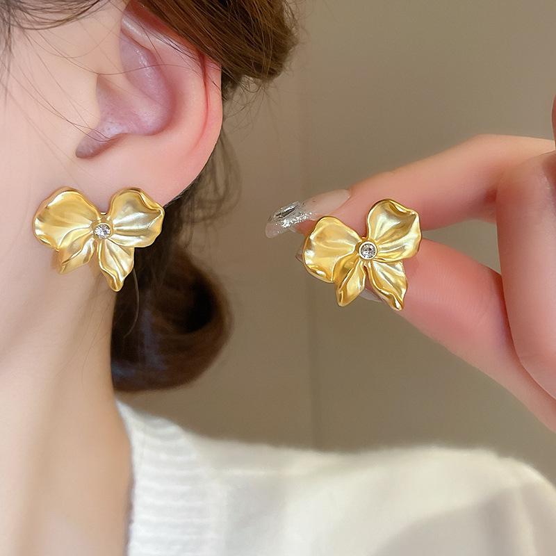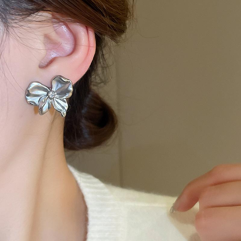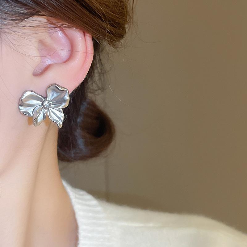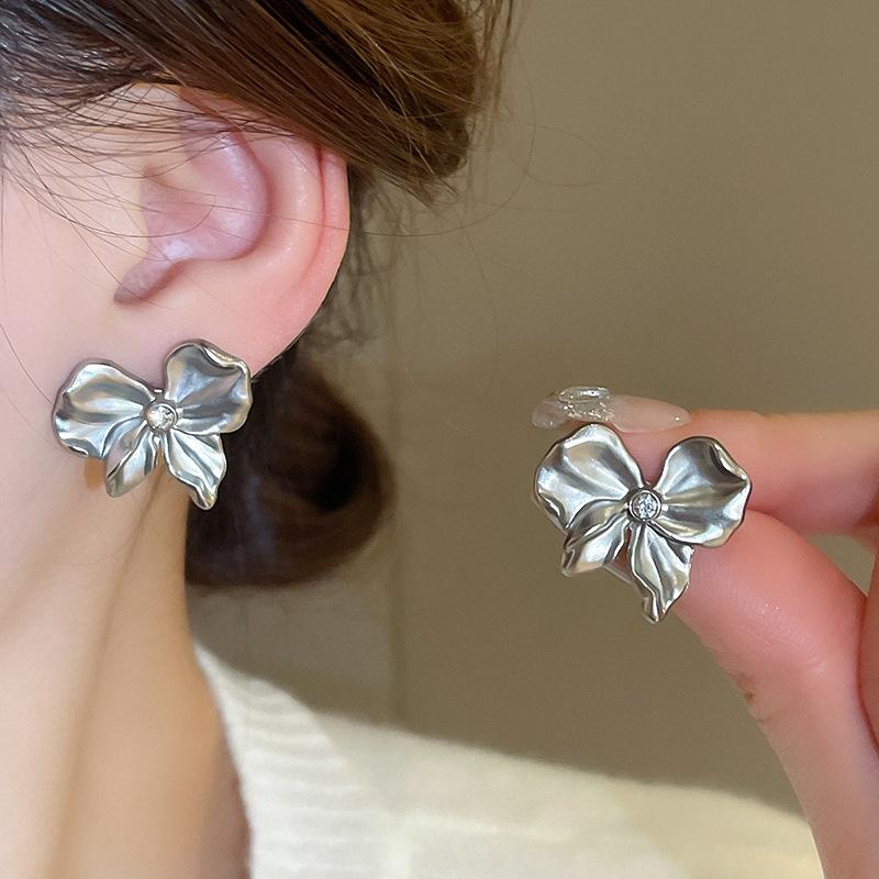 Pendientes de mariposa con lazo plisado y diamantes de plata, estilo europeo y americano, ligeros, de lujo, exagerados, con diseño de nicho personalizado.