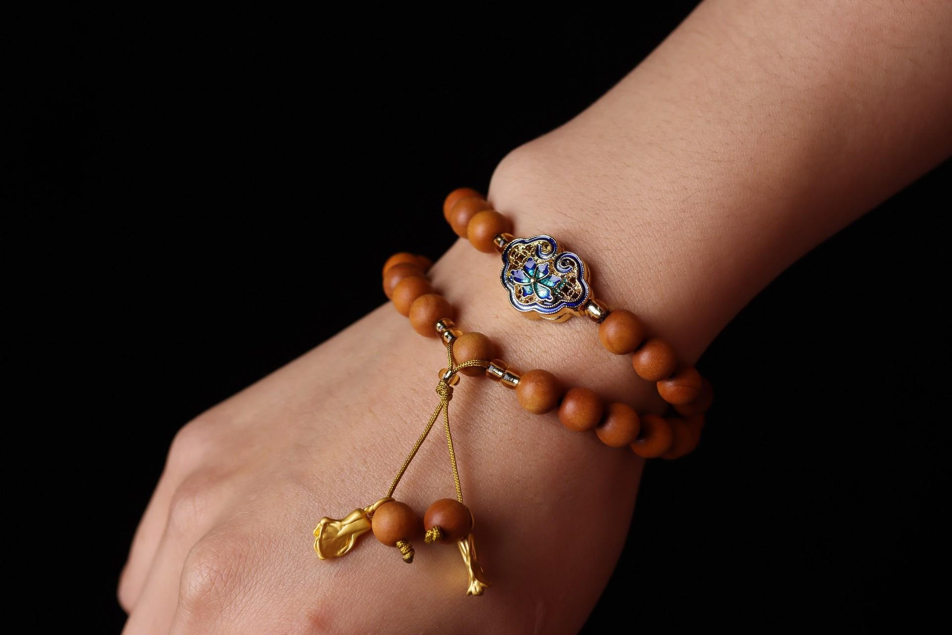 Pulsera de sándalo de nicho de alta calidad tejida a mano con material antiguo para hombres y mujeres cuentas de Buda accesorios para la cabeza de esmalte