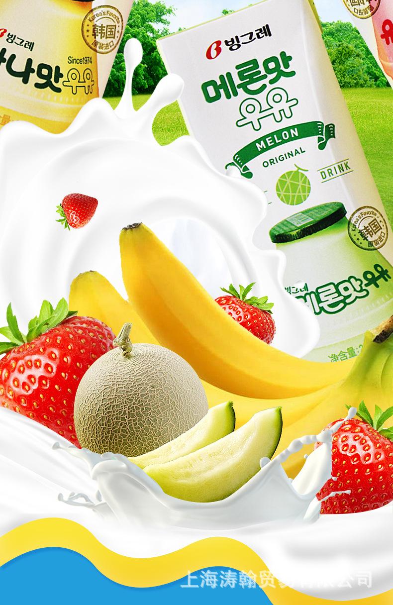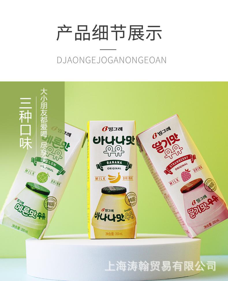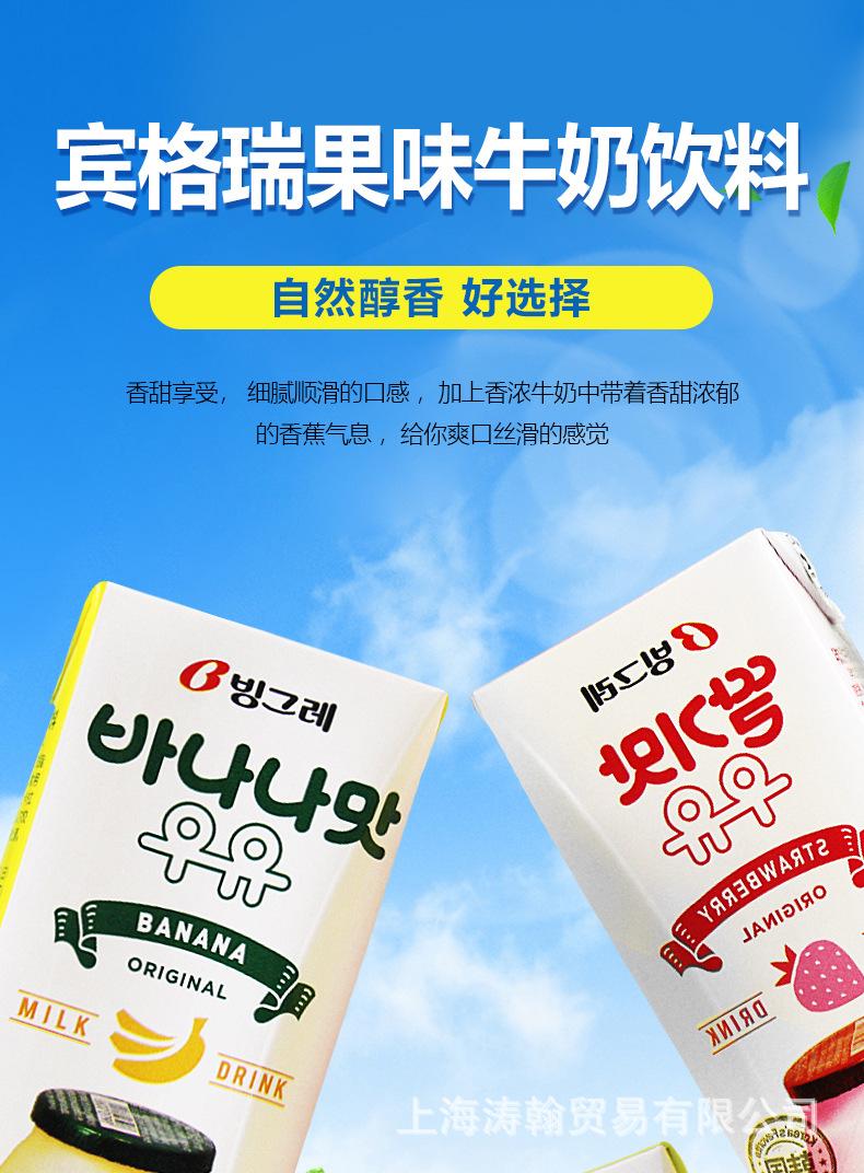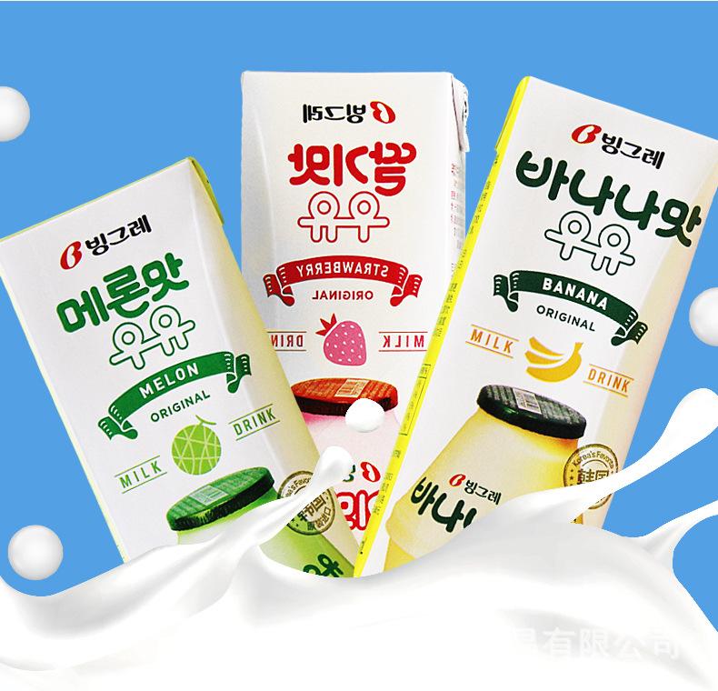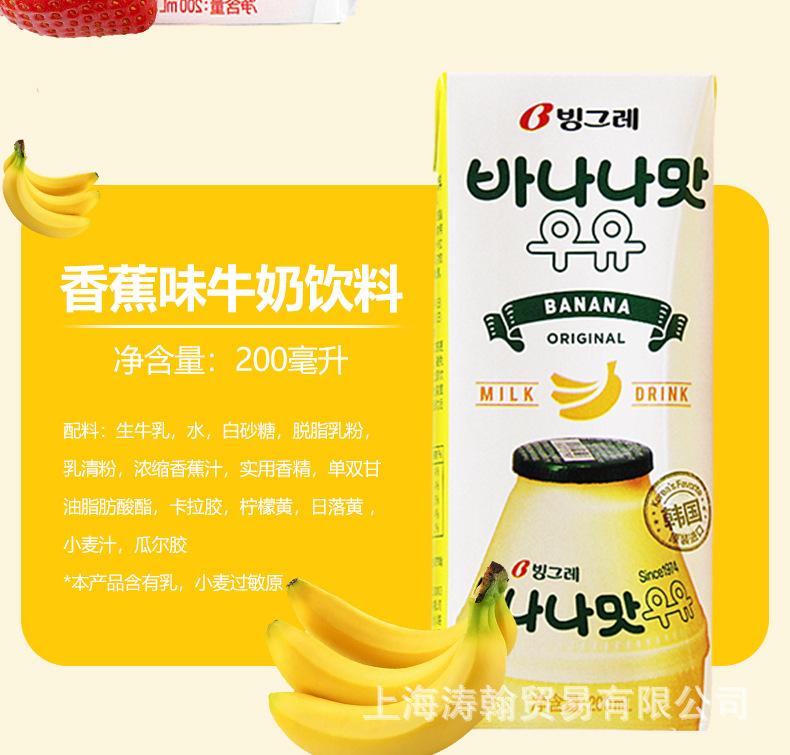 Leche de plátano Bingari importada de Corea del Sur, 200 ml * 24 cajas, venta al por mayor, sabor a fresa, melón, taro y castaña.