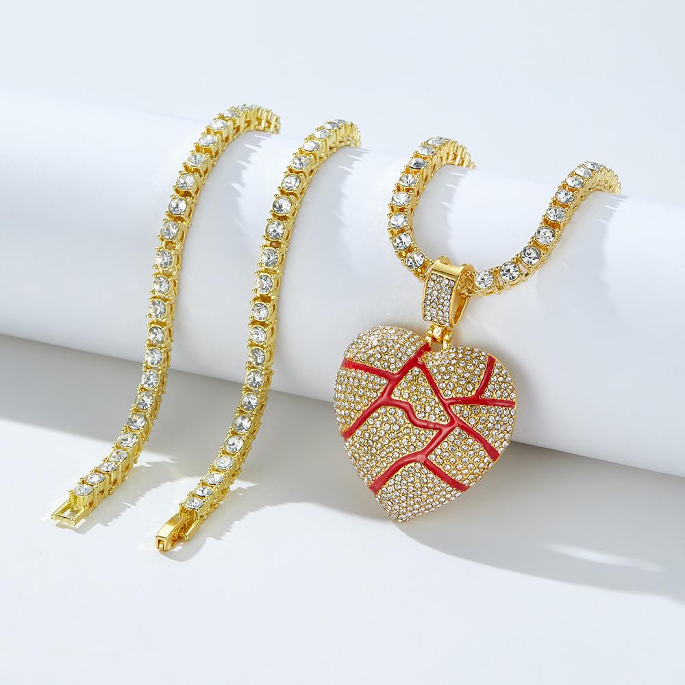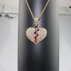 Colgante de amor personalizado con forma de corazón roto, joyería para San Valentín, estilo europeo y americano, cadena de tenis, collar de hip-hop para hombres y mujeres.