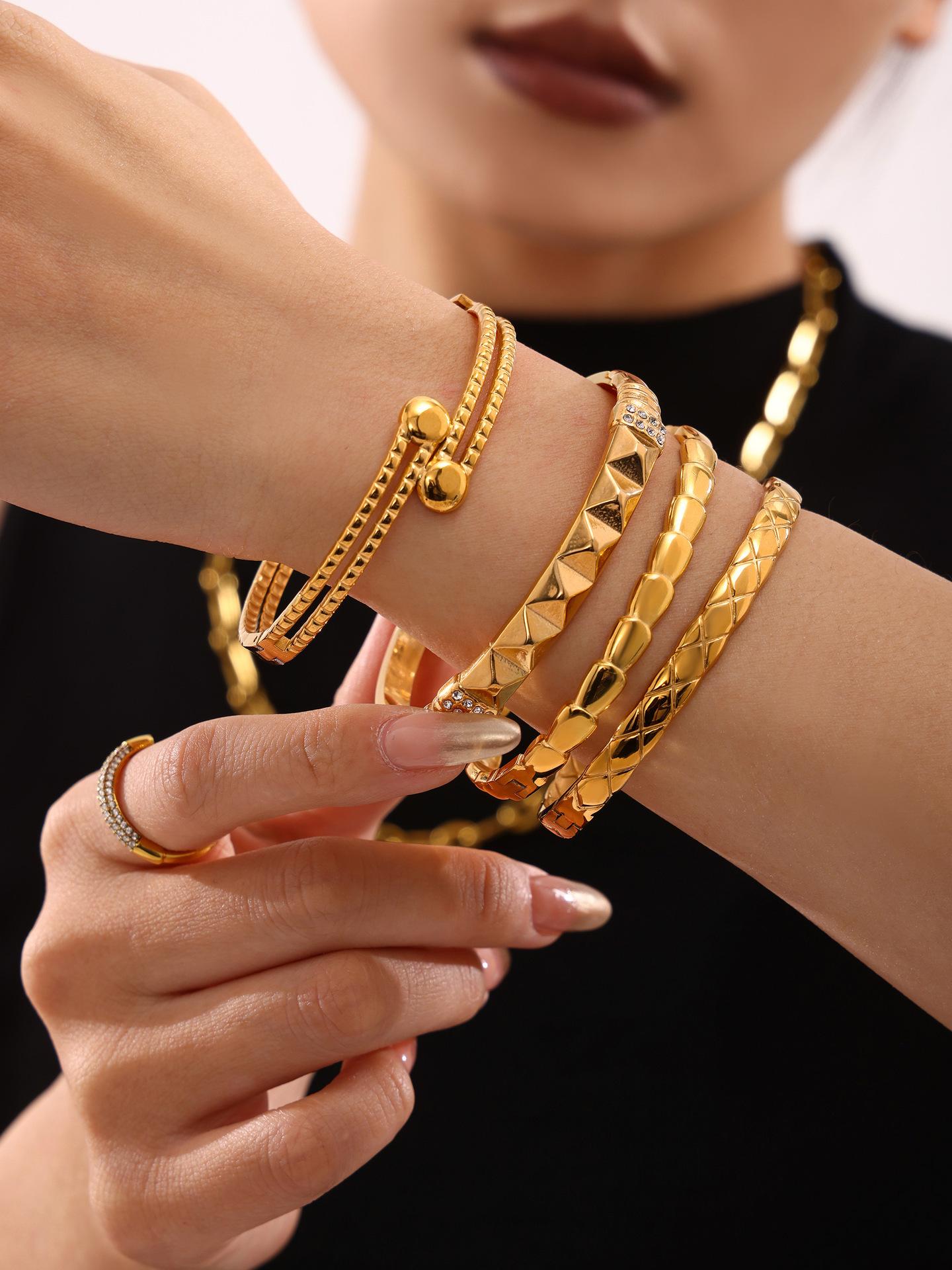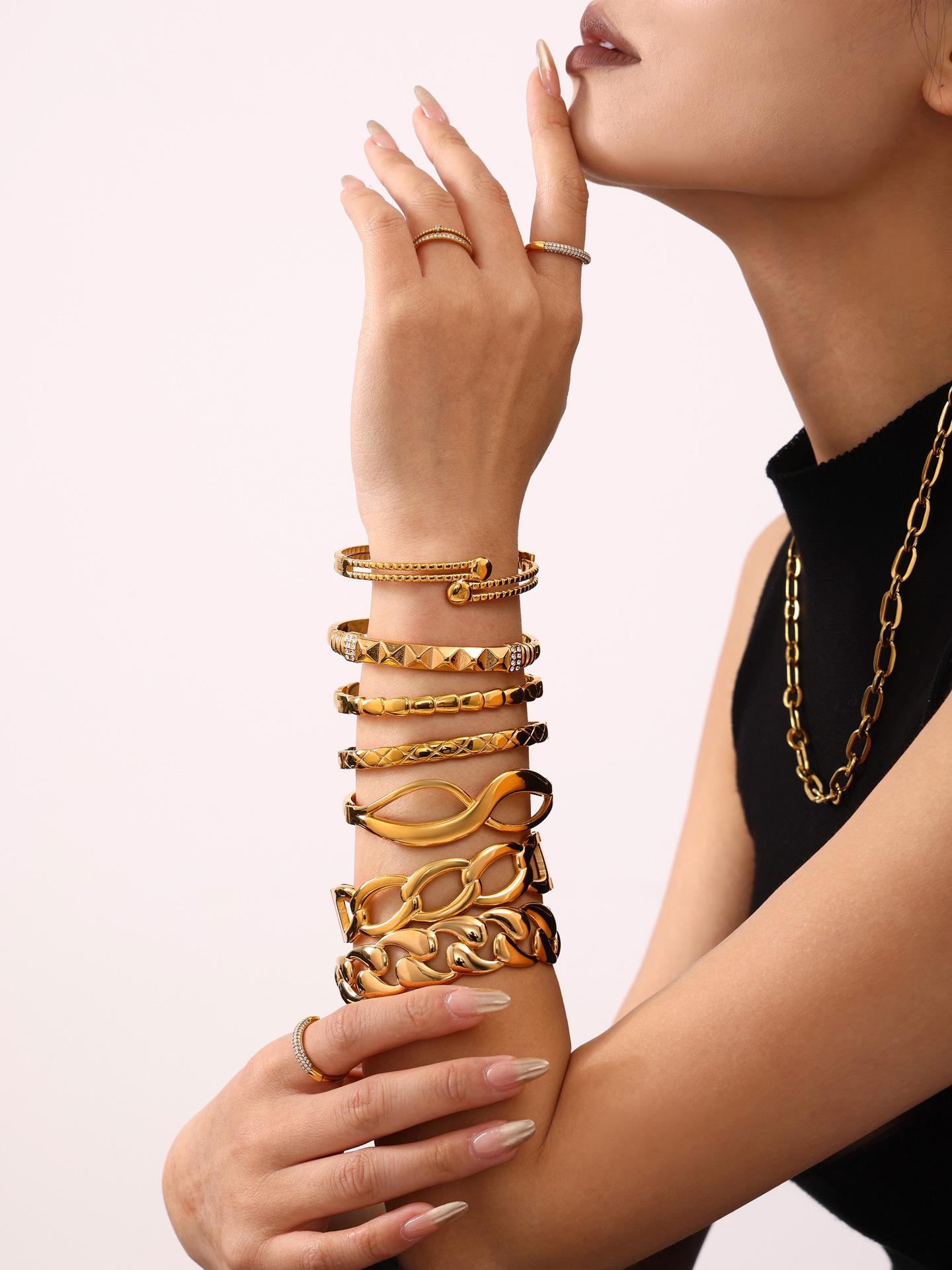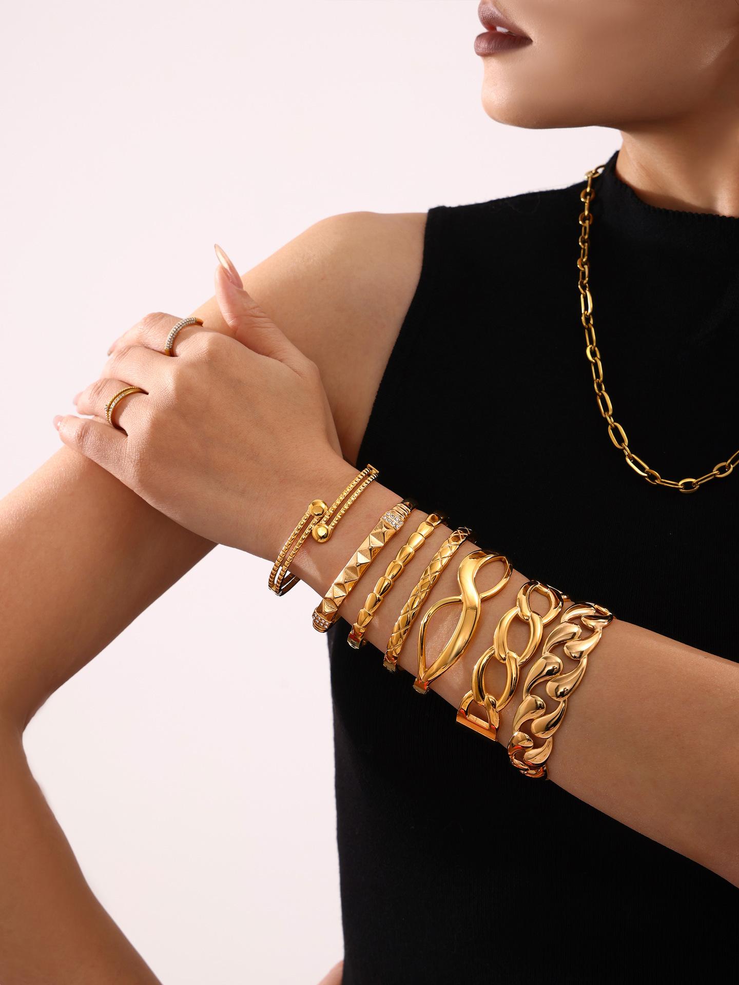 Pulsera de acero de titanio con azúcar, lujo ligero, chapado PVD en oro de 18 quilates, tendencia europea y americana, combinación de pulsera y brazalete
