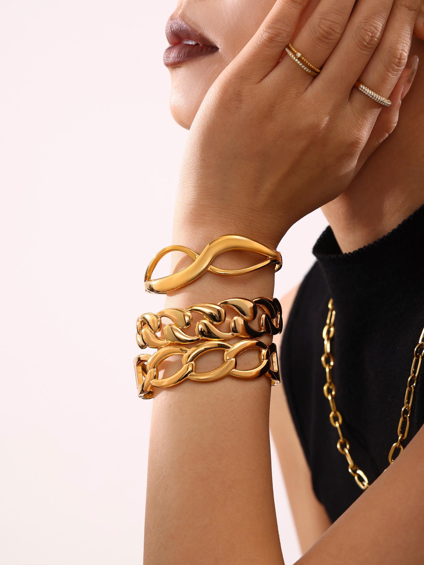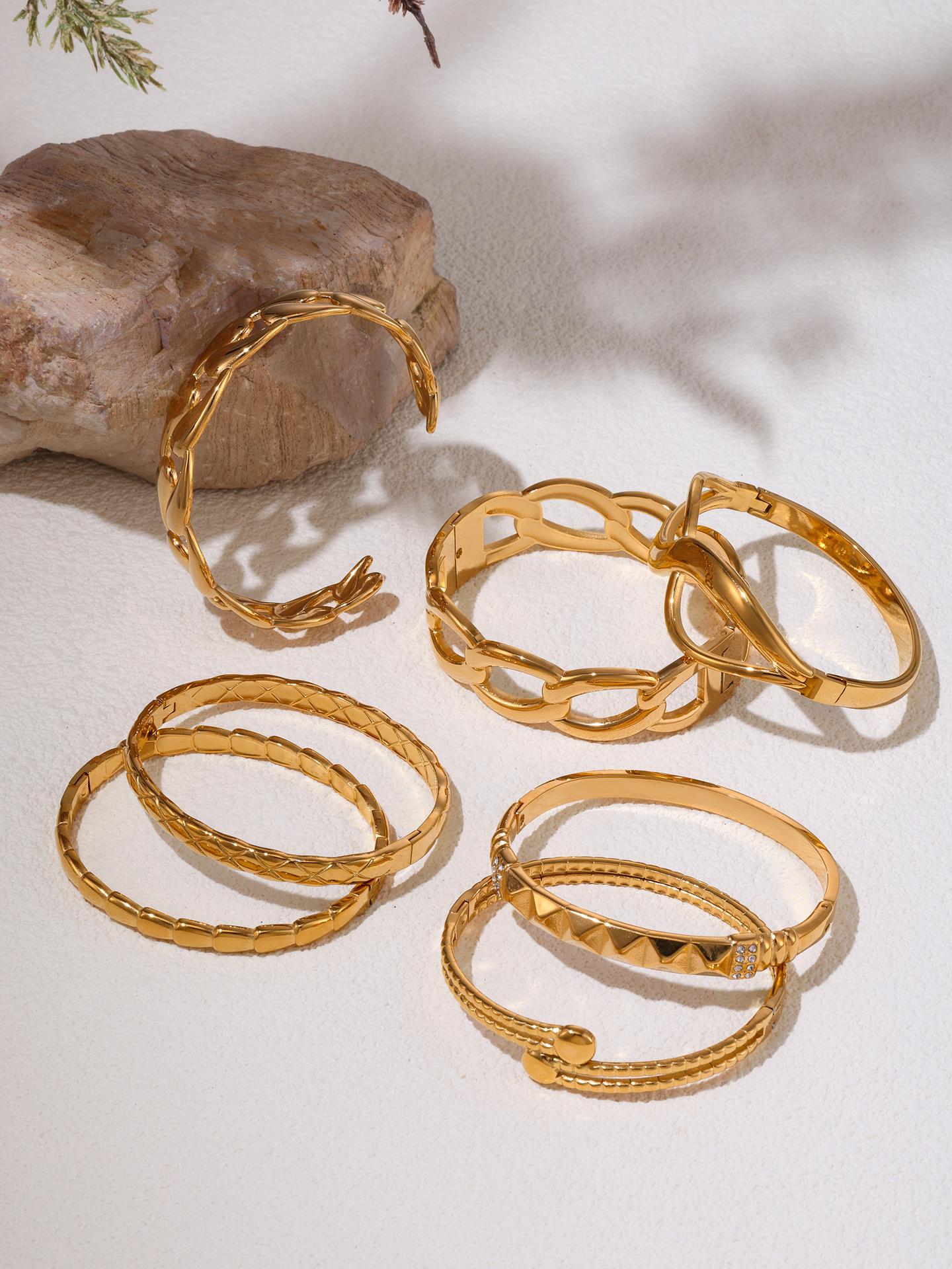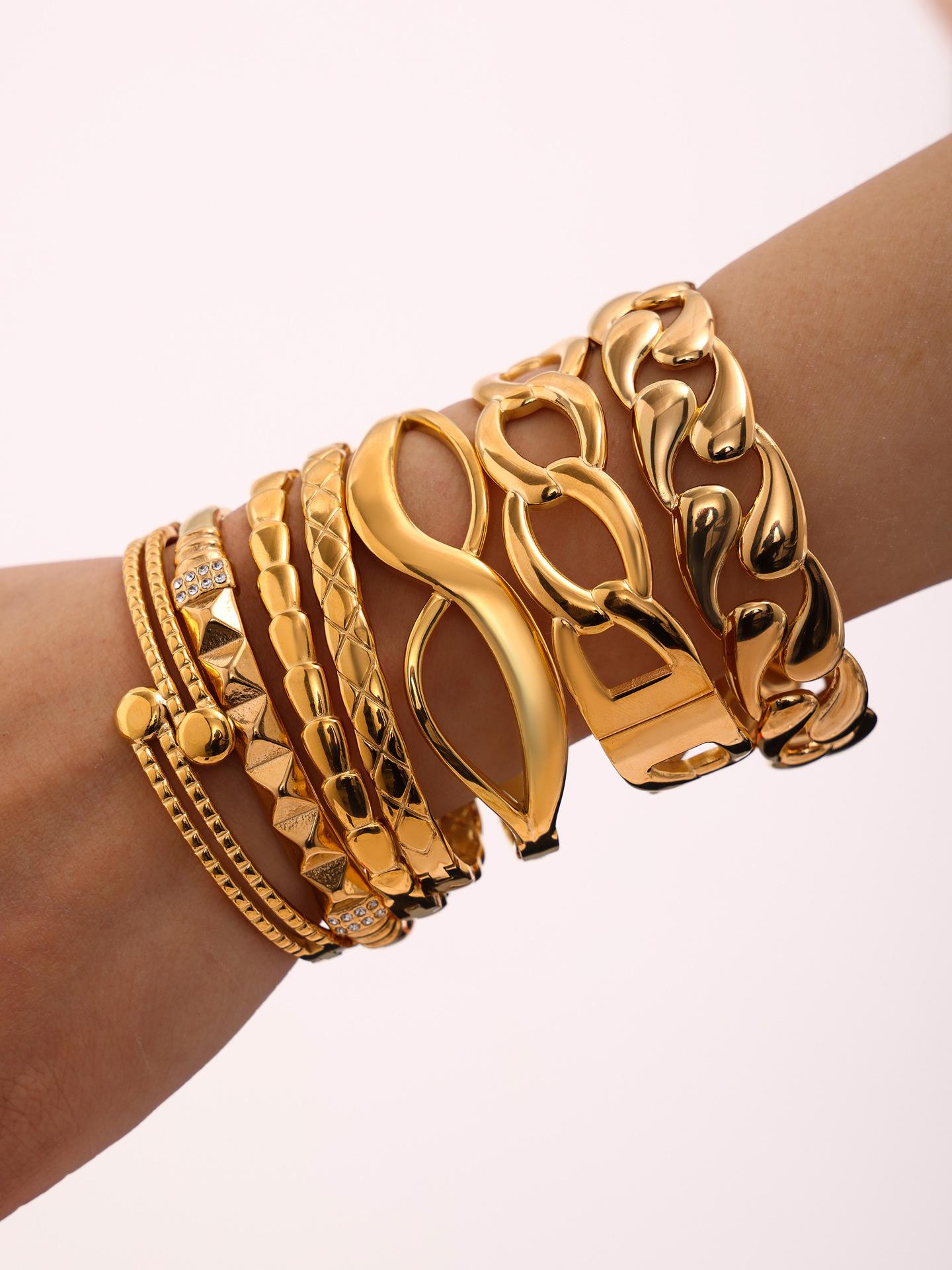 Pulsera de acero de titanio con azúcar, lujo ligero, chapado PVD en oro de 18 quilates, tendencia europea y americana, combinación de pulsera y brazalete