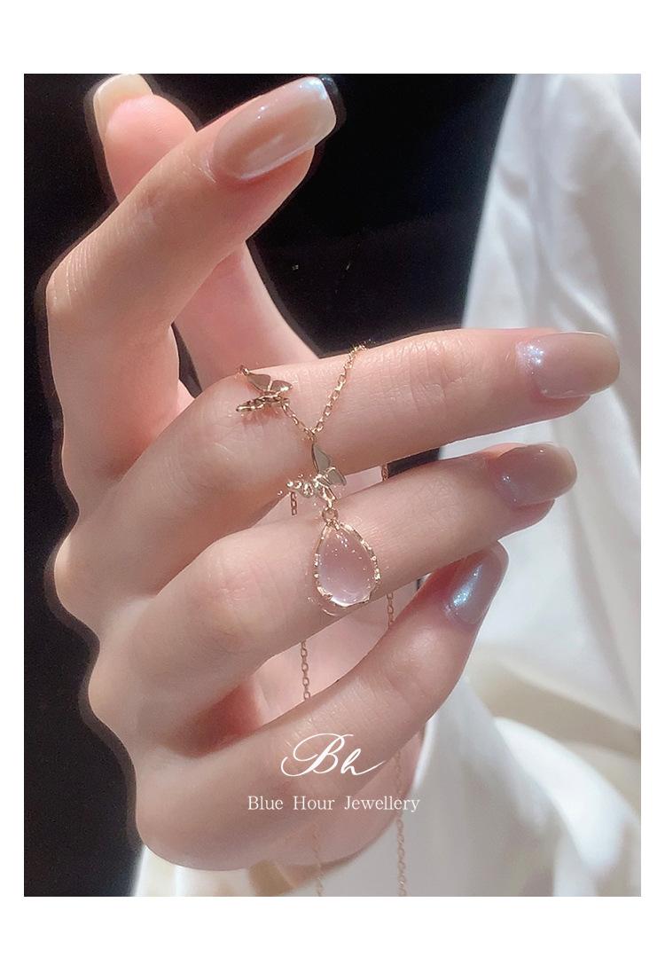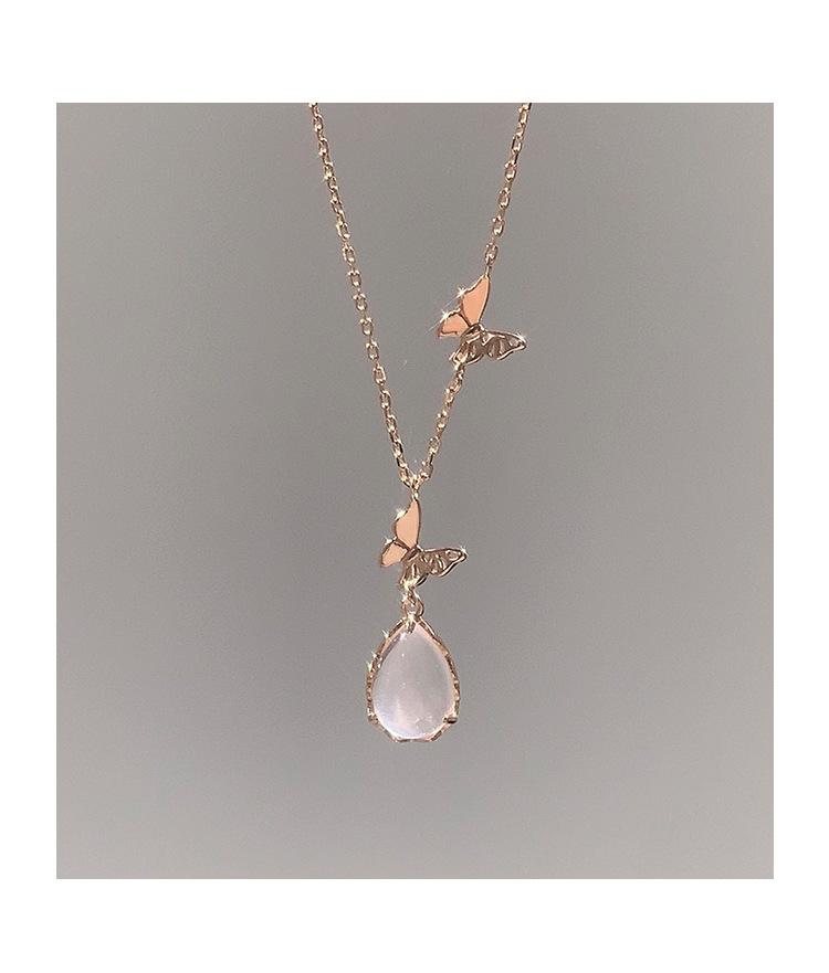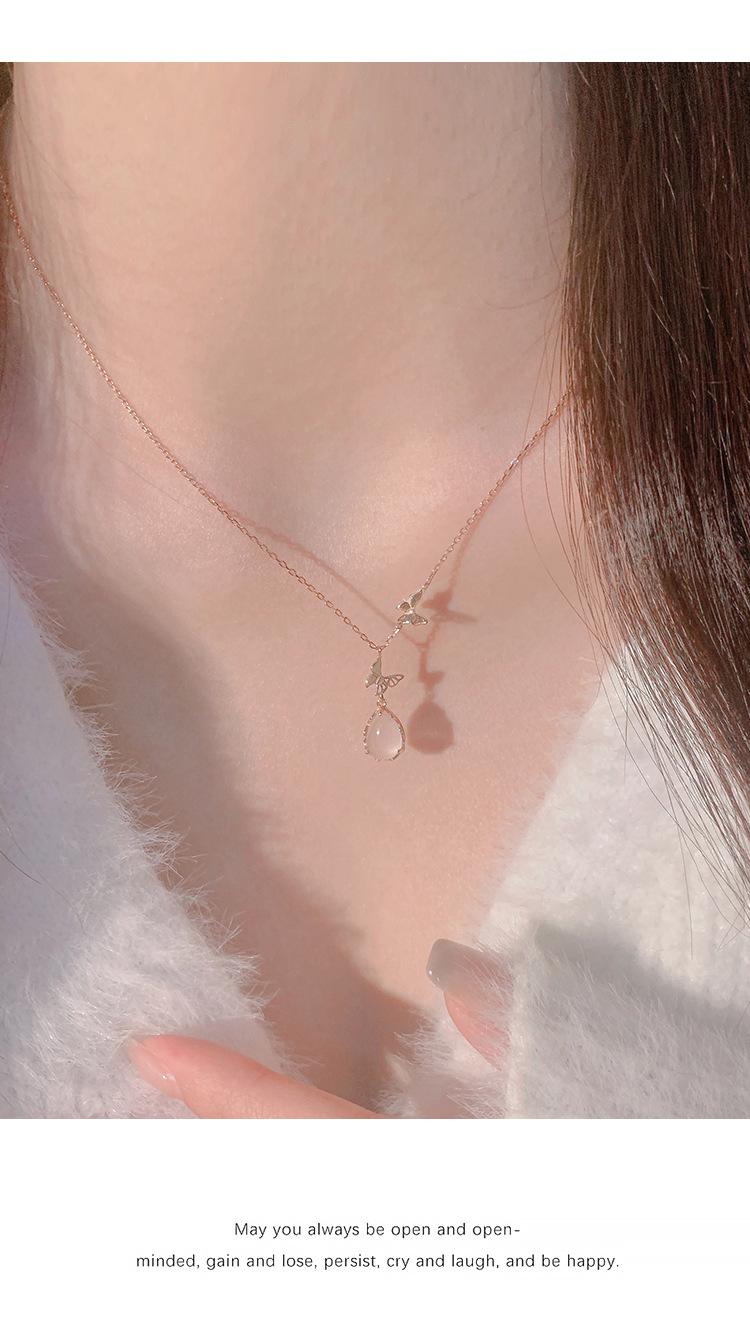 Compra Nuevo collar de mariposa de calcedonia para mujer, ligero, de lujo, sencillo, elegante, con colgante de gota de agua, diseño de nicho, combina con todo, cadena de clavícula moderna. al por mayor en Joom.pro