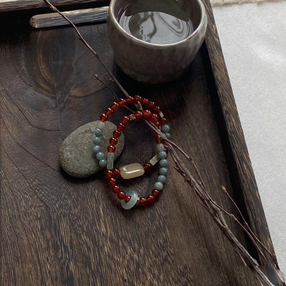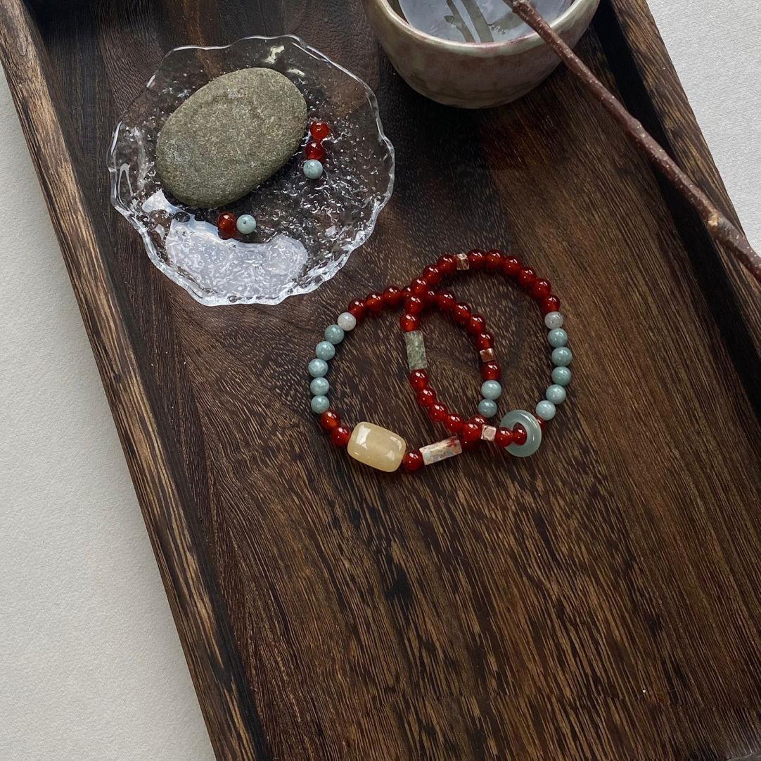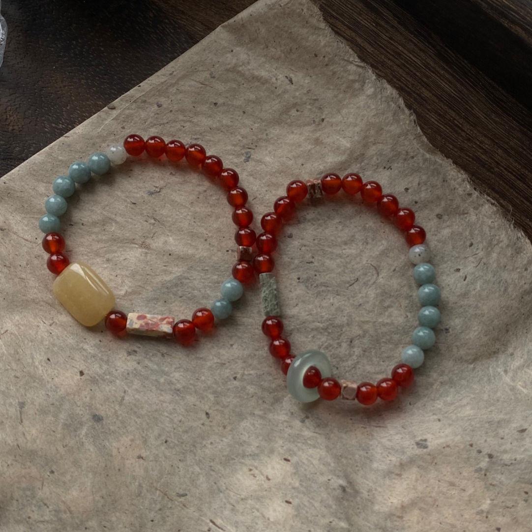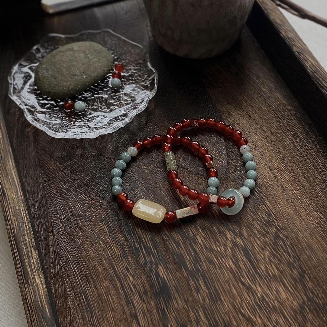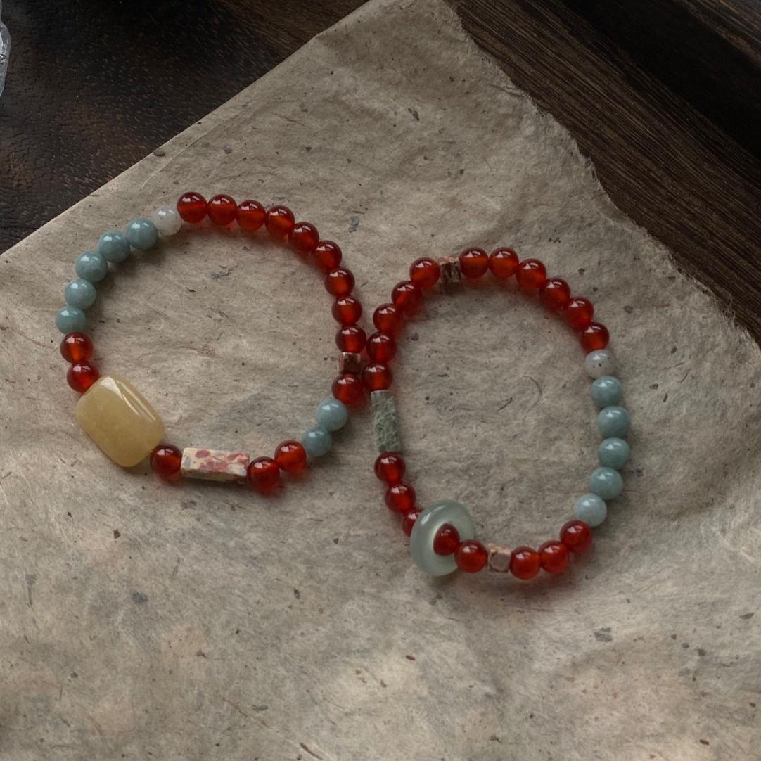 Pulsera minimalista de piedra Shoushan de estilo chino, diseño de nicho vintage, regalo apilado, pulsera de cuentas, accesorios.
