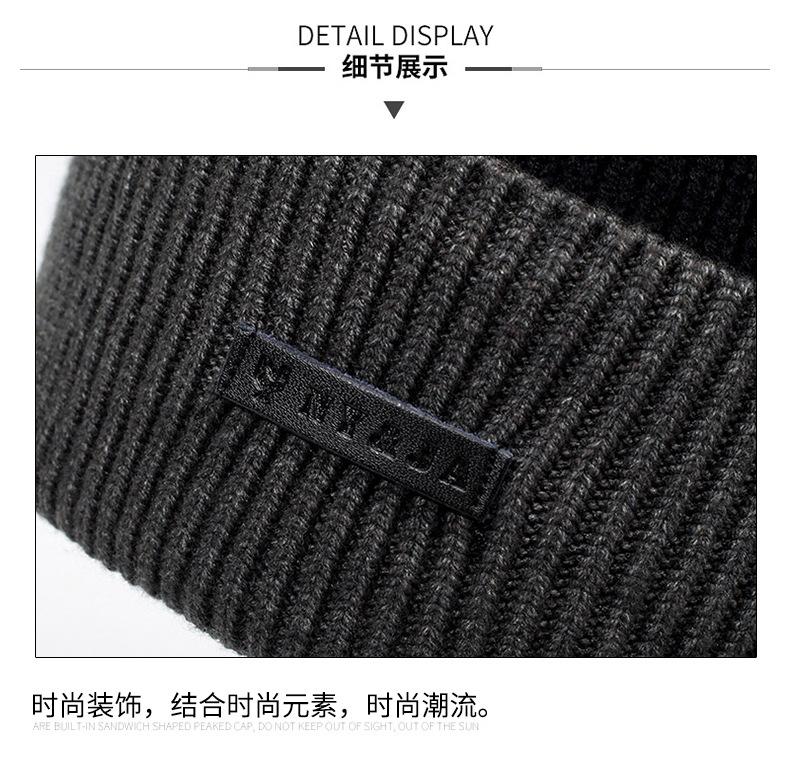 Gorro de hombre para otoño e invierno, para exteriores, resistente al frío, con forro polar, cálido, de algodón, para ciclismo de mujer, grueso y cálido, de lana de punto.
