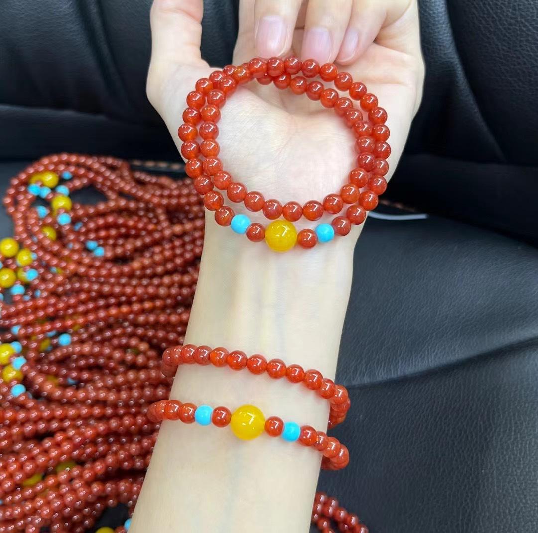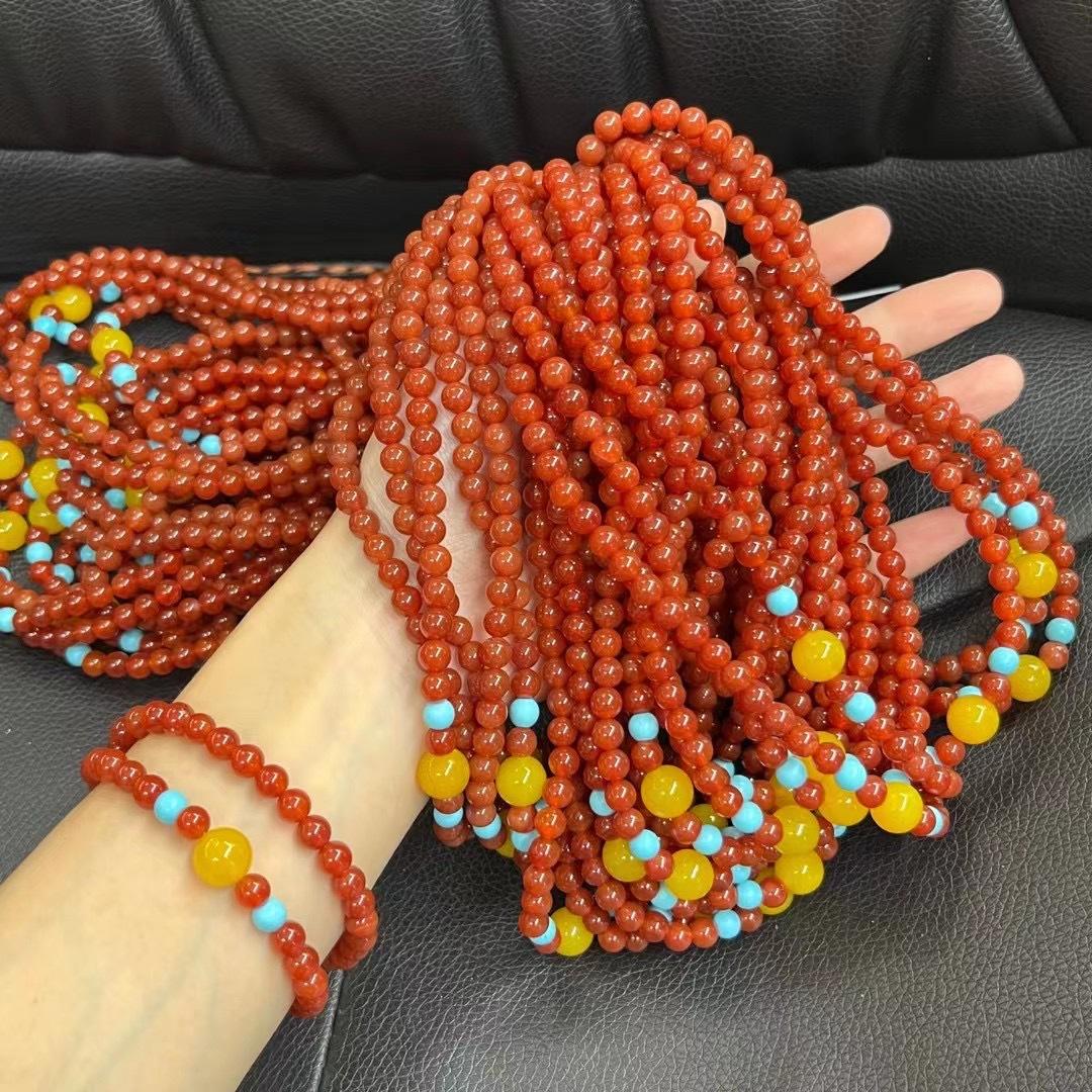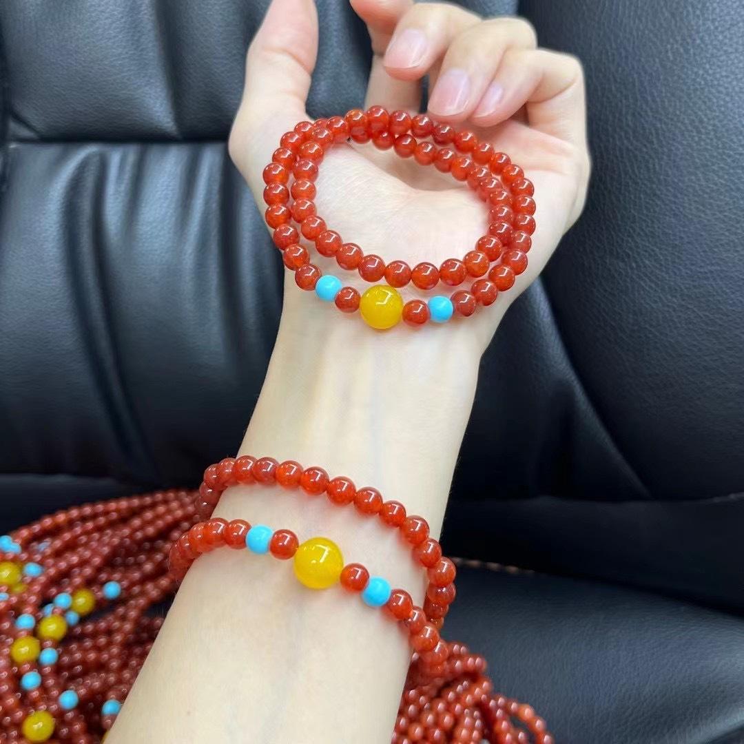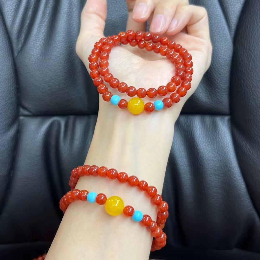 Pulsera de Ágata Roja Natural con Cuentas de Ágata Amarilla Pulsera Multicolor para Mujer Moda de Día Primavera Verano Regalo de Cumpleaños