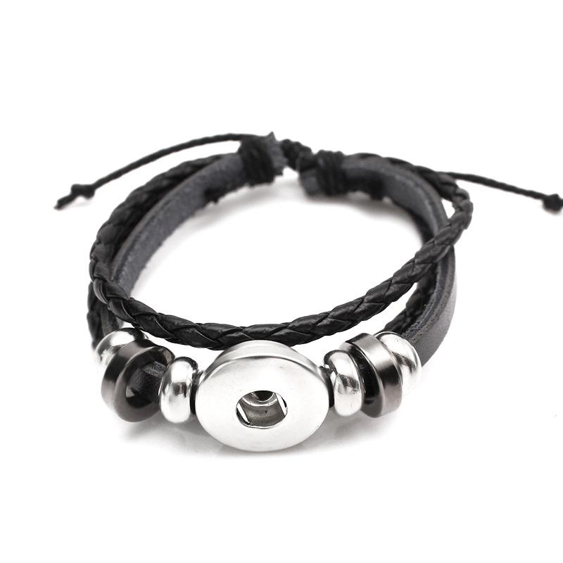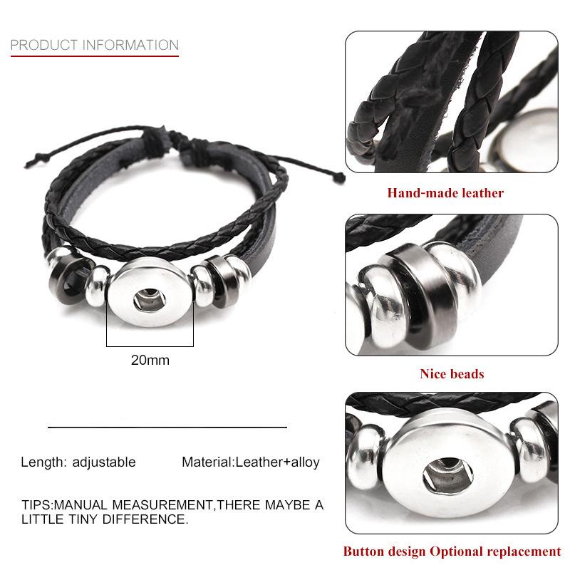 Pulseras de Cuero con Botón de Venta Caliente Europeo y Americano DIY Pulseras para Parejas Popular en Amazon Joyería de Cuero Personalizada para Hombre y Mujer al por Mayor