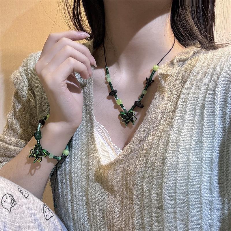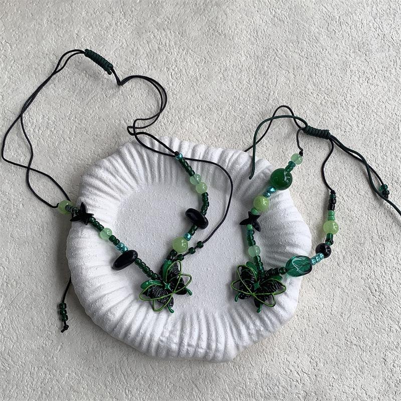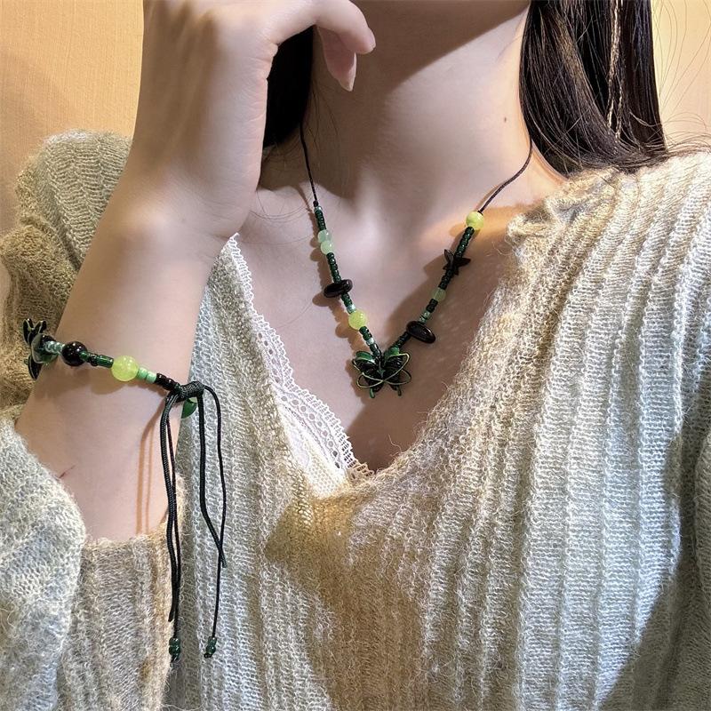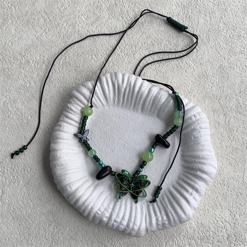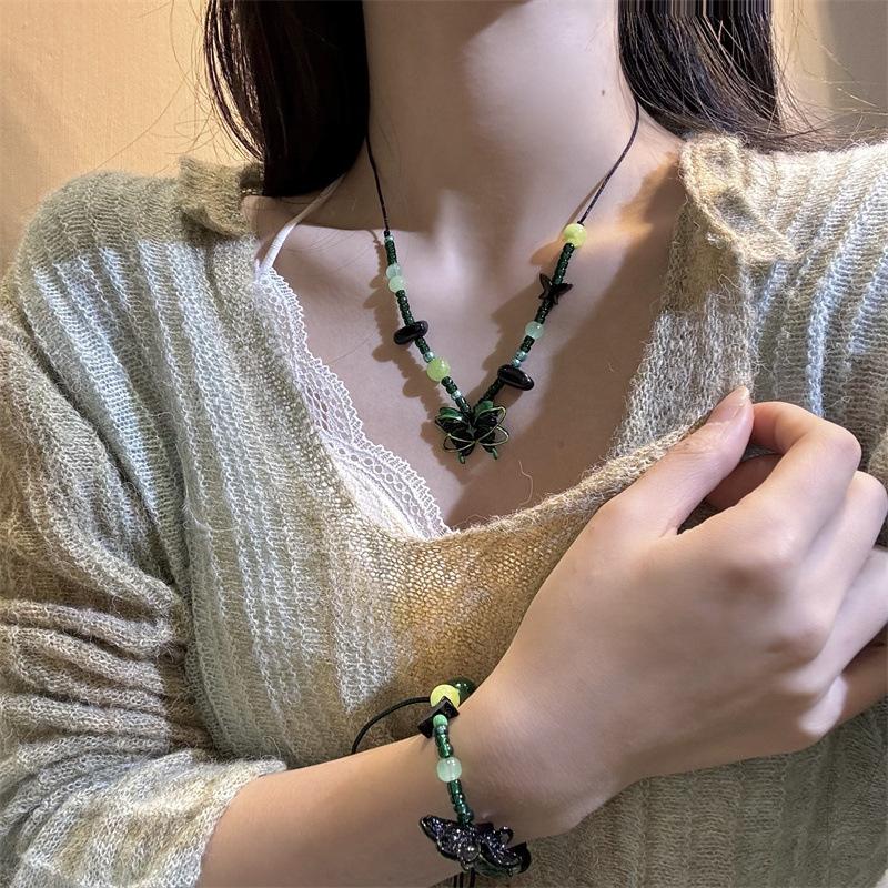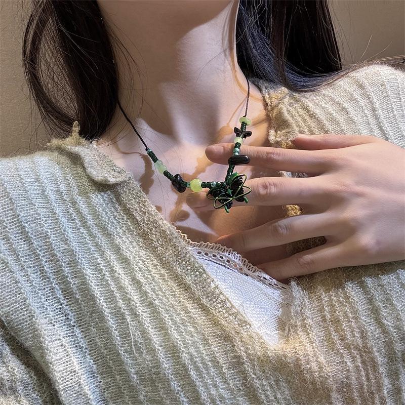 Collar bohemio con mariposa verde, accesorios para mujer, diseño de nicho, cadena de clavícula, joyería