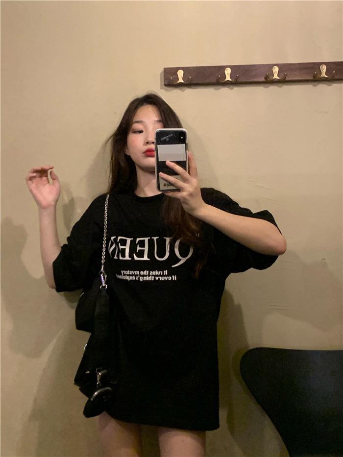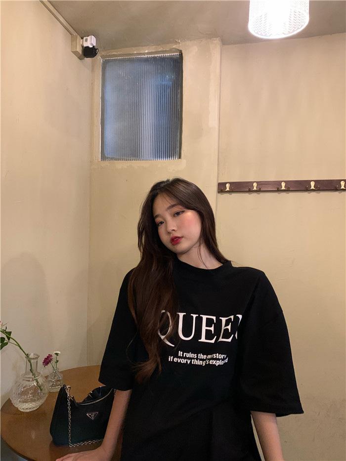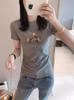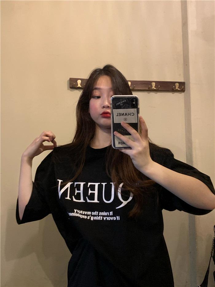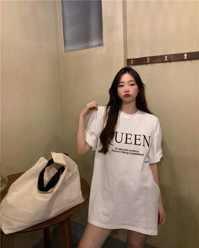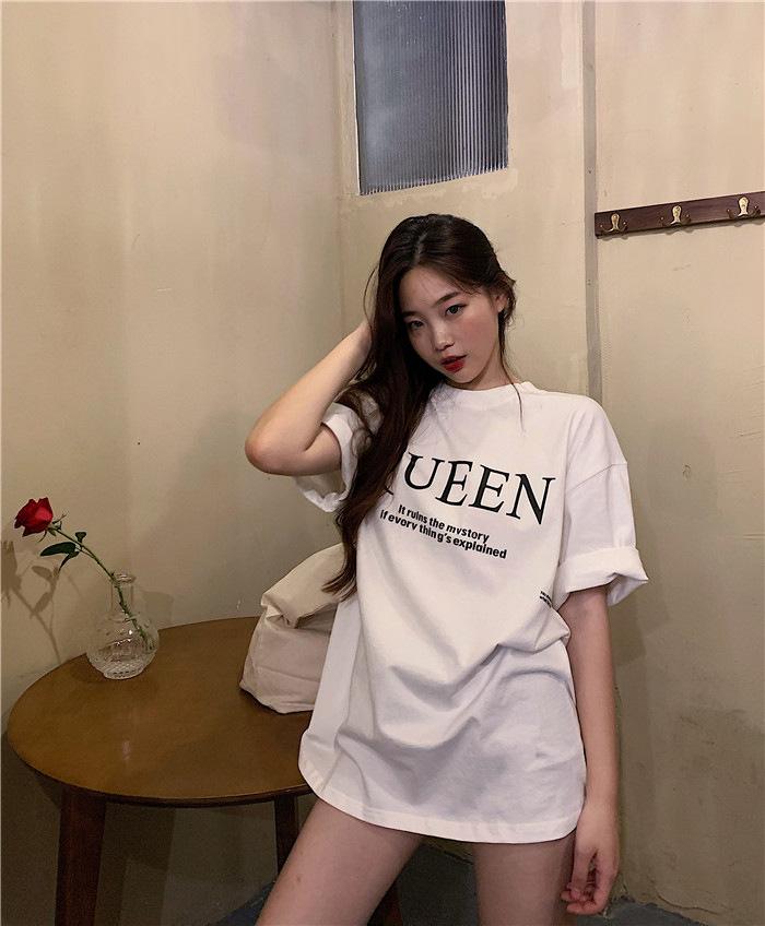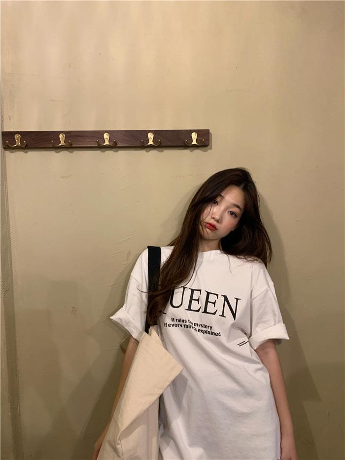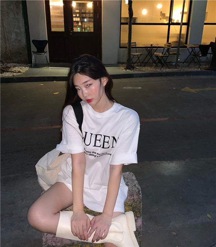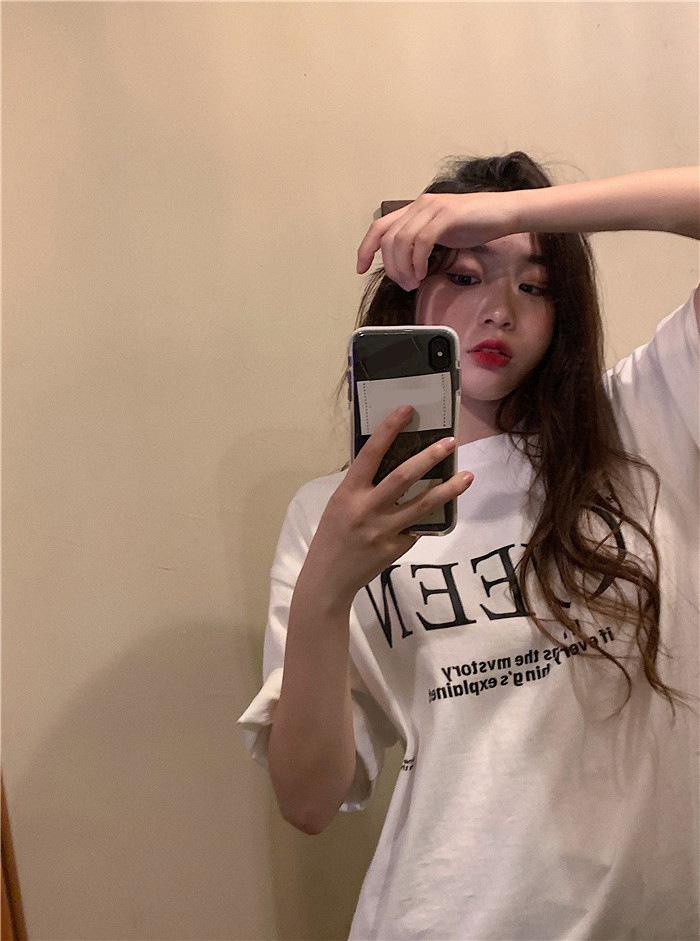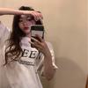 2024 Nuevo Estilo Regular Hombro Estampado de Letras Manga Corta Camiseta para Mujer, Moda de Verano Versátil Adelgazante Top Blanco Camiseta Base