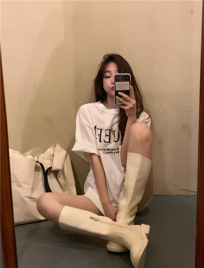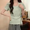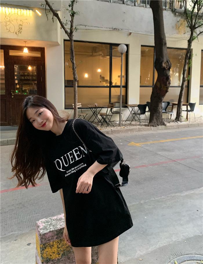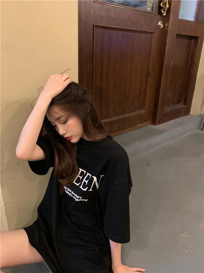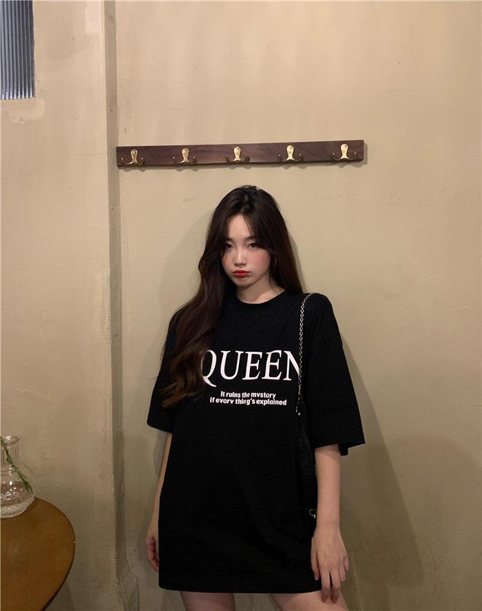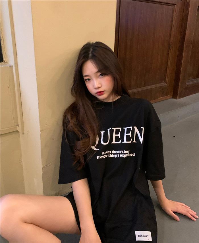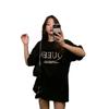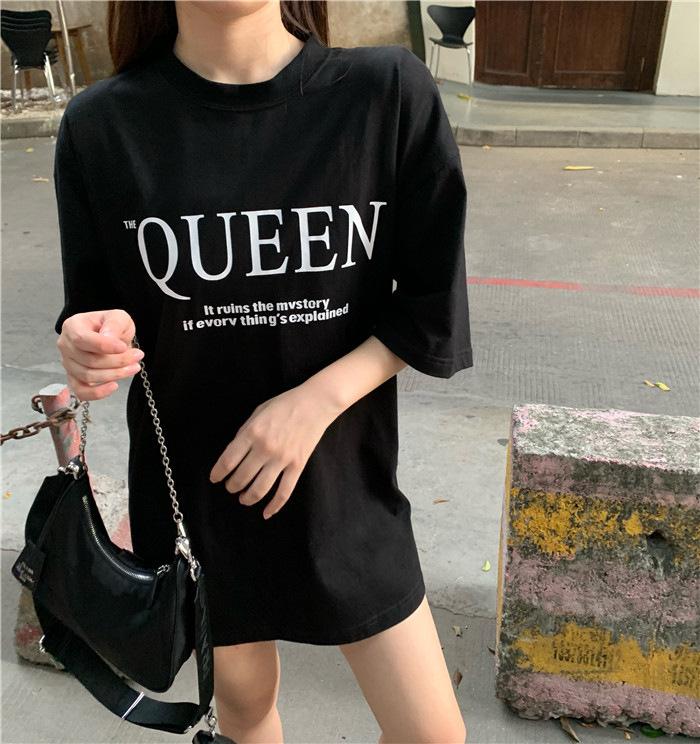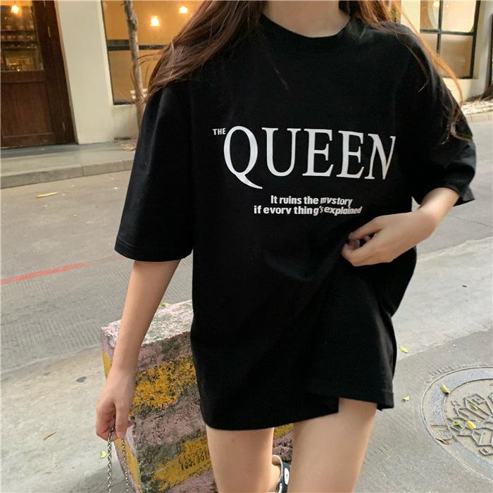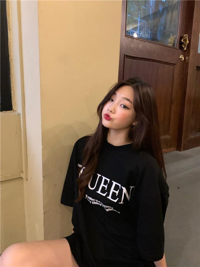 2024 Nuevo Estilo Regular Hombro Estampado de Letras Manga Corta Camiseta para Mujer, Moda de Verano Versátil Adelgazante Top Blanco Camiseta Base